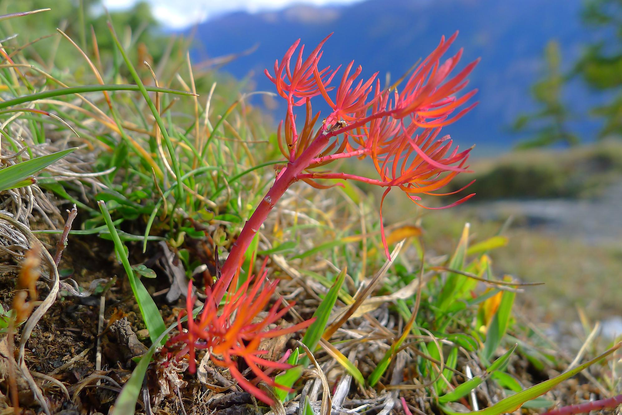 En lisant la dernière sortie de Stéphane (Alpavista) du côté de Crans-Montana, je me suis dit que ce secteur de la Varneralp, terra incognita pour moi, mériterait bien une visite. La météo du jour est annoncée en partie grise, mais soyons courageux. Dans le train, le lever du soleil, bien rouge, était superbe, mais c’est cela annonce le mauvais temps ! Profitant de mon AG CFF, j’ai pris le train jusqu’à Sierre, puis le funiculaire (gratuit avec l’AG sinon 12.20 CHF la simple course) et enfin le bus (gratuit pour tous, cela mérite d’être souligné) pour Aminona. Lors du trajet en bus, le chauffeur s’arrête hors d’un arrêt et en descendant annonce qu’il va s’acheter le déjeuner. Quelques minutes après, il remonte en annonçant fièrement son achat ! C’est comme cela qu’on aime le Valais, ne changez surtout pas !