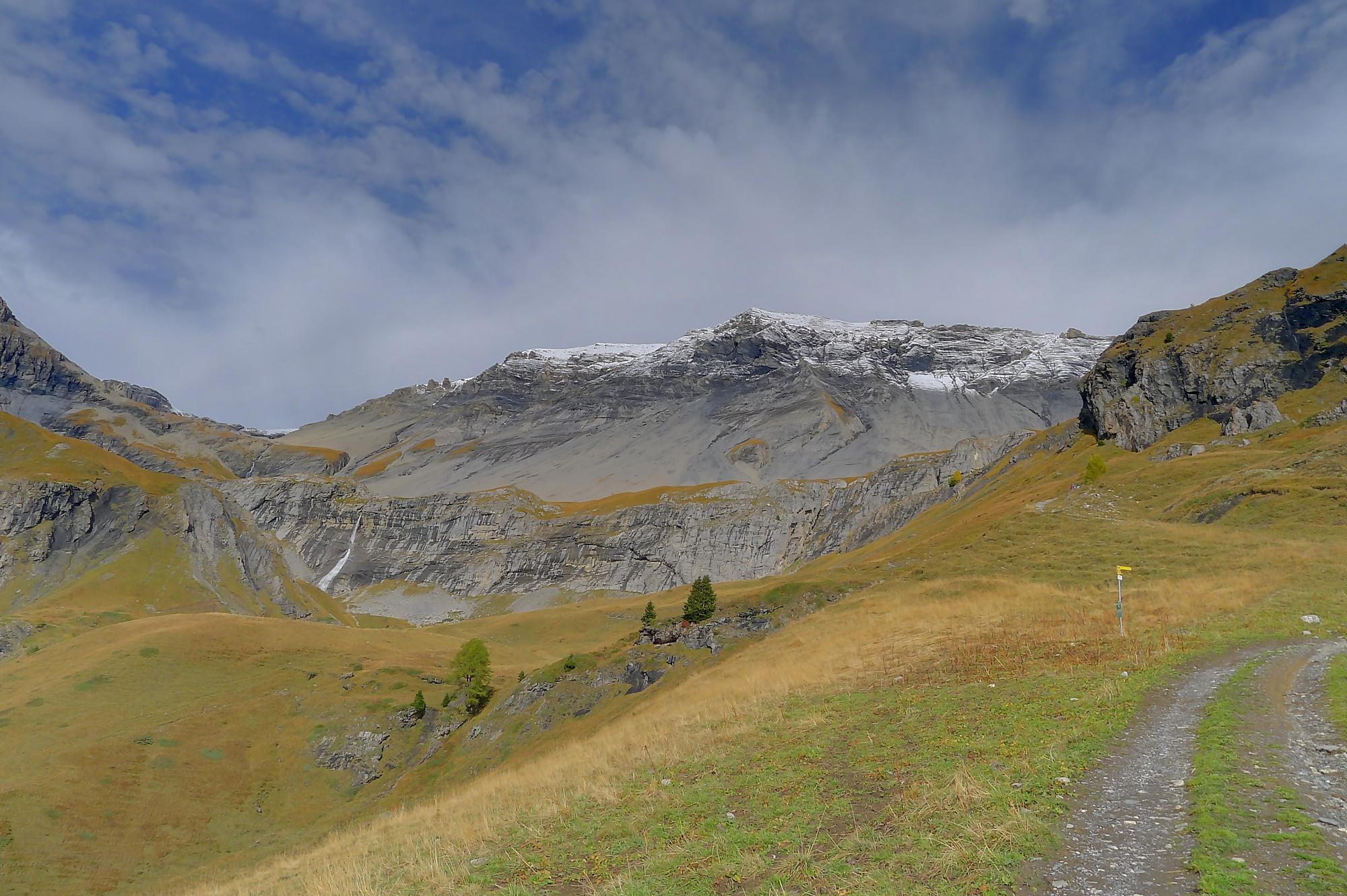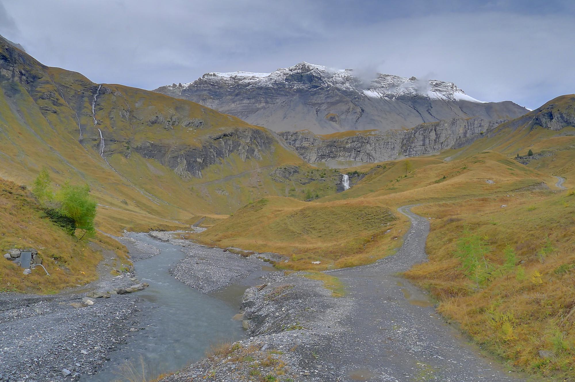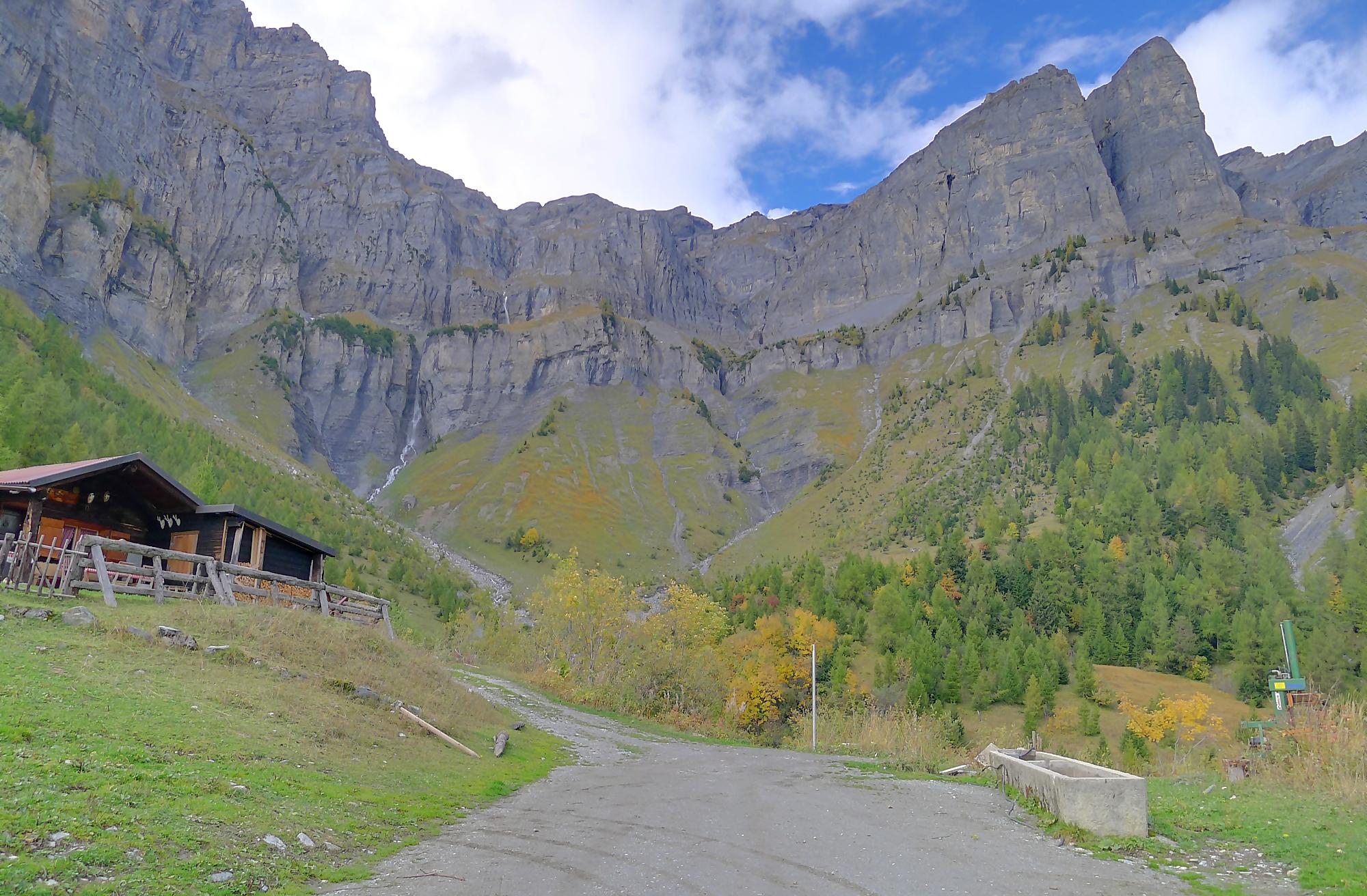 Pour rejoindre Varneralp, il existe deux chemins, le supérieur (via Montagne du Plan) que j’ai pris et l’inférieur … que je conseille ! Ces deux chemins se rejoignent à la ruine de Roti Hittu. Je suis donc parti pour la Montagne du Plan, par une route d’alpage agréable avec une belle vue sur Les Faverges et la chute d’eau de La Tièche à l’Arête de Nusey.
