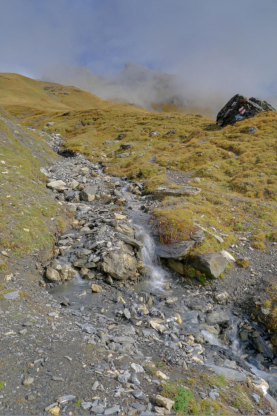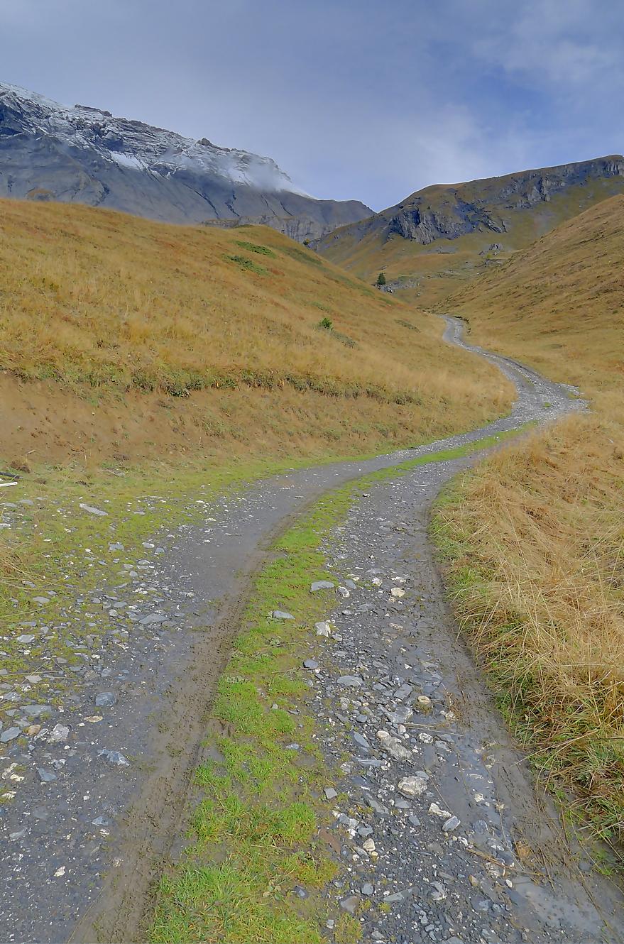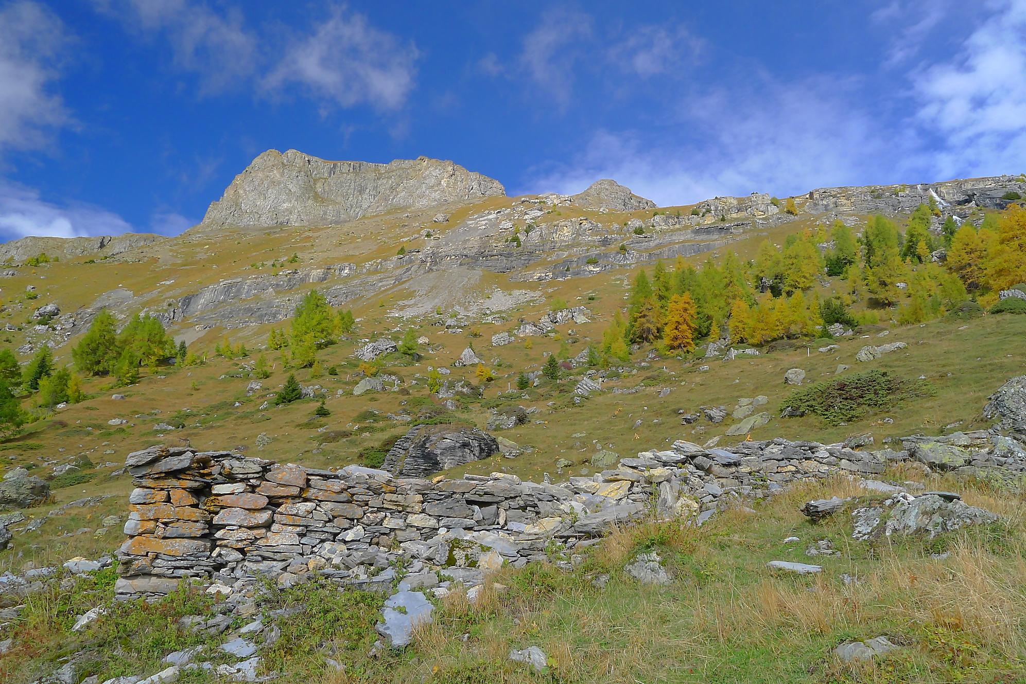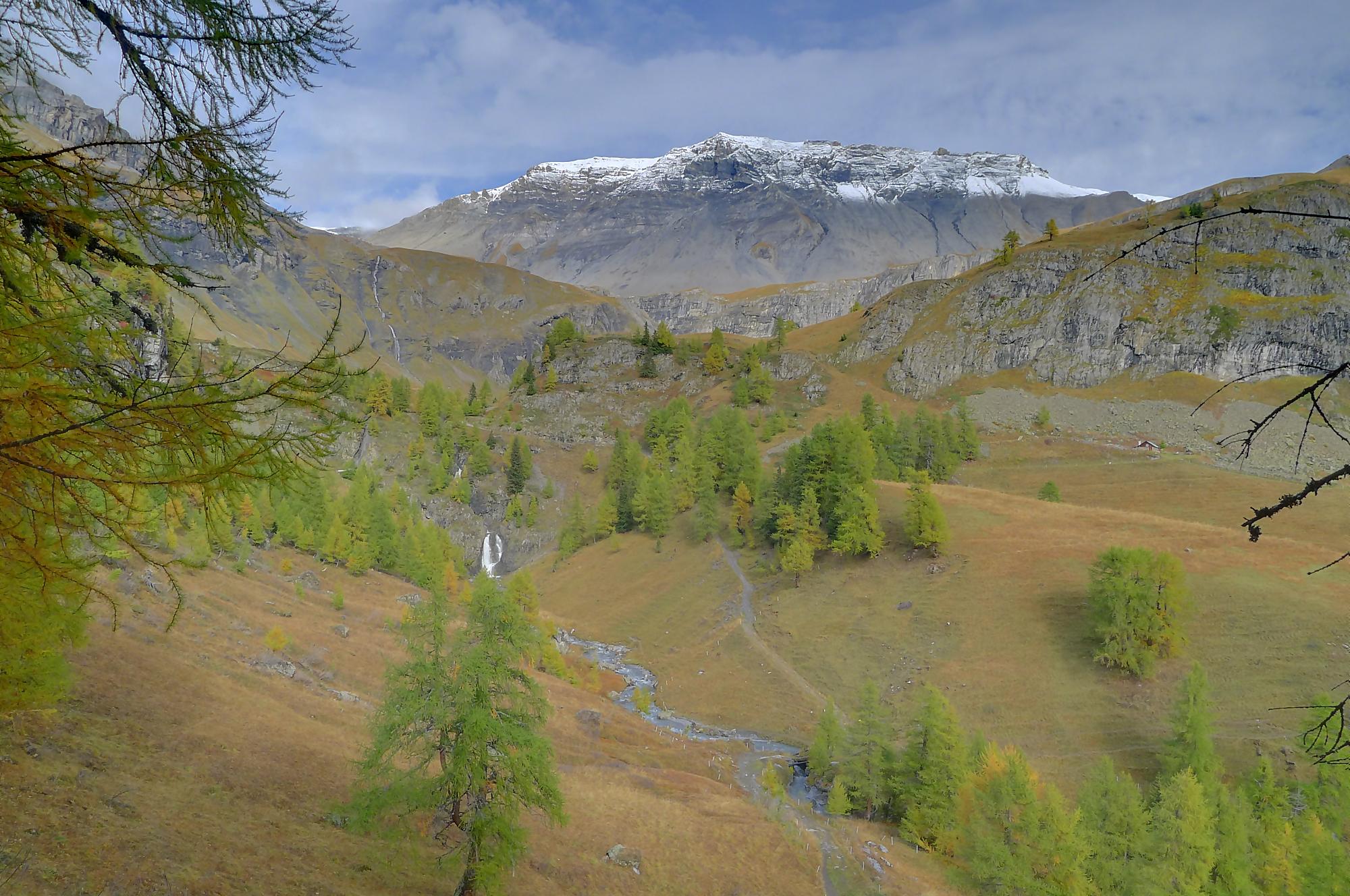 Pour rejoindre Varneralp, il existe deux chemins, le supérieur (via Montagne du Plan) que j’ai pris et l’inférieur … que je conseille ! Ces deux chemins se rejoignent à la ruine de Roti Hittu. Je suis donc parti pour la Montagne du Plan, par une route d’alpage agréable avec une belle vue sur Les Faverges et la chute d’eau de La Tièche à l’Arête de Nusey.