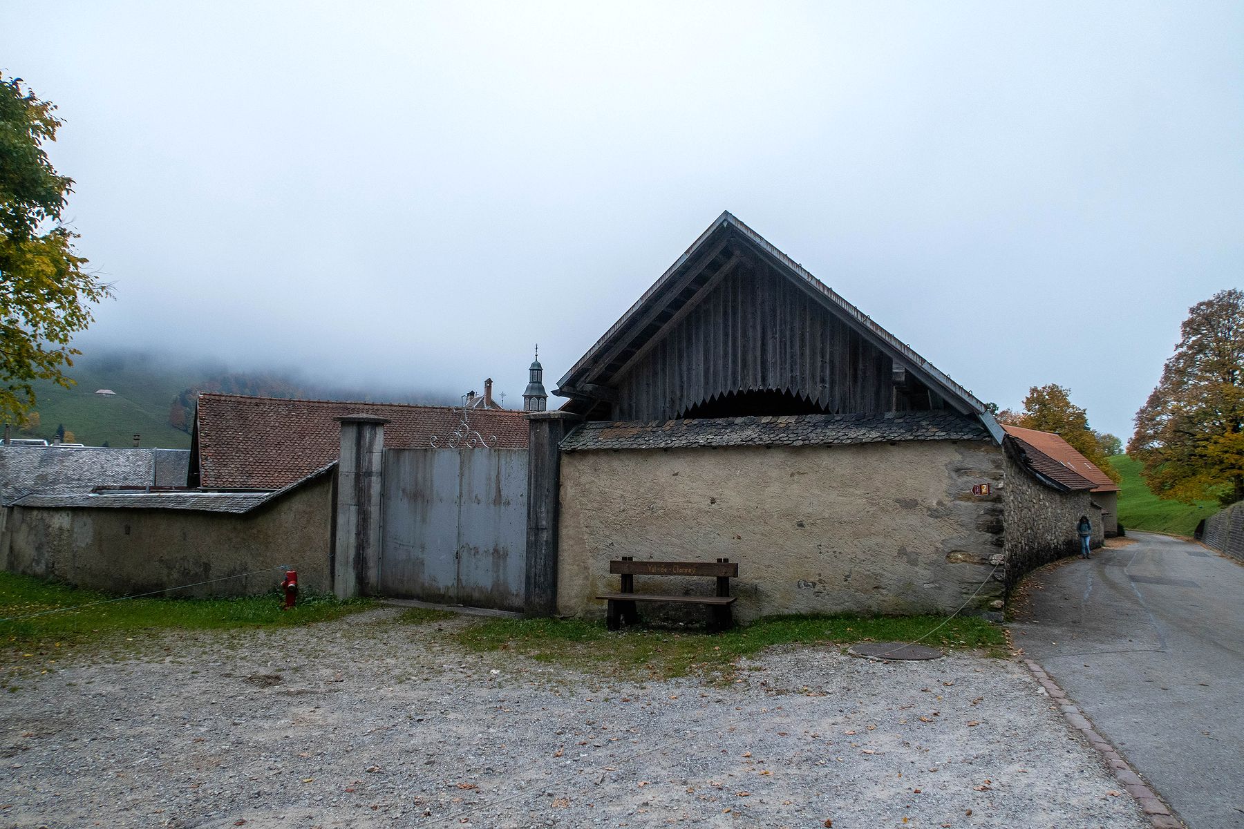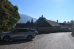 Nous nous garons sur le parking attenant à la chartreuse (monastère) de Valsainte. Parking de presque 10 places. Le stratus est présent et il fait +5°c. Valsainte ne se visite pas et un modeste panneau d’information, à l’entrée, donne un aperçu historique.