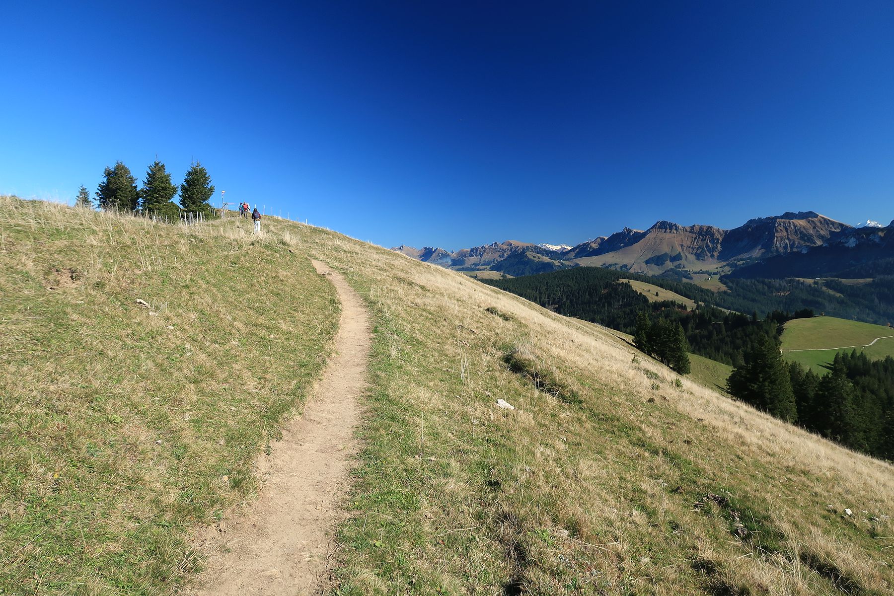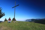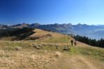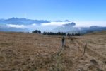 Nous prenons le temps, puis repartons en légère descente. Nous faisons un crochet du sommet du Pt1688, flanqué d’une croix. La vue est quasi similaire, mais cela fait un détour agréable.