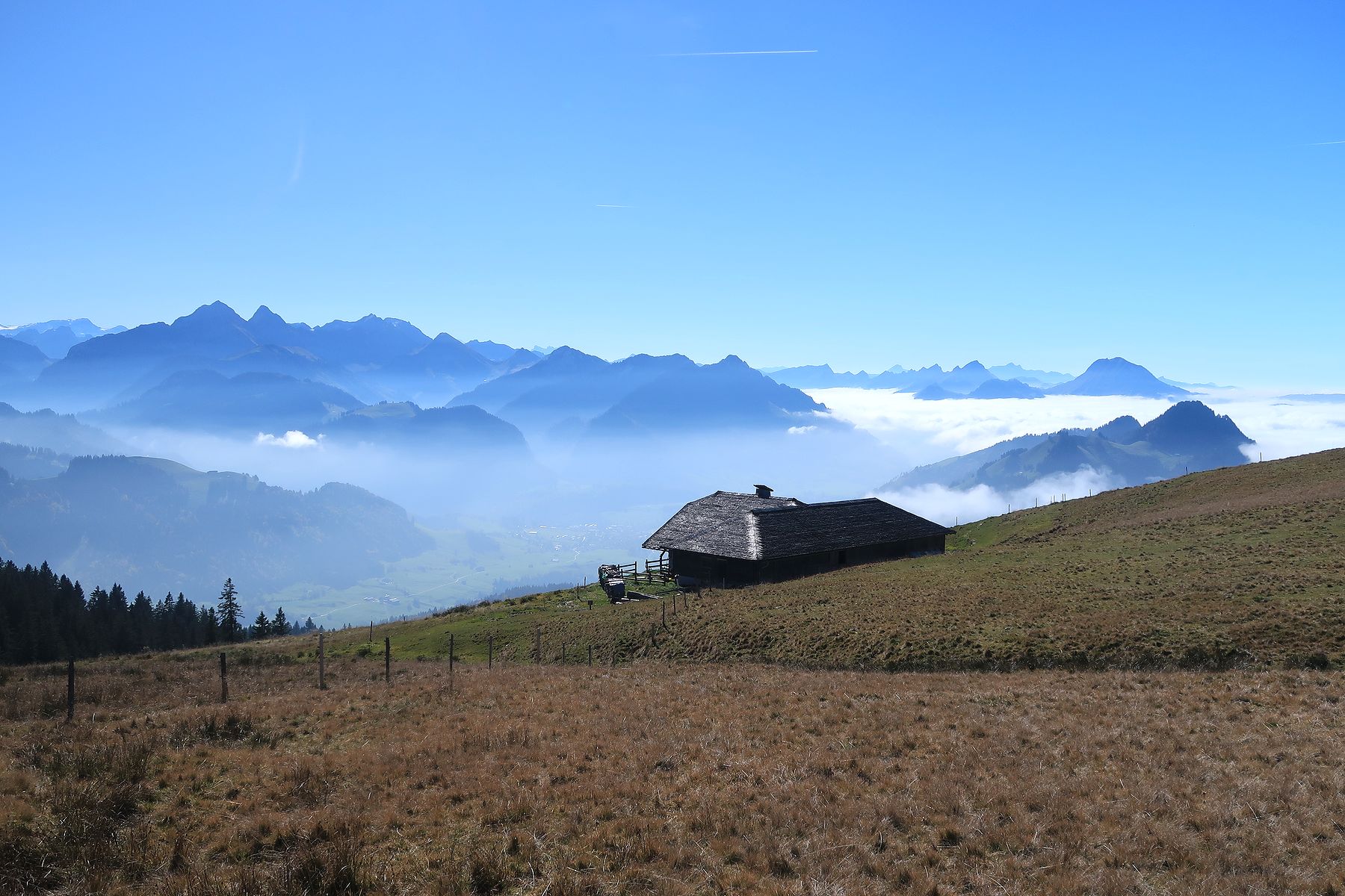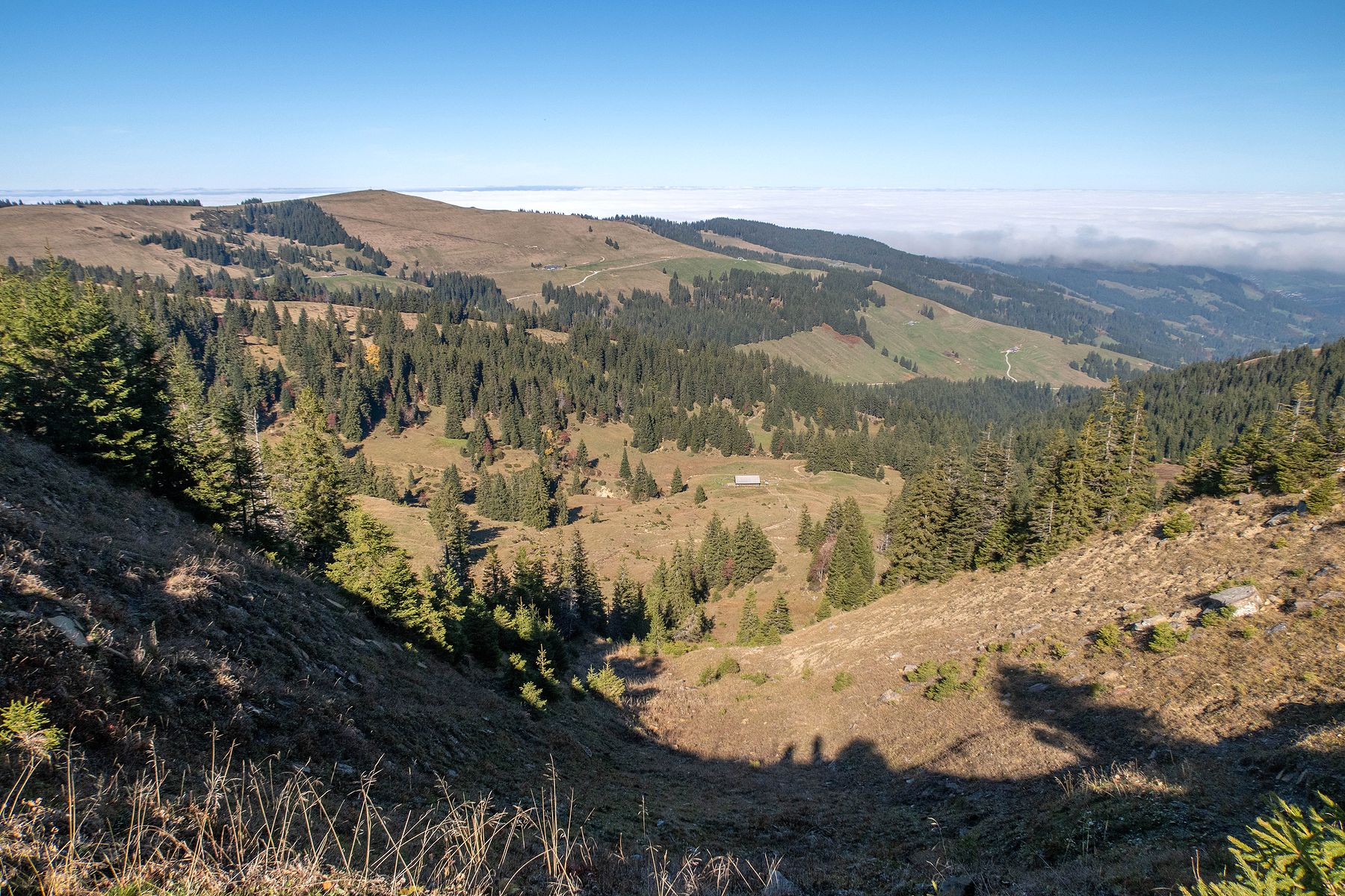 La météo annonce du soleil au-dessus du stratus, mais l’attitude de ce dernier reste incompréhensible. Je décide de revenir à un sommet déjà fréquenté, La Berra, dans le canton de Fribourg.