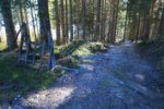 Le sentier continue tout droit, mais une odeur de cheminée nous fait faire le détour pour voir la buvette La Berra. Mais elle est fermée en cette saison. Nous retrouvons le sentier principal et on se fait surprendre par des VTTs qui descendent … mais ils ont leur parcours séparé du nôtre par un cordon.