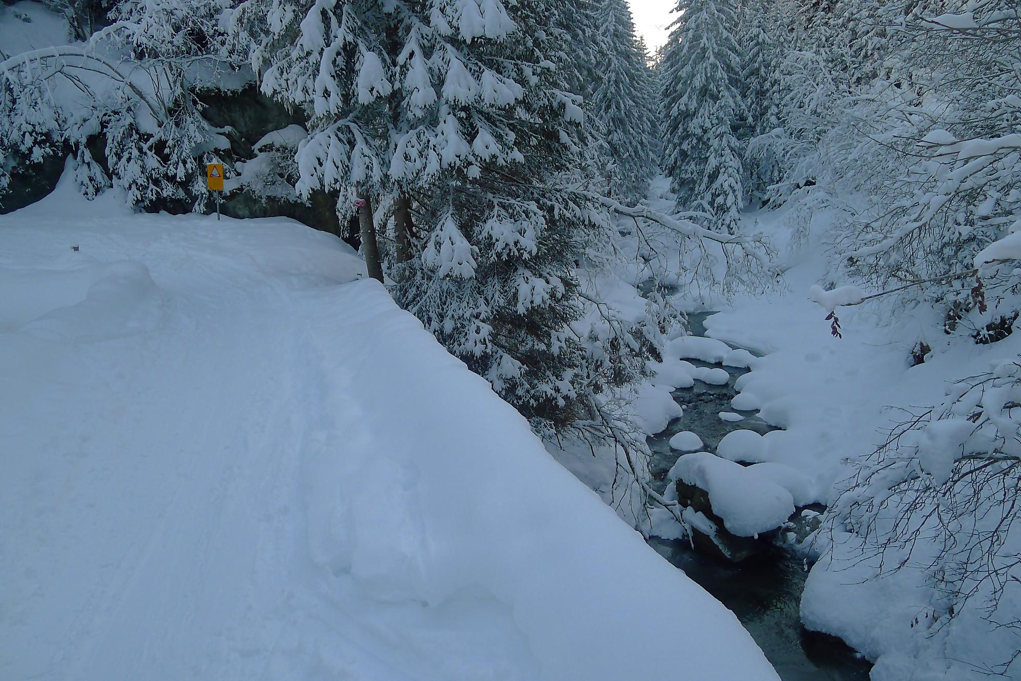 Terminus de la descente au Pont de Tsarevesse, mais pas fin de la partie car il reste à remonter à Bourg Saint-Pierre. En fin de parcours, peu réjouissant et j’ai porté les skis à la main. Le souffle court et la langue pendante, je finis par arriver au parking où le bistrot local m’a offert, enfin contre espèce sonnante et trébuchante, la boisson de D. Cuche.