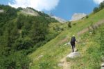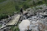 Nous remontons ce plateau, tiens quelques fleurs de lin, joli. Puis un pont en aluminium nous permet de franchir La Salentse. Quelques marmottes se font entendre au loin. Puis il faut affronter le mur du Pessot, passage raide de cette randonnée. Le chemin zigzague.