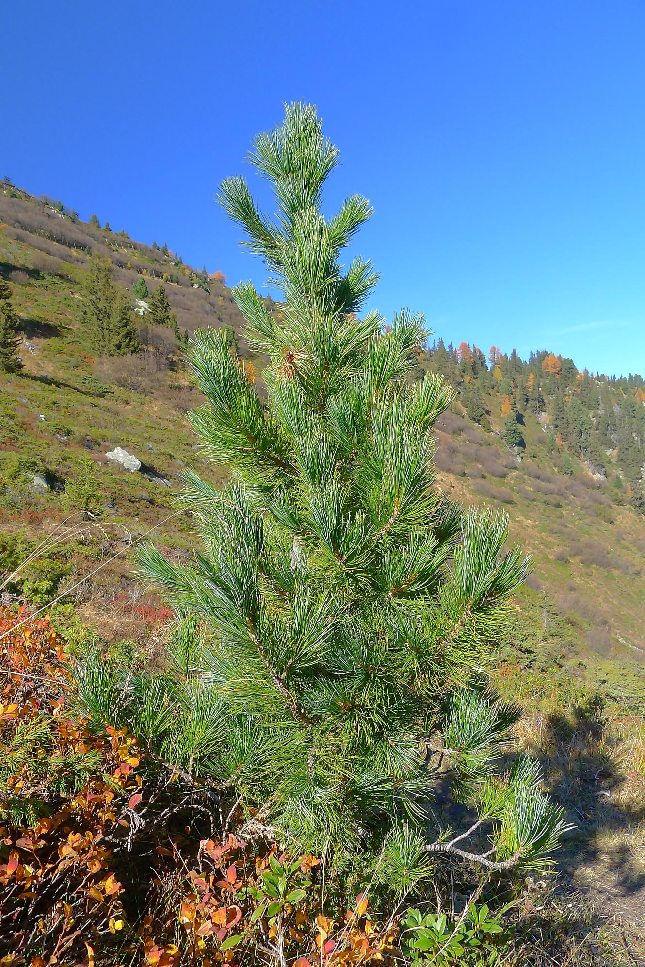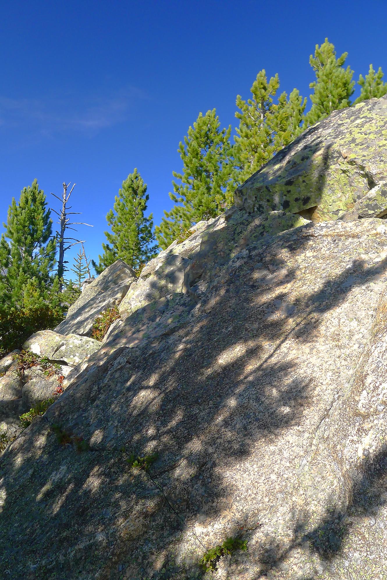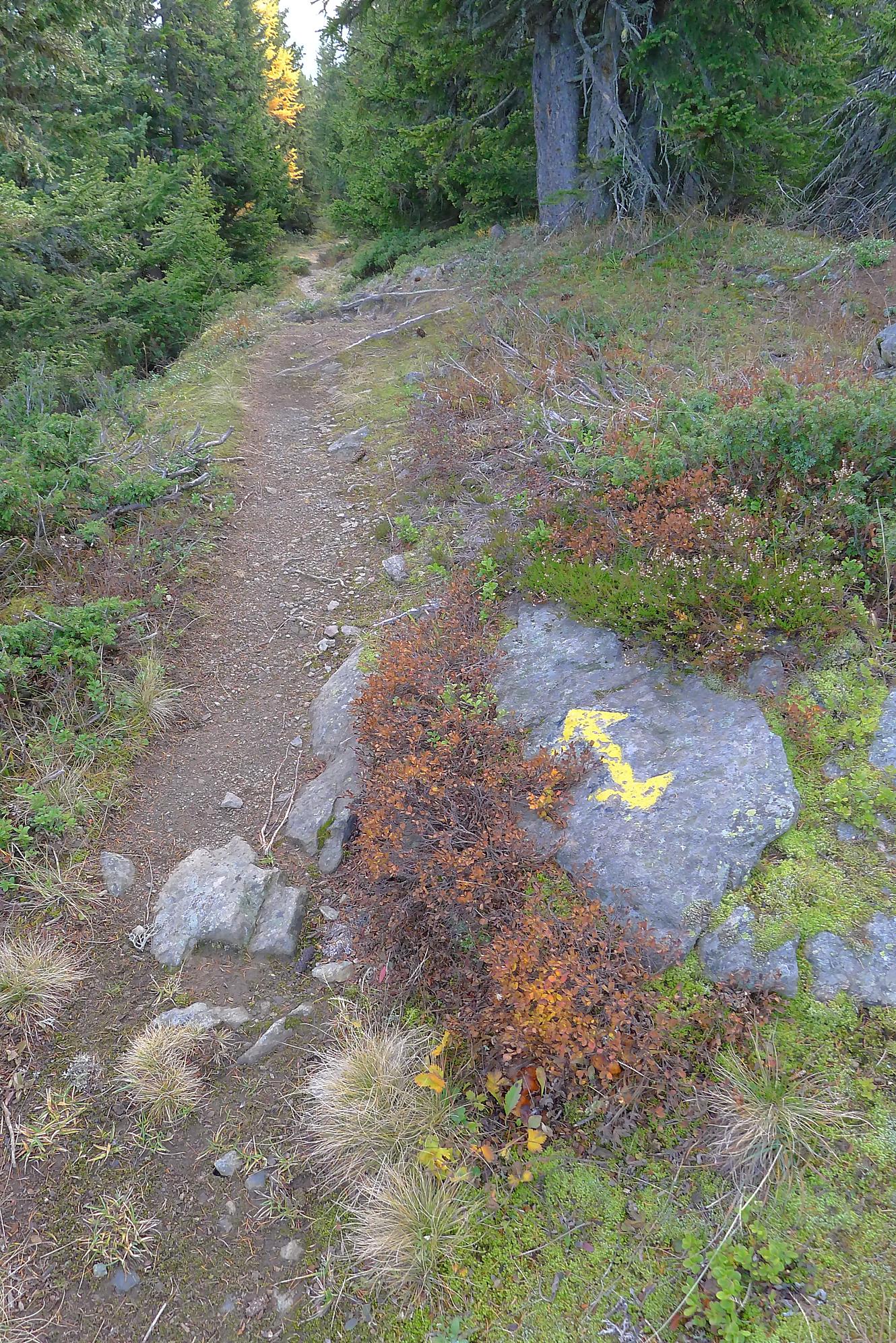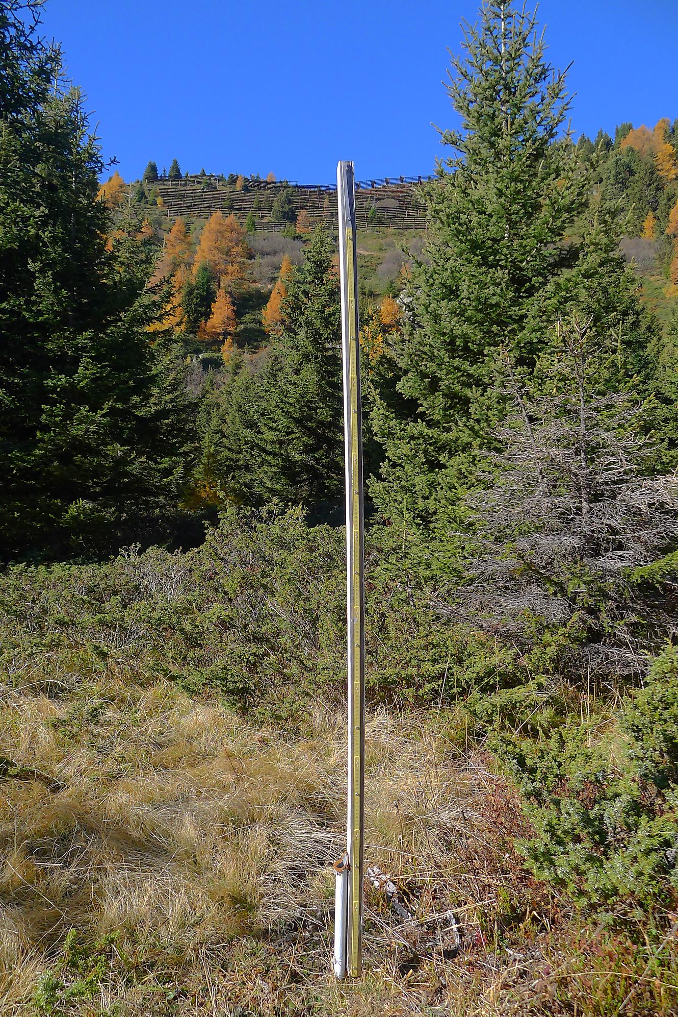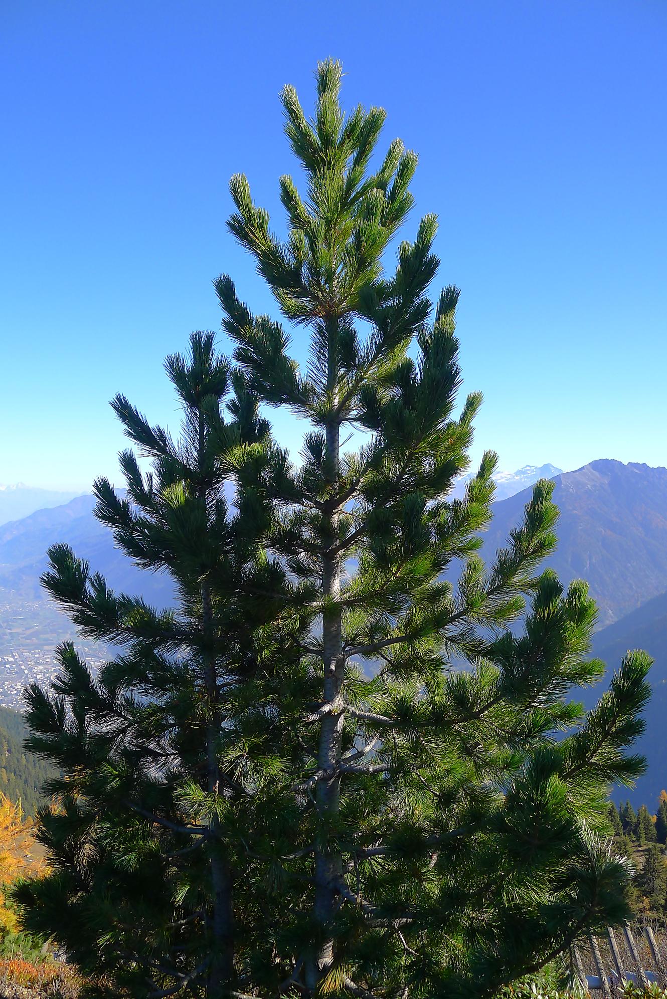 J’ai attendu sur le parking du restaurant de La Forclaz, que le soleil de l’automne arrive enfin. Puis je suis parti, montant dans la face SE par le chemin au-dessus de Sé de Meylan. J’aurai préféré le prendre à la descente, car plus doux, mais étant orienté E, j’ai préféré l’option soleil du matin. Le premier tiers est pentu, jusqu’à la fin de Sé de Meylan, mais les mélèzes en feu rendent les lieux extraordinaires, puis en sortant de la forêt (Le Larzey), l’épicéa et mélèze cèdent leur place aux génévriers et rhododendrons, ainsi qu’à quelques aroles. On passe près des paravalanches, une montée pentue, puis trouvons la crête où on arrive peu après au sommet. La commune de Martigny-Combe et le Tour du Mont-Blanc ont installé une bien jolie table d’orientation émaillée, peinte par une artiste. Le panorama s’ouvre sur la vallée du Rhône, Dent Blanche, Grand Combin et Mont-Blanc entre les arbres. Du côté de Trient la vue est bouchée par ces arbres, dommage.