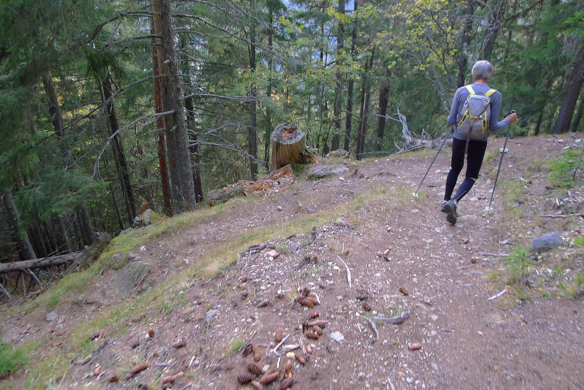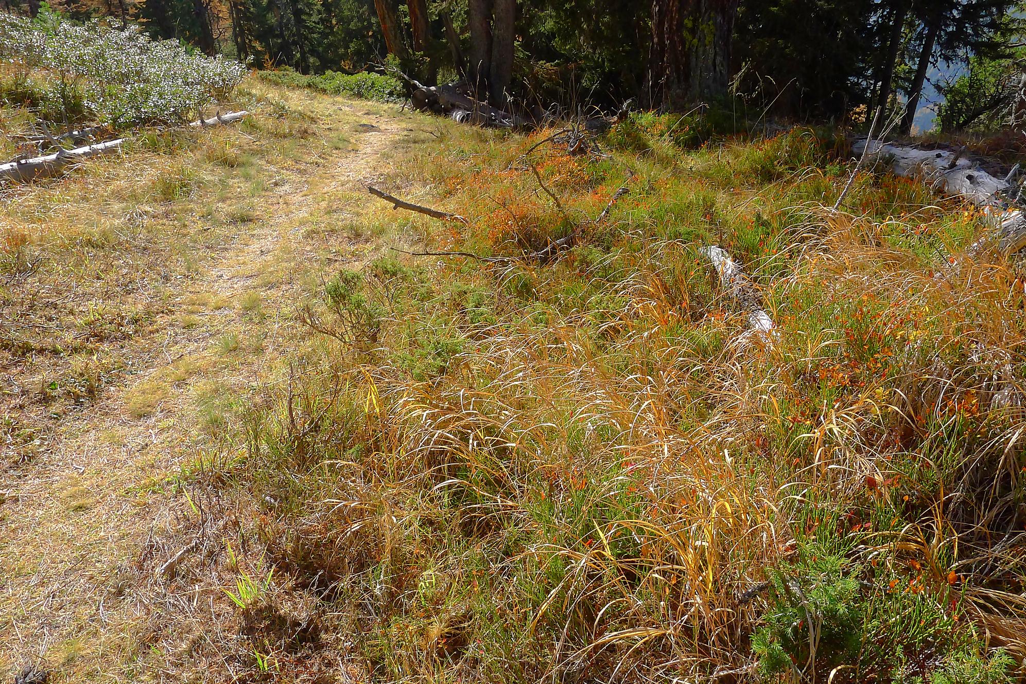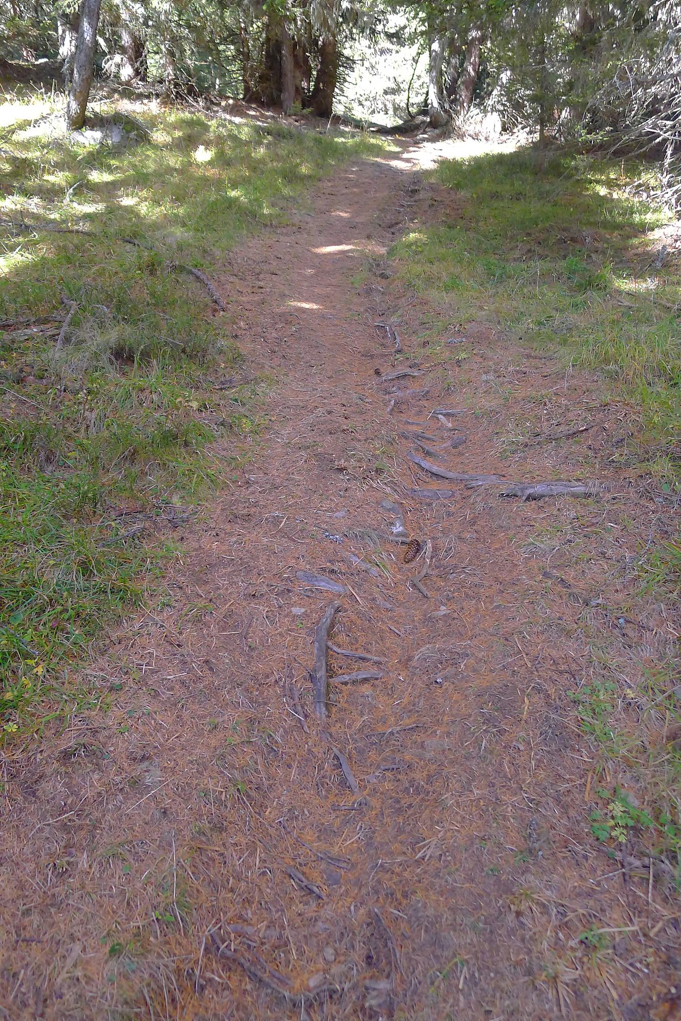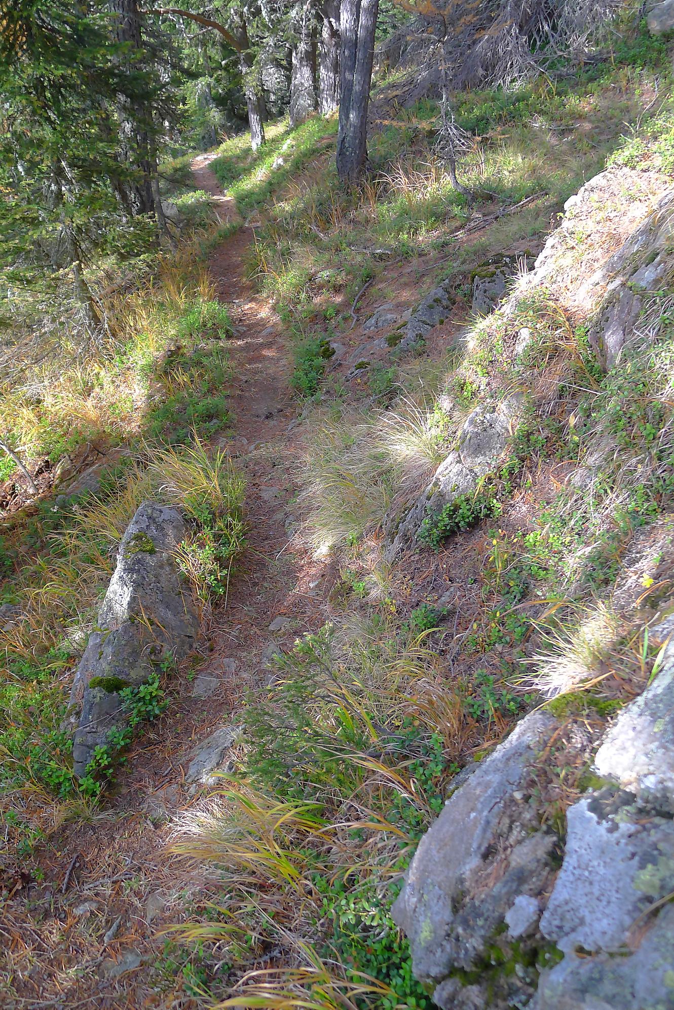 Puis je remonte, par un sentier en forêt, il y a bien des fourmilières dans la région. Au Pt1968, il est possible de descendre directement au Col de la Forclaz, mais il me restait du temps et je suis parti par le sentier de Plan de Gy. En sortant de la forêt, ce fut un de mes secteur préféré de cette balade. Il y a quelques gouilles sur notre passage. Puis je rejoins la crête et peu après je retrouve le Mont de l’Arpille. Le ciel s’est voilé d’altostratus, et il est fait mon chaud. Je poursuis ensuite par la crête, le sentier est doux et joli. J’arrive à un chalet qui est donc le reste (transformé) de l’arrivée du télésiège. Puis le chemin bifurque à l’O. Il y a un raccourci vers 2020m et écoutant mon instinct je l’ai suivi. Certes c’est pentu, mais comme c’est un raccourci, c’est court ! Je retrouve le chemin sous le Pt1968 et le descends. D’abord agréable, puis vers 1900m, il devient pentu et tout en zigzags. Un homme me rattrape et nous finirons ensemble la balade. Il restait à rejoindre le Col de la Forclaz, dont on entend assez vite les voitures filant à vive allure (eh oui le Valais !). Chose surprenant, il n’y a pas de passages piétons.