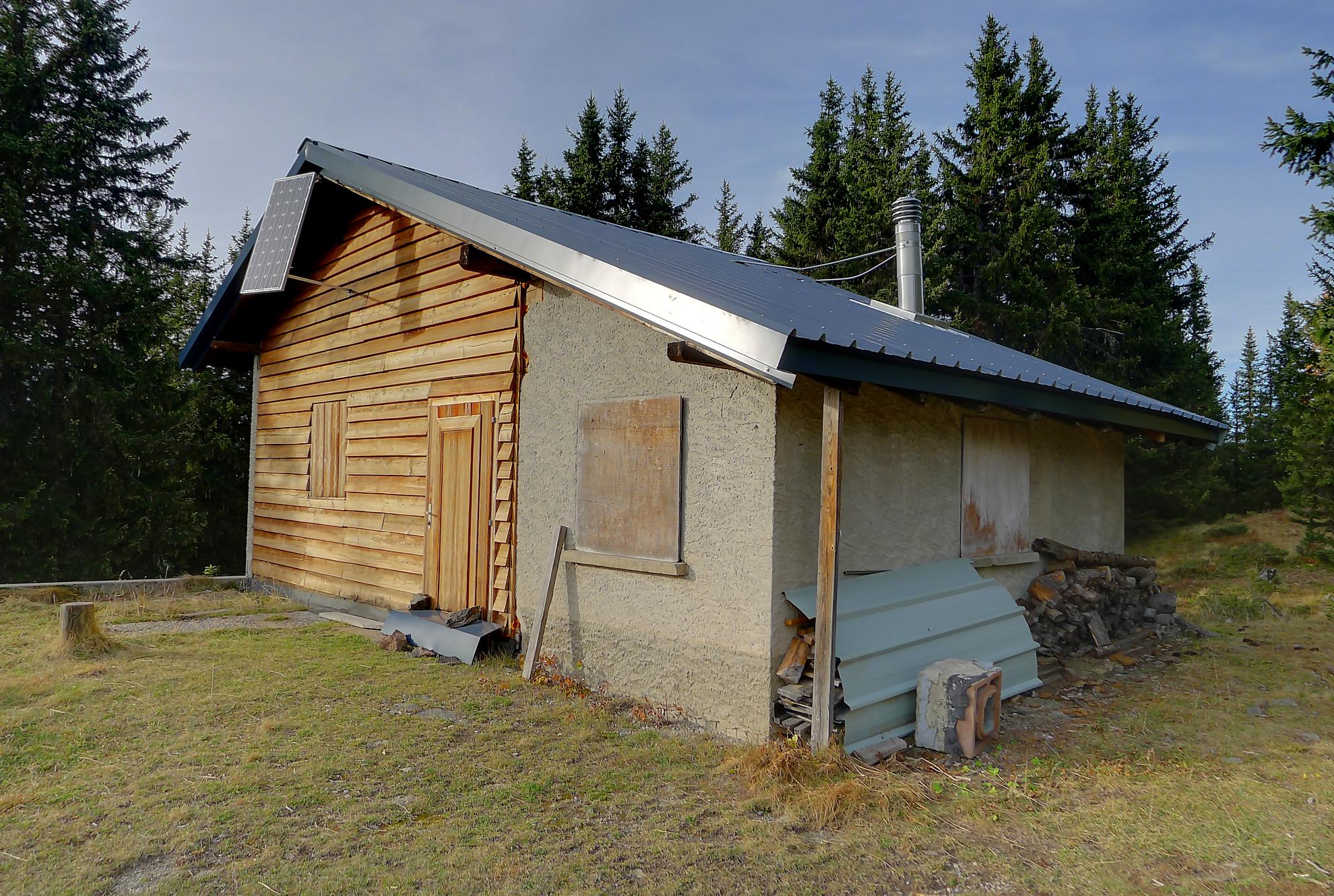 Une séquence historique, en 1957, la nouvelle route de La Forclaz est construite ainsi qu’un téléphérique La Forclaz-Mont de l’Arpille (12 min de trajet, mis en service le 4 juillet 1957). Il reste quelques socles en béton et l’arrivée du téléphérique transformé en chalet (je le verrai au retour). Un projet de transformer tout le massif en station de ski a vu le jour (voir ce prospectus promotionnel). Lorsque les infrasctures furent en place, le début de la construction des futurs logements fut stoppé car le plateau manque d’eau. Dommage ! Le télésiège fut maintenu jusque dans les années 1970 puis fut démonté.