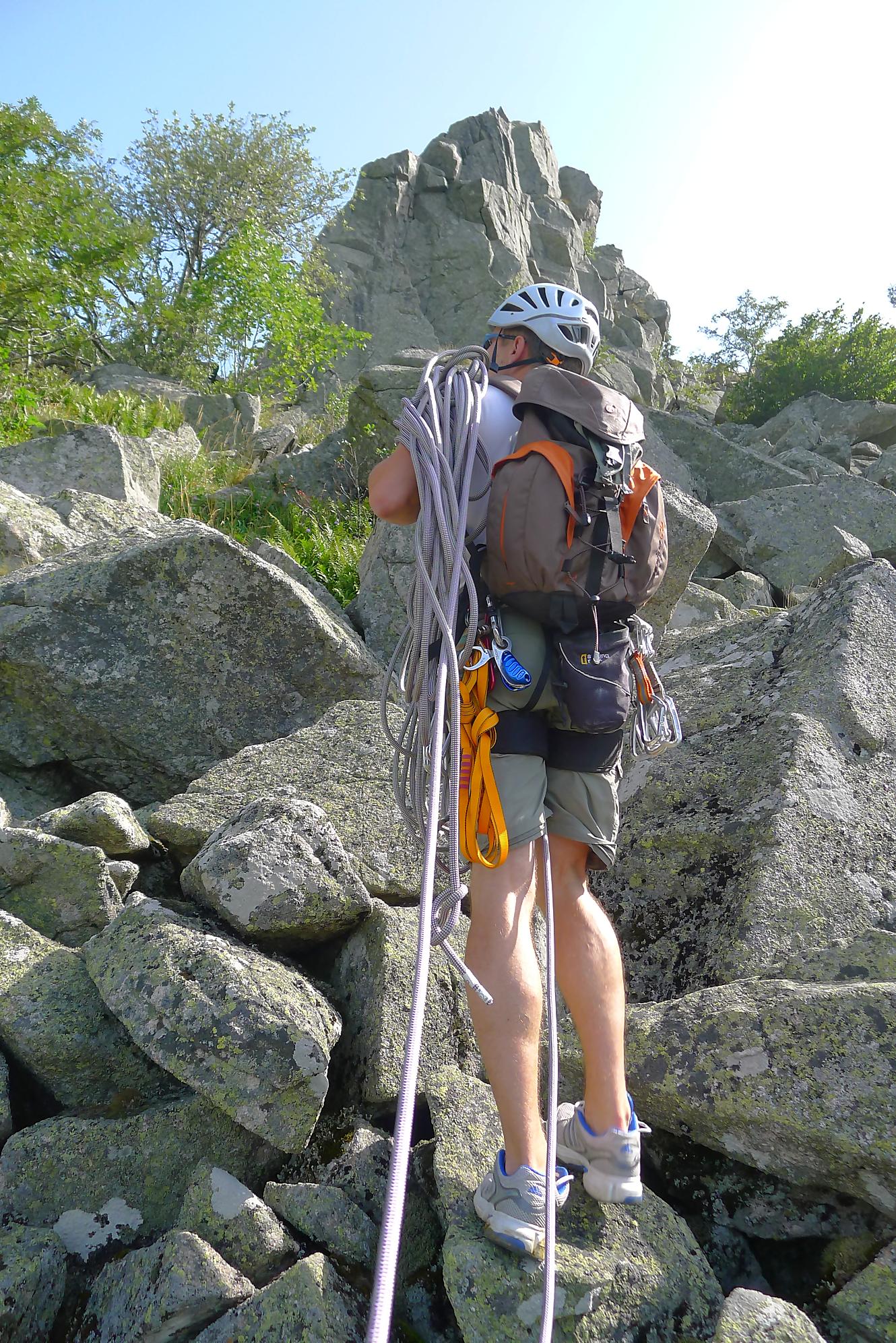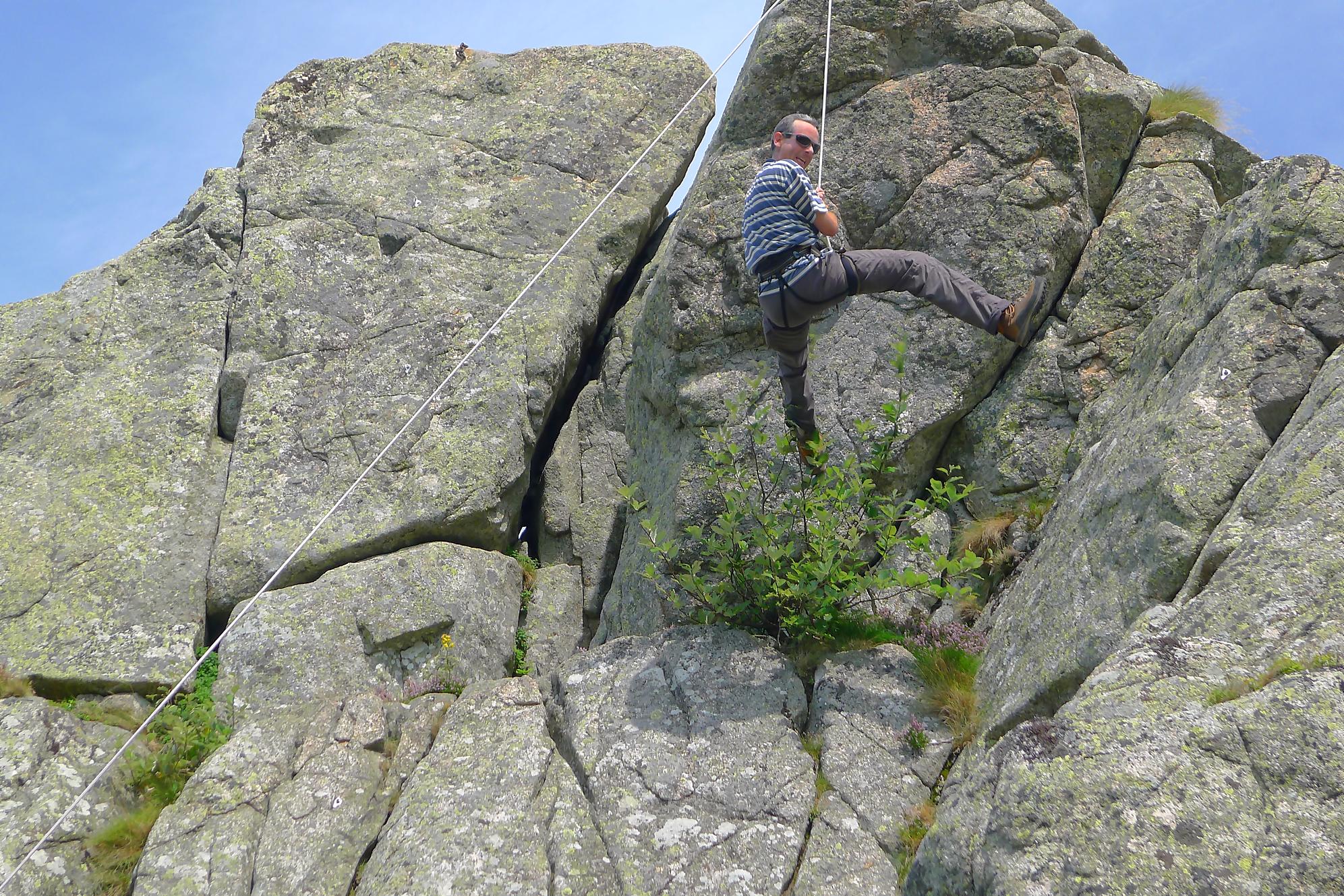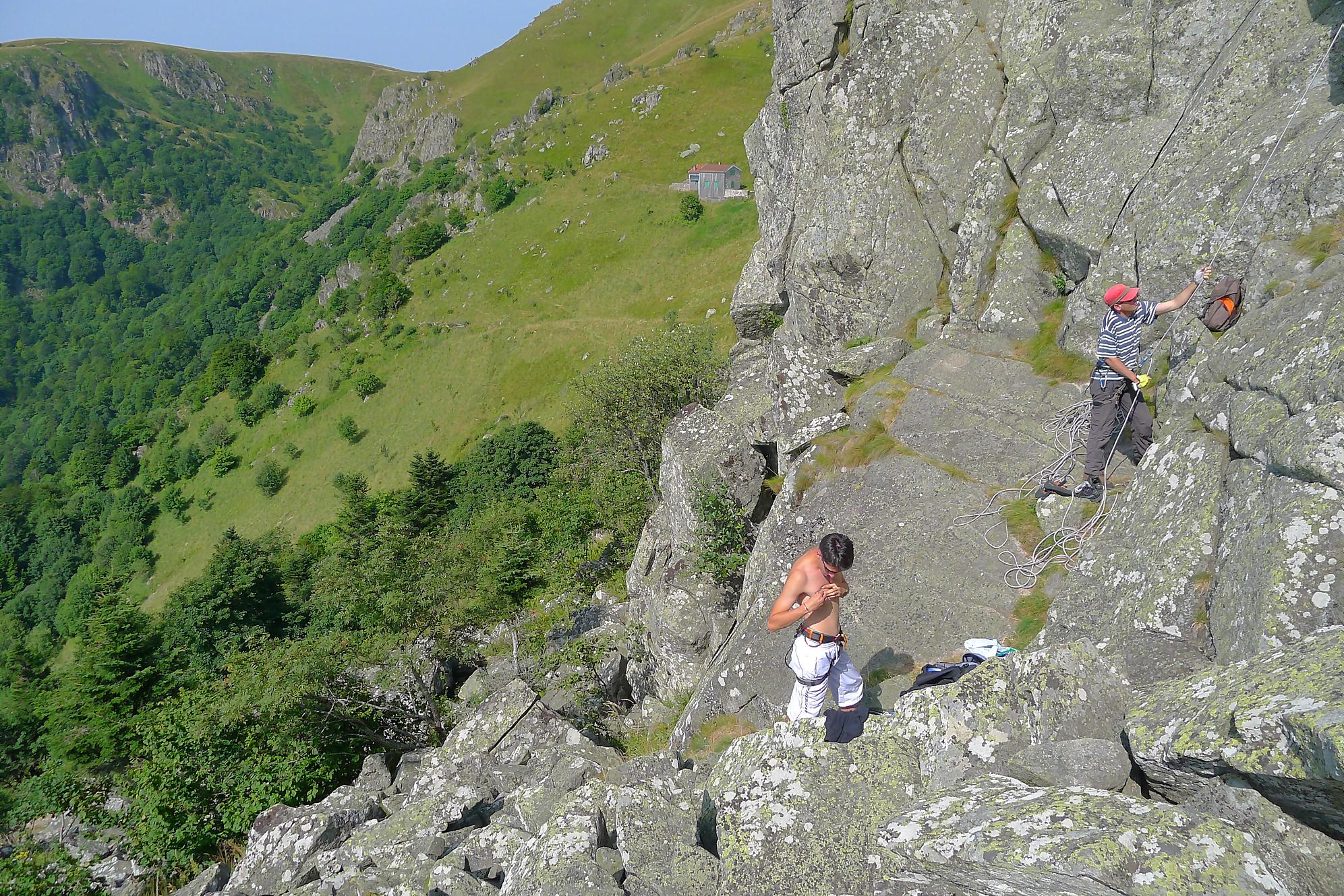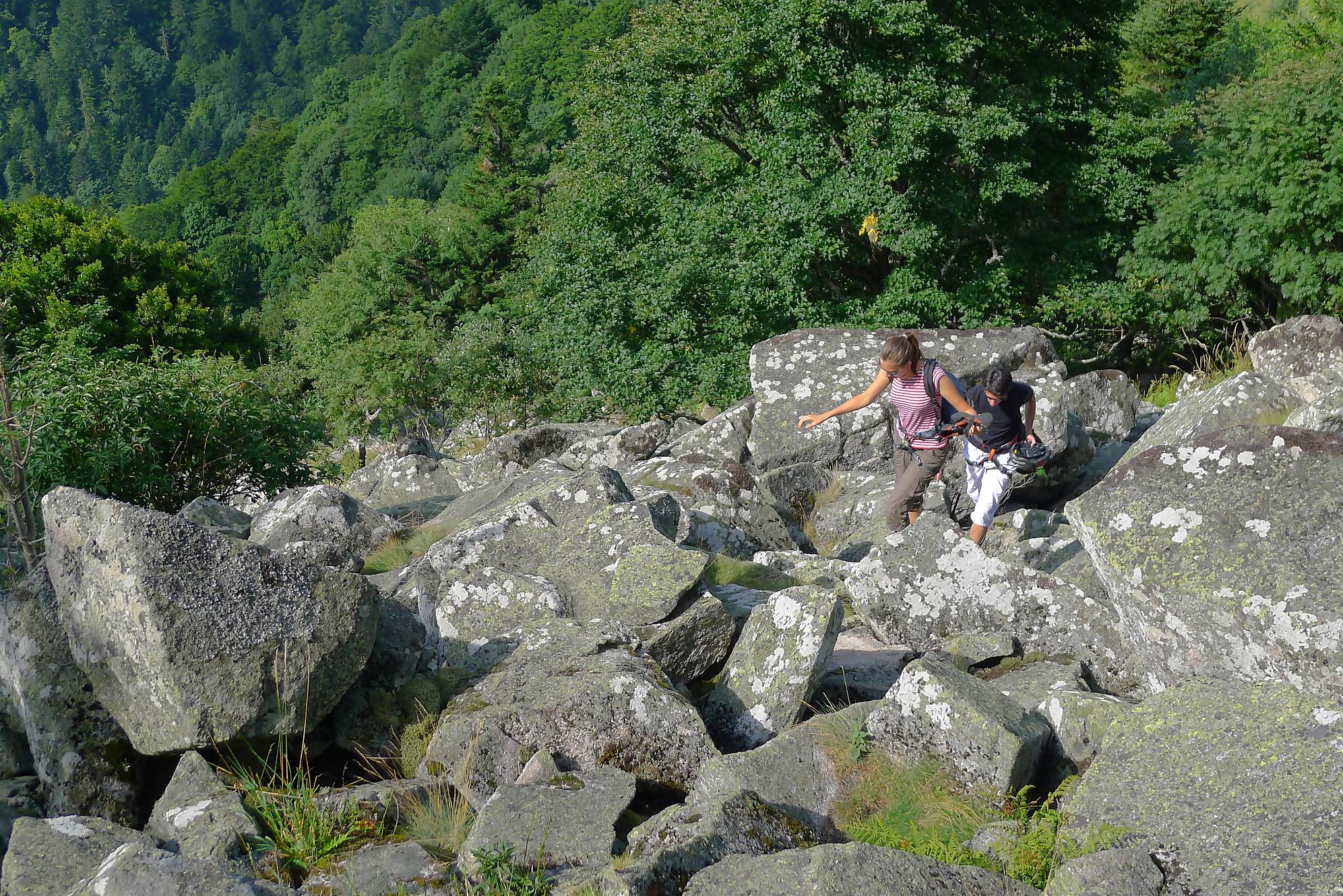 Pour varier, un peu d’escalade dans le site du Petit Hohneck. Ce spot est modeste et comporte 5-6 voies de difficulté du 3a au 6a. Pour y accéder, il faut passer le Gaschney et continuer sur la route de la ferme-auberge du Schiessroth et son parking. Ensuite une marche de 15 min, sur une route pierreuse, pour monter, à droite, sur un pierrier raide (gros blocs de pierres) et arriver au spot.