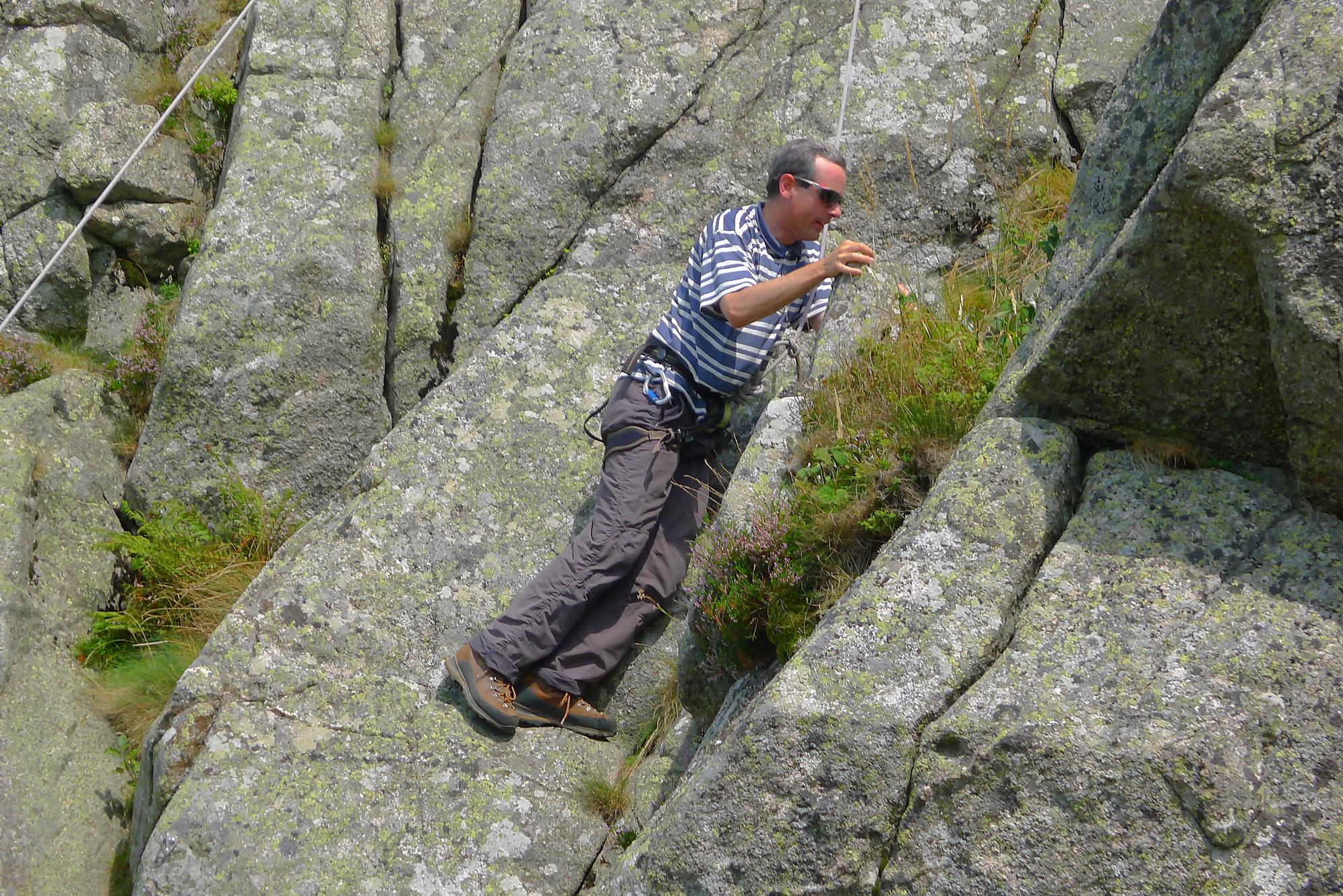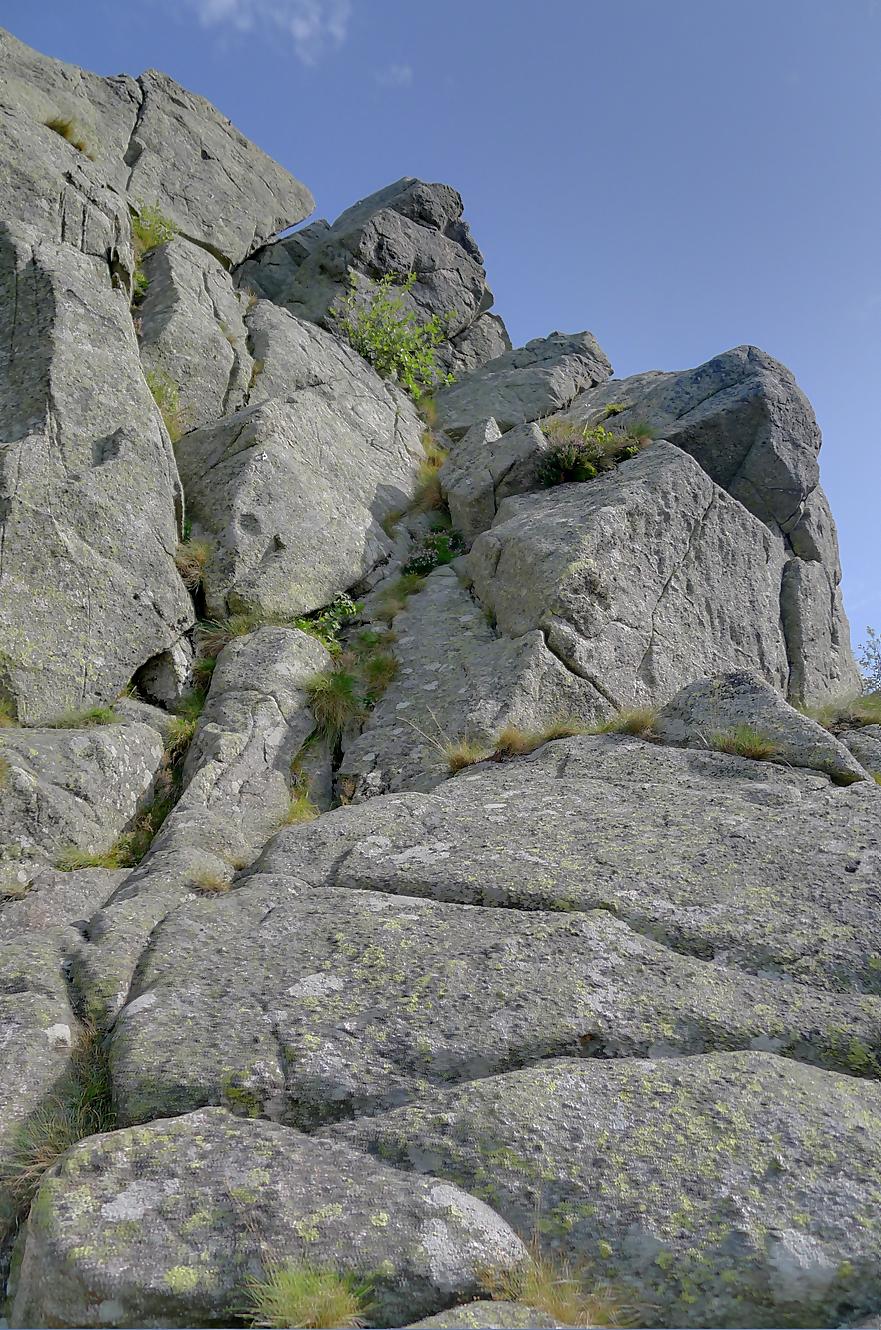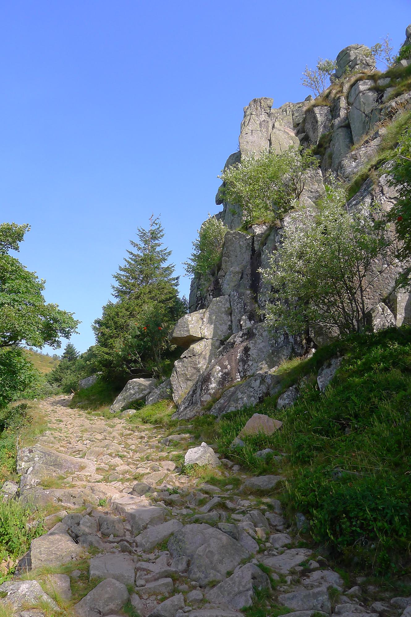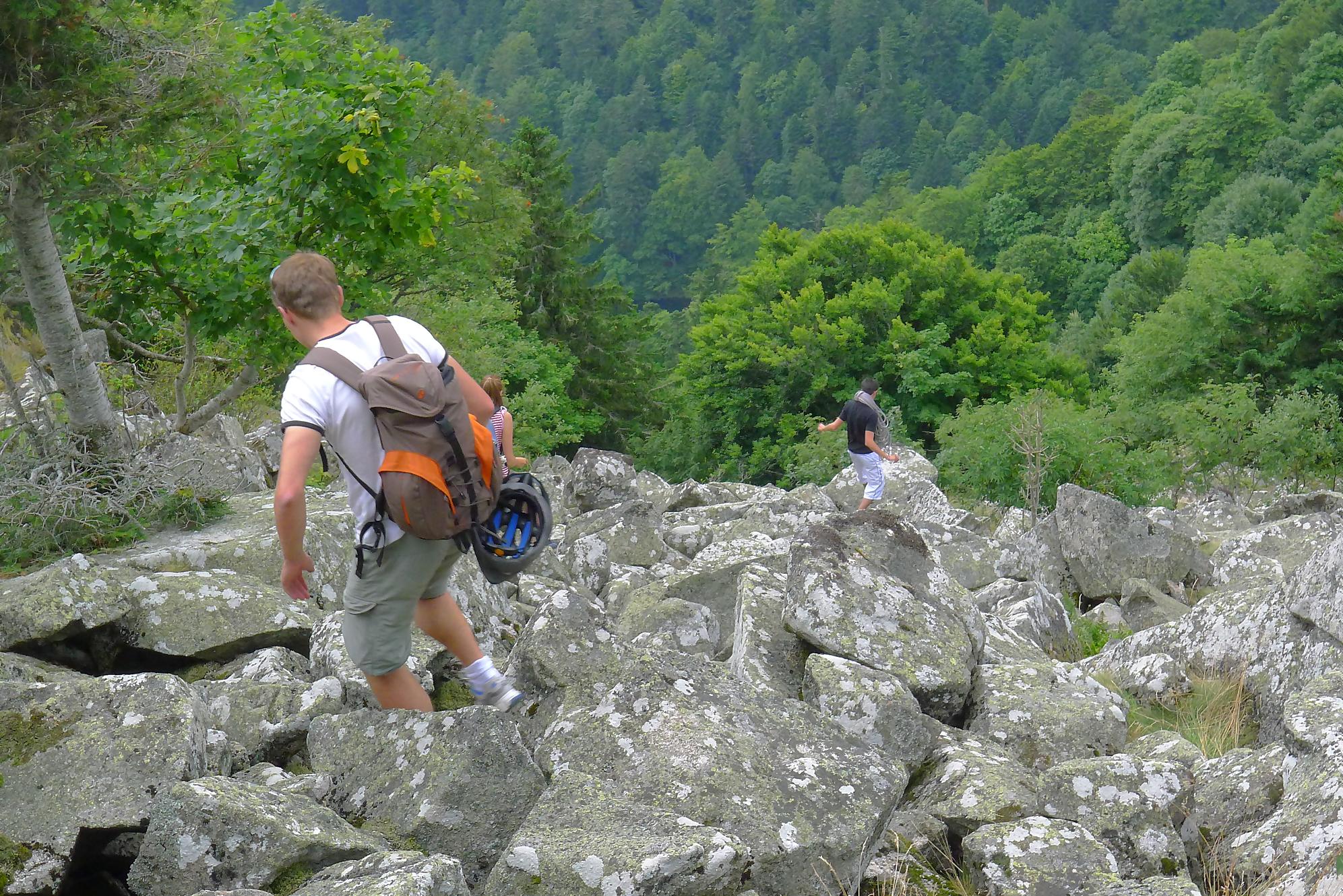 Pour varier, un peu d’escalade dans le site du Petit Hohneck. Ce spot est modeste et comporte 5-6 voies de difficulté du 3a au 6a. Pour y accéder, il faut passer le Gaschney et continuer sur la route de la ferme-auberge du Schiessroth et son parking. Ensuite une marche de 15 min, sur une route pierreuse, pour monter, à droite, sur un pierrier raide (gros blocs de pierres) et arriver au spot.