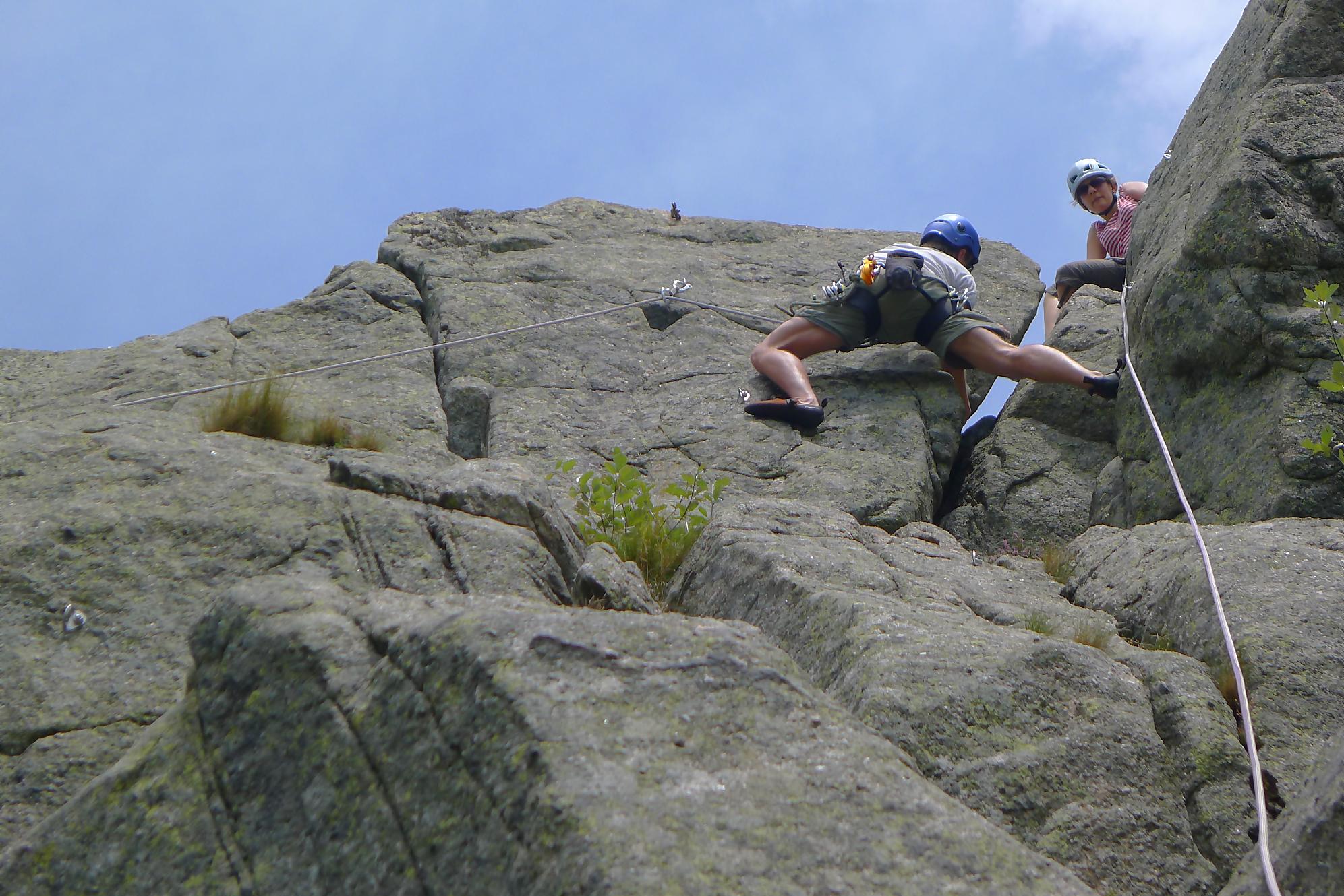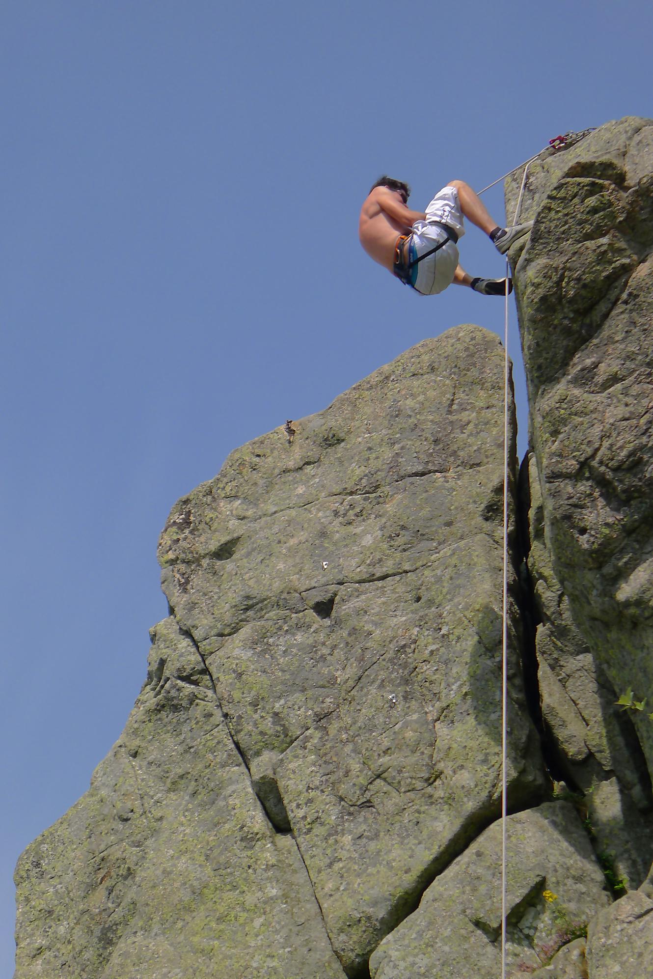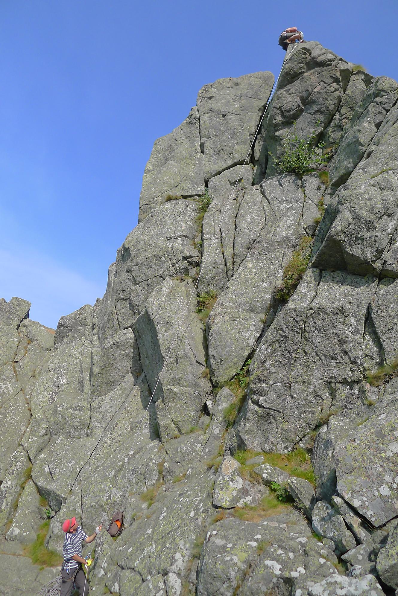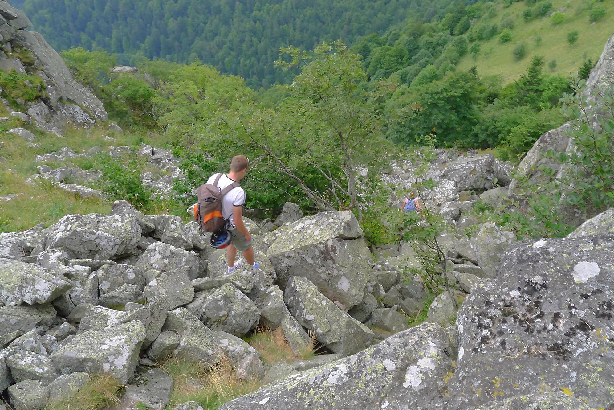 Pour varier, un peu d’escalade dans le site du Petit Hohneck. Ce spot est modeste et comporte 5-6 voies de difficulté du 3a au 6a. Pour y accéder, il faut passer le Gaschney et continuer sur la route de la ferme-auberge du Schiessroth et son parking. Ensuite une marche de 15 min, sur une route pierreuse, pour monter, à droite, sur un pierrier raide (gros blocs de pierres) et arriver au spot.