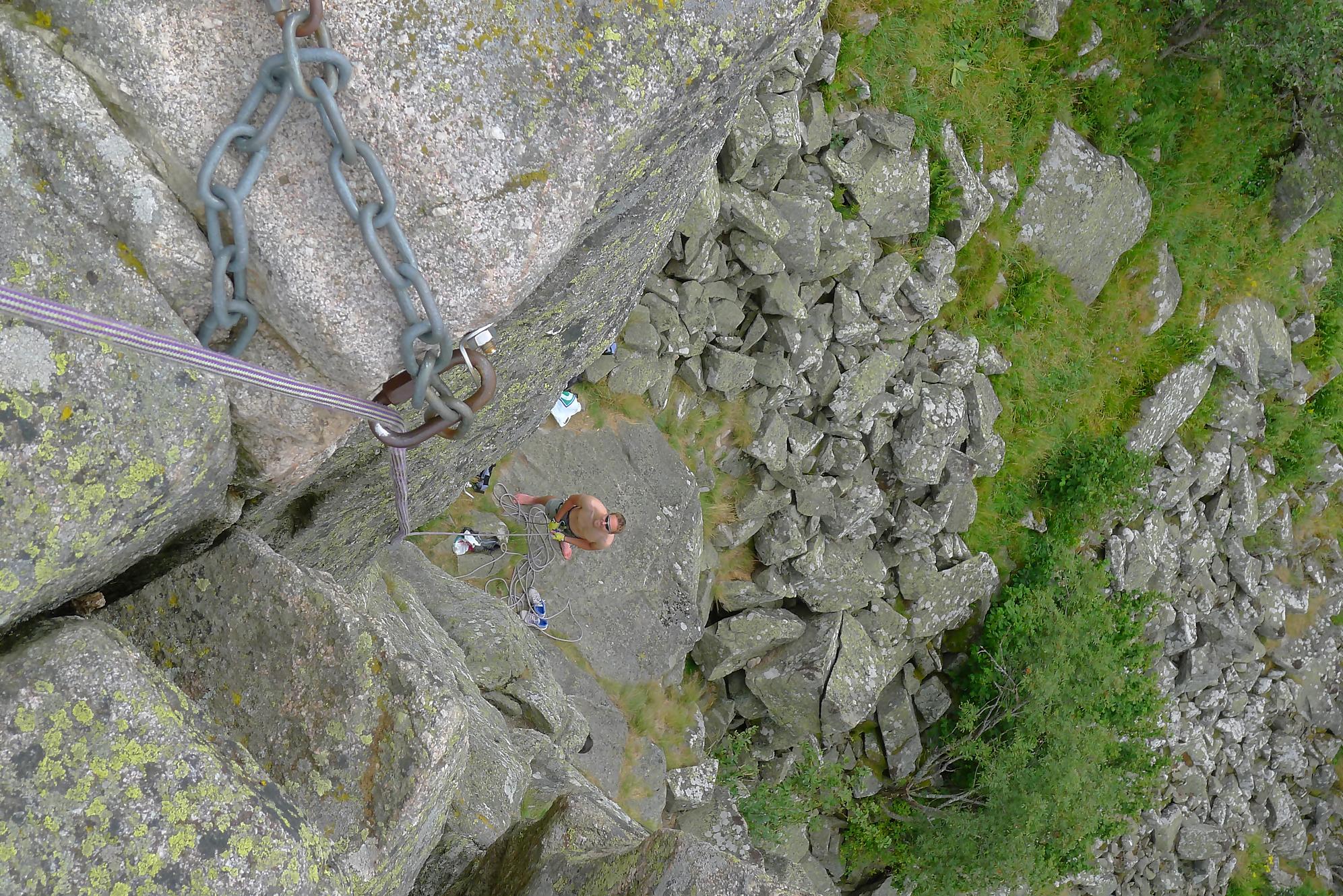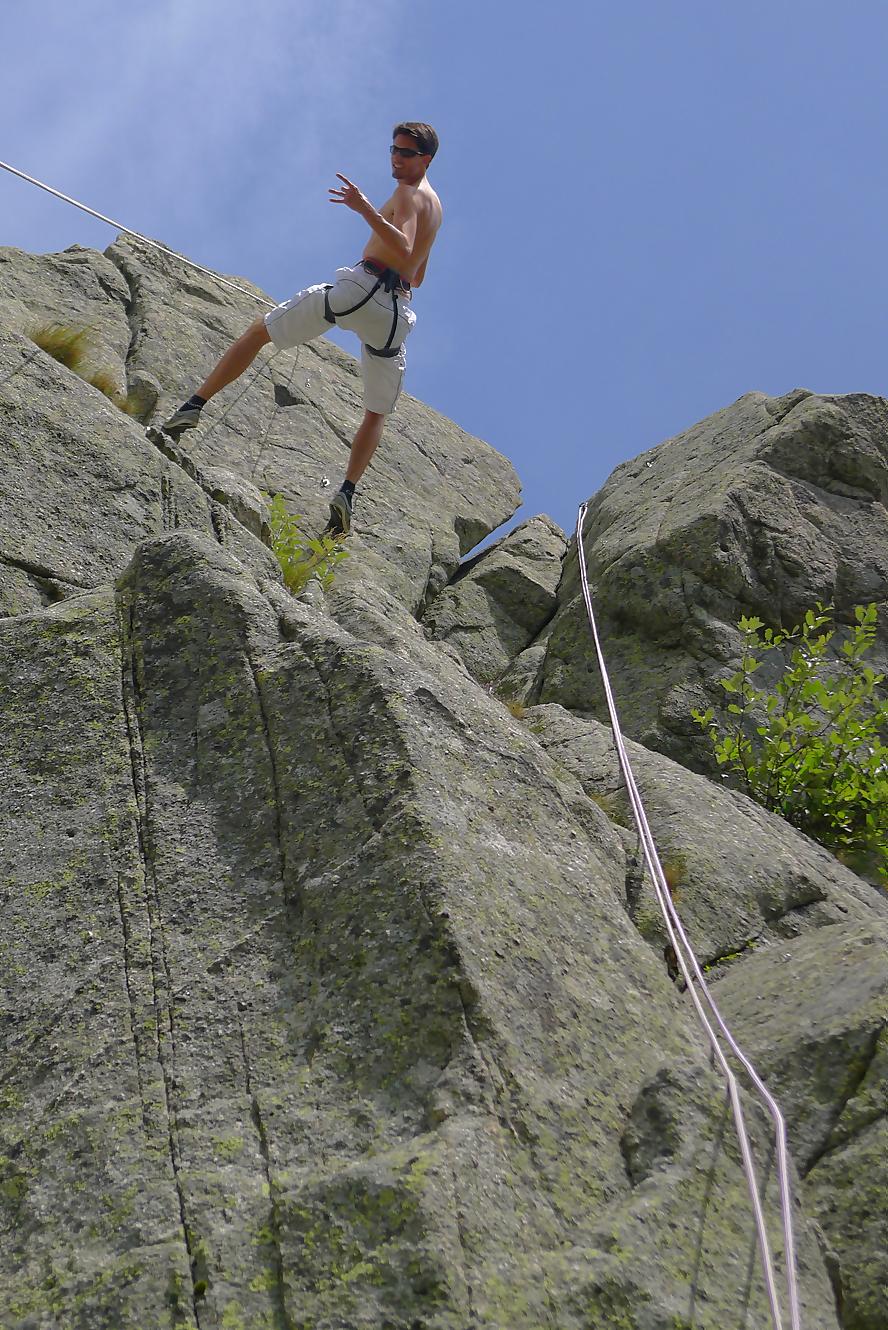 Les longueurs font entre 8 et 20 m, le sommet peut s’accéder à pied par l’autre versant. Pour une voie, le relais n’avait pas d’anneau, prévoir donc deux mousquetons. Une voie semble inachevée et il a fallu poursuivre sur les spits de sa voisine.