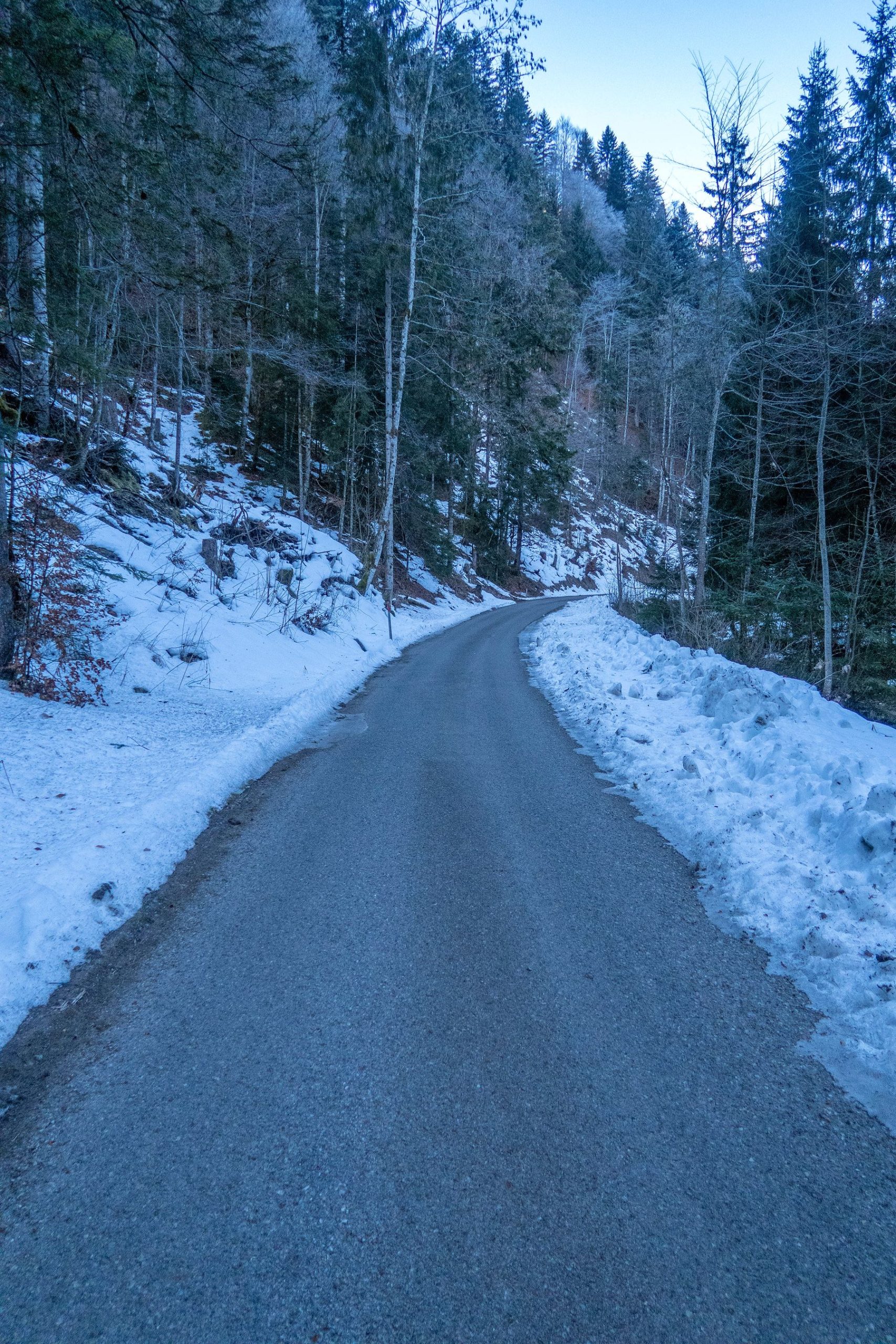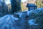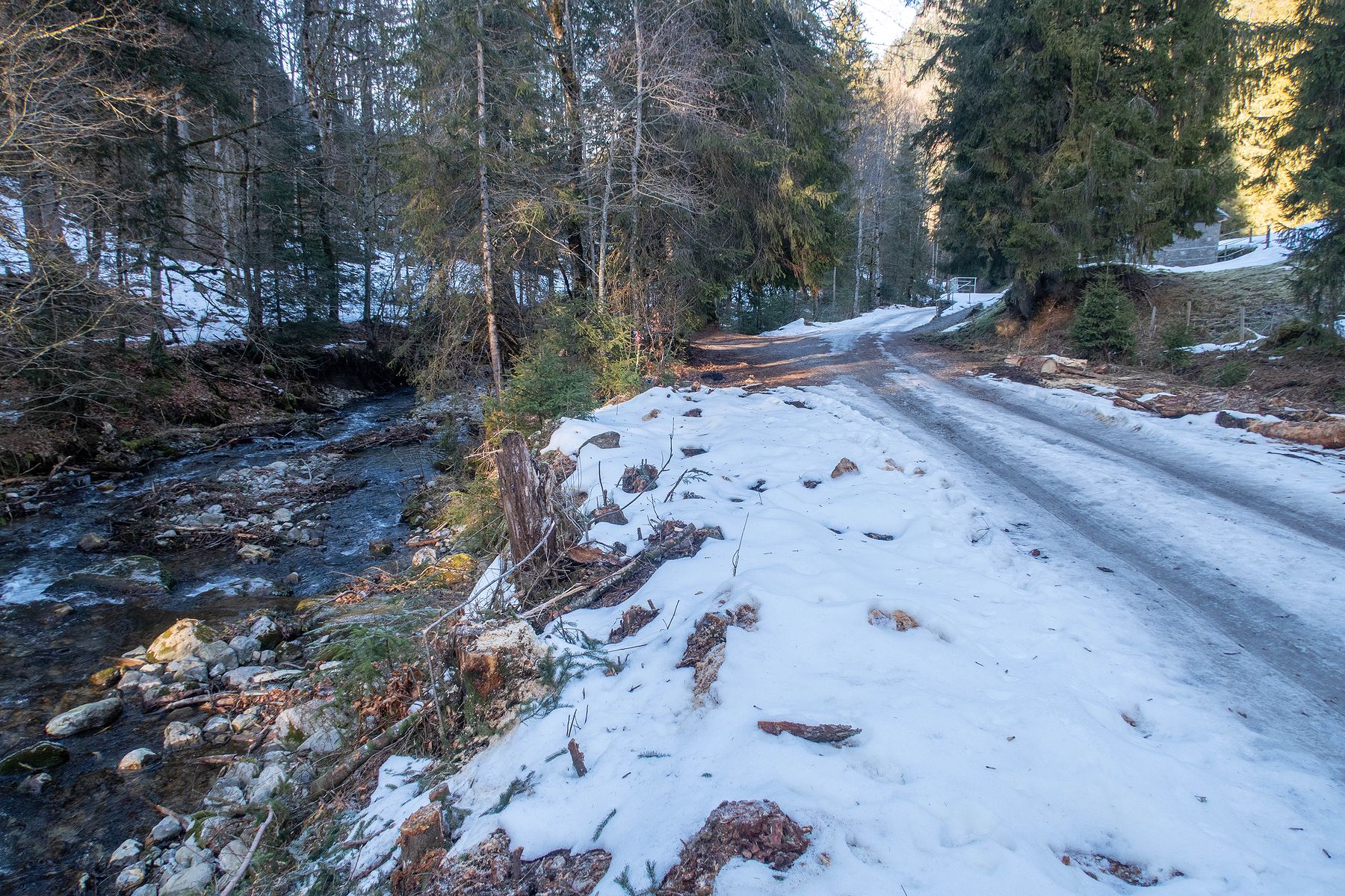 Je remonte la route étroite pour atteindre le restaurant du Pralet et son parking. En cette saison le restaurant est fermé. La glace est présente sur le parking.