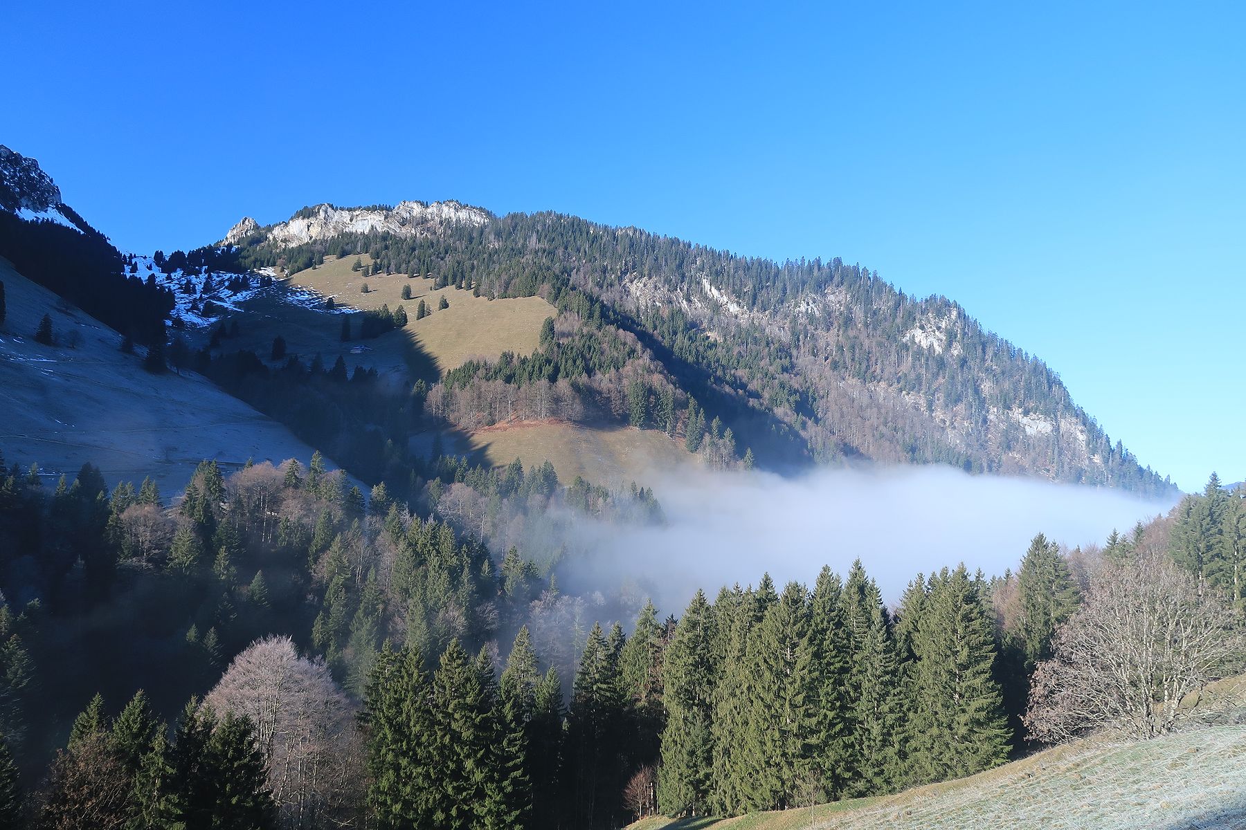 La neige fait toujours défaut et pour aujourd’hui, je décide d’une randonnée en moyenne altitude. Dans le vallon du Motélon (Fribourg), il y a un modeste sommet, sans nom sur les cartes de Swisstopo, mais nommé Haut Crêt sur OpenStreetMap. Ce sera l’objectif du jour.