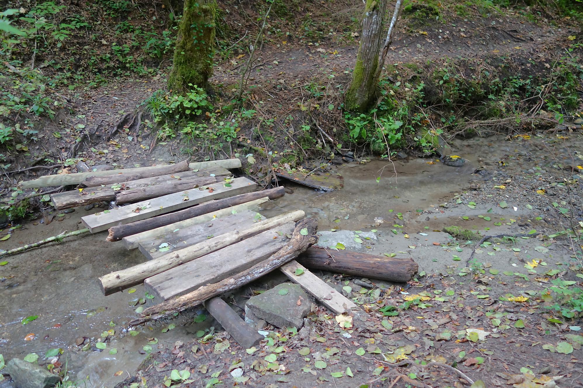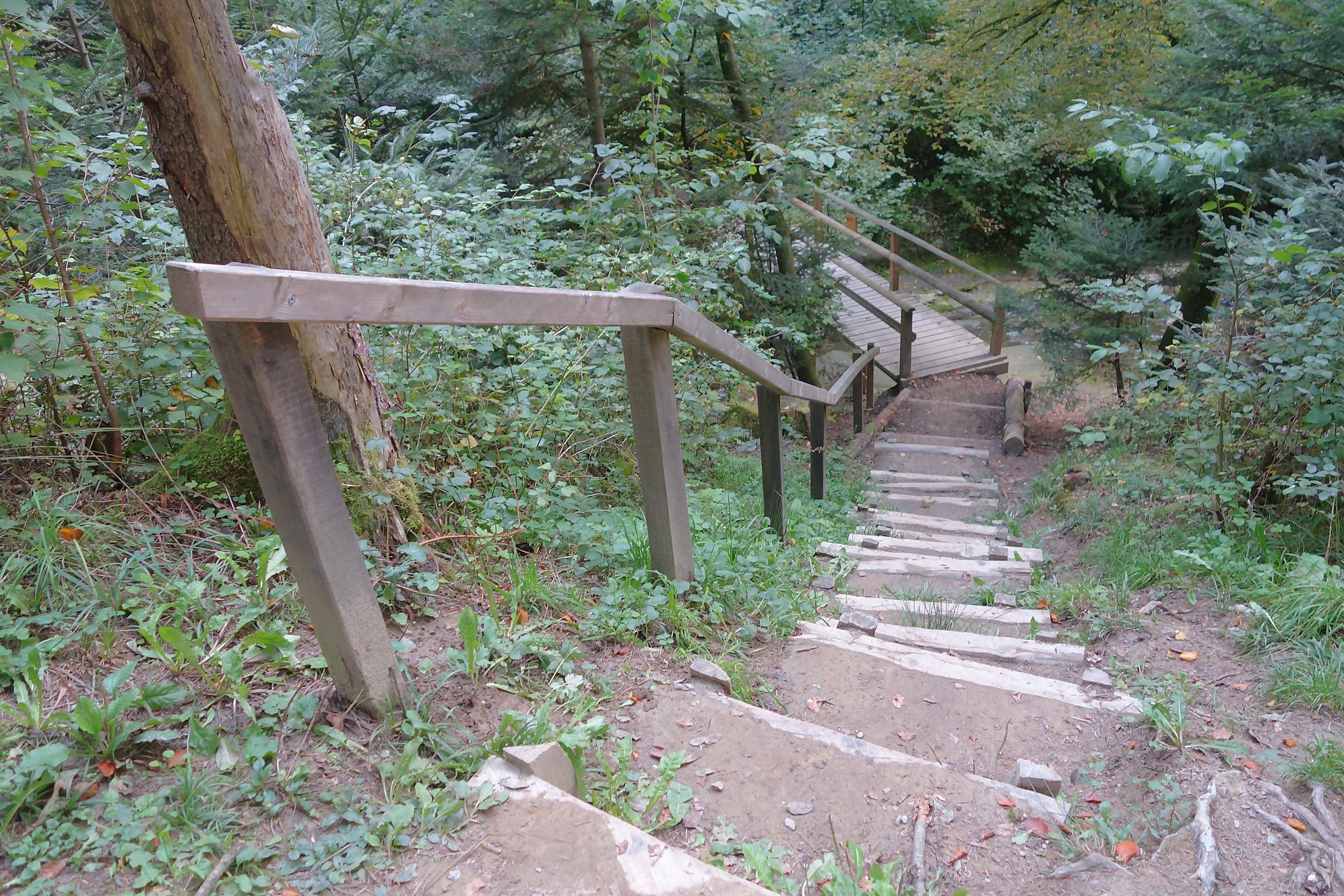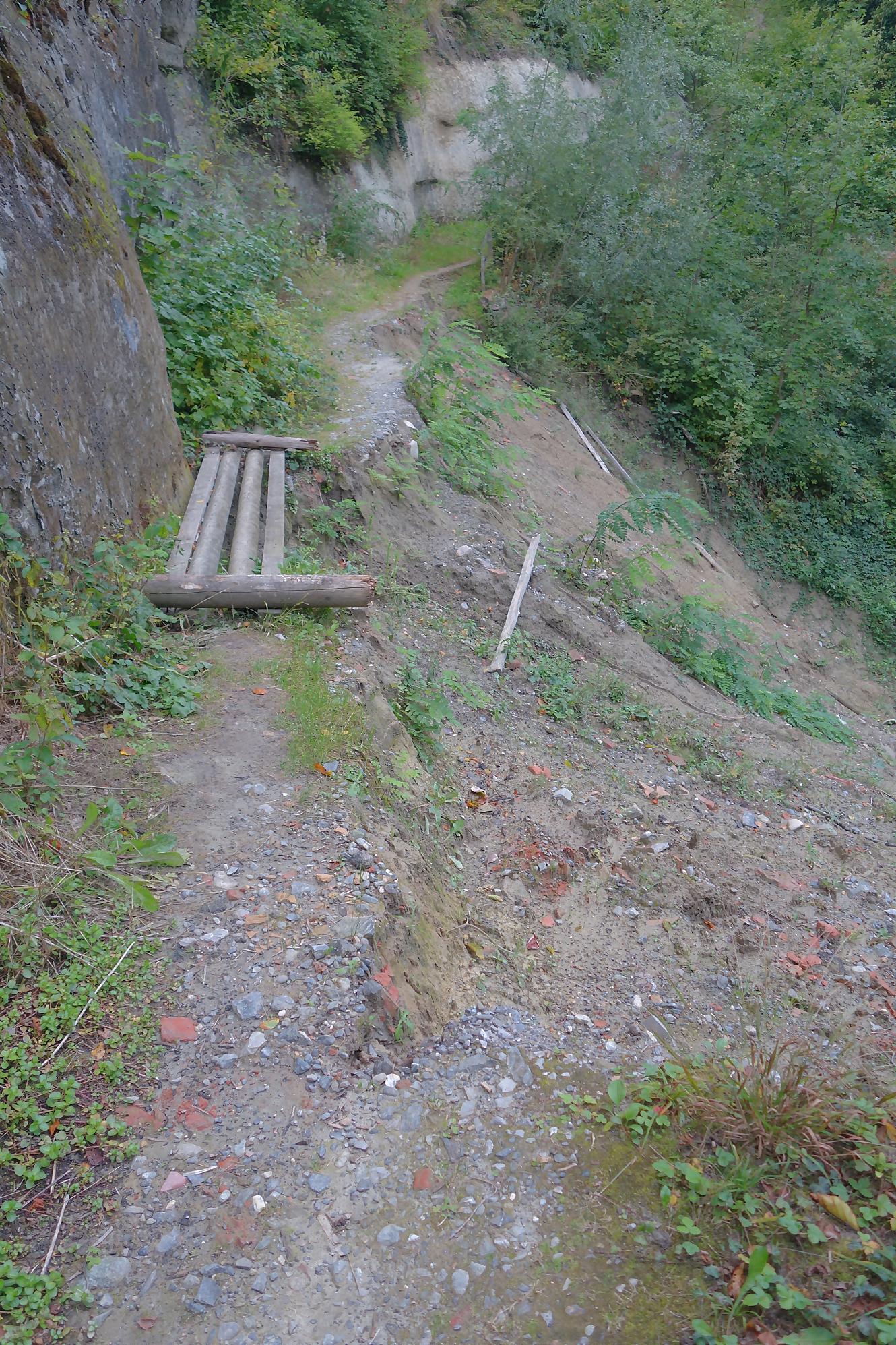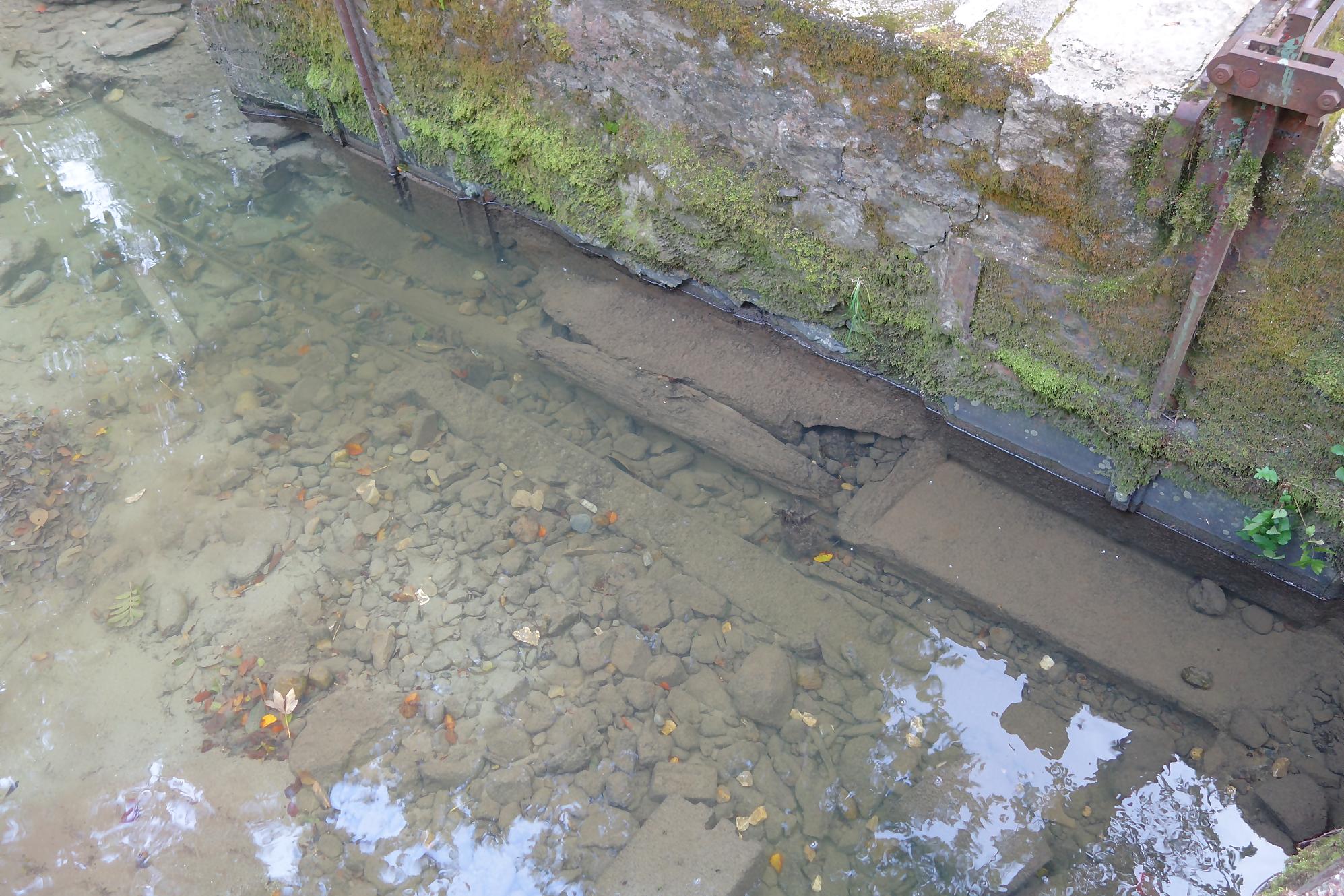 Je poursuis, le chemin devient un peu érodé, mais la molasse affleurante rend les lieux mignons. On revient à la civilisation pour passer devant le vivarium de Lausanne et sous l’autopont. L’émotion m’étreint devant tant de beauté au goût soviétique ! Je continue en forêt et découvre le reste d’une retenue d’eau pour un barrage d’un moulin. Cherchez dans l’eau, il y a des traces. Le chemin serpente en forêt dans un chemin bien aménagé. Une nouvelle fois, une petite cascade bien jolie. C’est le Sentier du Flon avec ses 21 passerelles en bois. J’ai vu quelques poissons (pas réussi à les reconnaitre !) de petite taille dans une partie plus profonde du ruisseau. Sous La Picholette, un passage sous la route pour passer devant les restes d’une pisciculture (bisse, bassin). La balade se poursuit sur un sentier style Piste Vita. On suit toujours Le Flon, avec les bouches (style bouches d’égout) de la canalisation, pas des plus charmant.