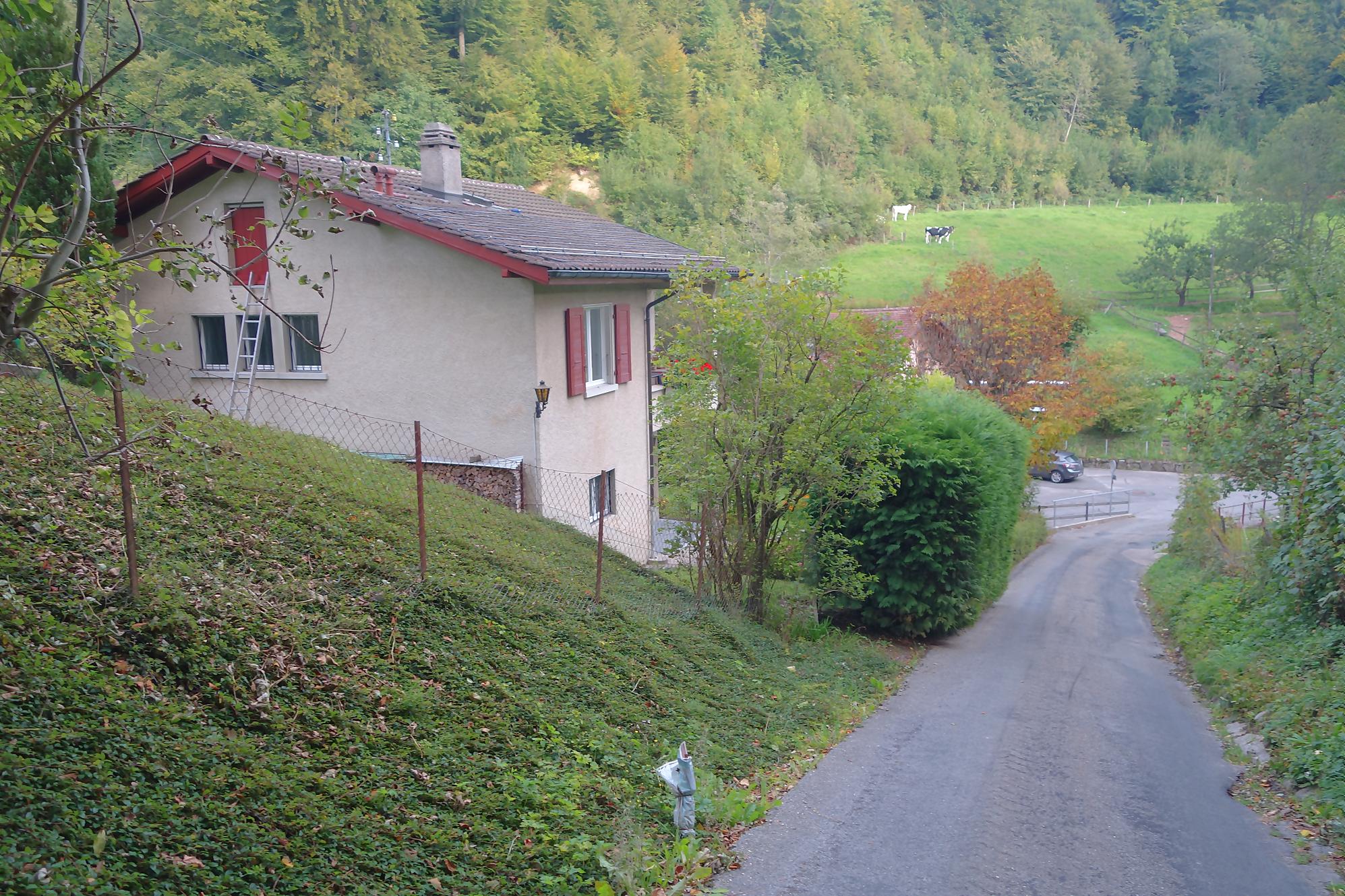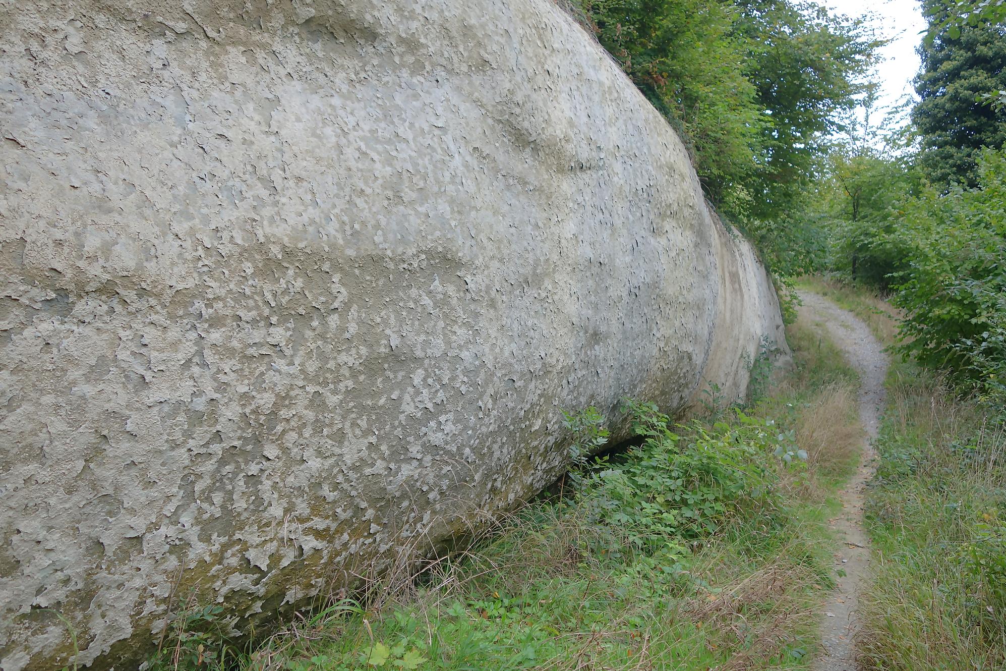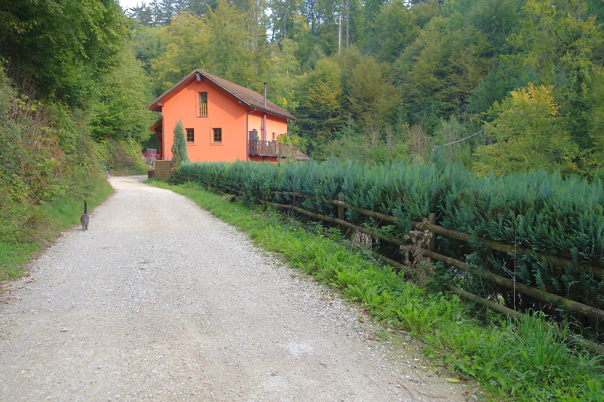 Vu la longueur à parcourir, je prévois un déplacement en transports public. Je quitte le métro à l’Ours. J’ai bien regardé à gauche et à droite, je n’ai point vu le plantigrade. Il faut traverser une petite partie de la ville, on se met du gazole plein les poumons. Puis on passe dans le Tunnel de la Barre avec sous vitres une exposition de plantes exotiques. Original. Puis enfin je quitte le bitume pour monter en forêt. Les panneaux pédestres n’éclairent que fort peu. Je passe devant le musée de la Fondation de l’Hermitage, me contentant de faire un bref tour dans le jardin. Je traverse une forêt dense où bien du monde se détend dont une troupe de scouts. J’avais pensé passer devant l’usine d’incinération Tridel, mais je fus inattentif et continue tout droit. Je croise deux dames et nous babillons comme des filles et grâce à elles je découvre une jolie cascade du Flon en plein dans le grès local, plus connu sous le nom de molasse (reste d’érosion sédimenté). Fort joli à ne pas rater (en passant par Tridel, on y passe).