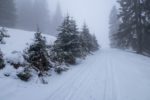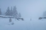 Puis, après la pause, nous repartons sur la route. La route est débonnaire et c’est charmant. Deux contours plus loin, nous arrivons devant la ferme du Chalet du Grand Essert. Le brouillard est bien présent.