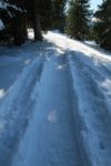 Puis, je file par un chemin différent, en léger contrebas de celui de la montée. Il passe en dessous de la croupe et sous l’arrivée du télésiège, il faut filer à gauche, plein N. De nouveau en forêt, par une jolie descente (empruntée à la montée lors de cette randonnée). C’est droit en bas, trop facile !