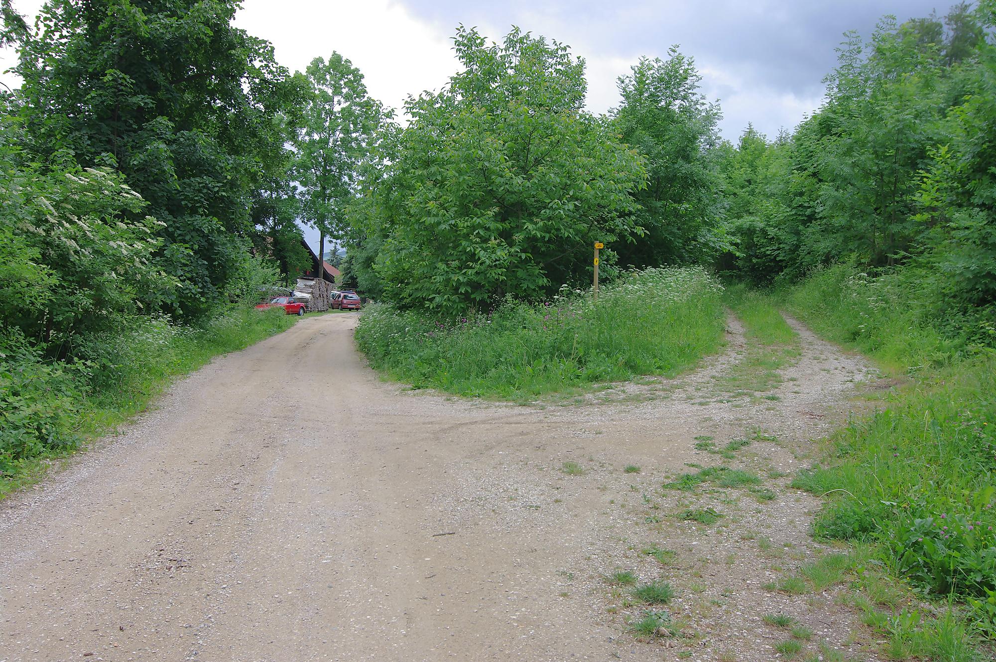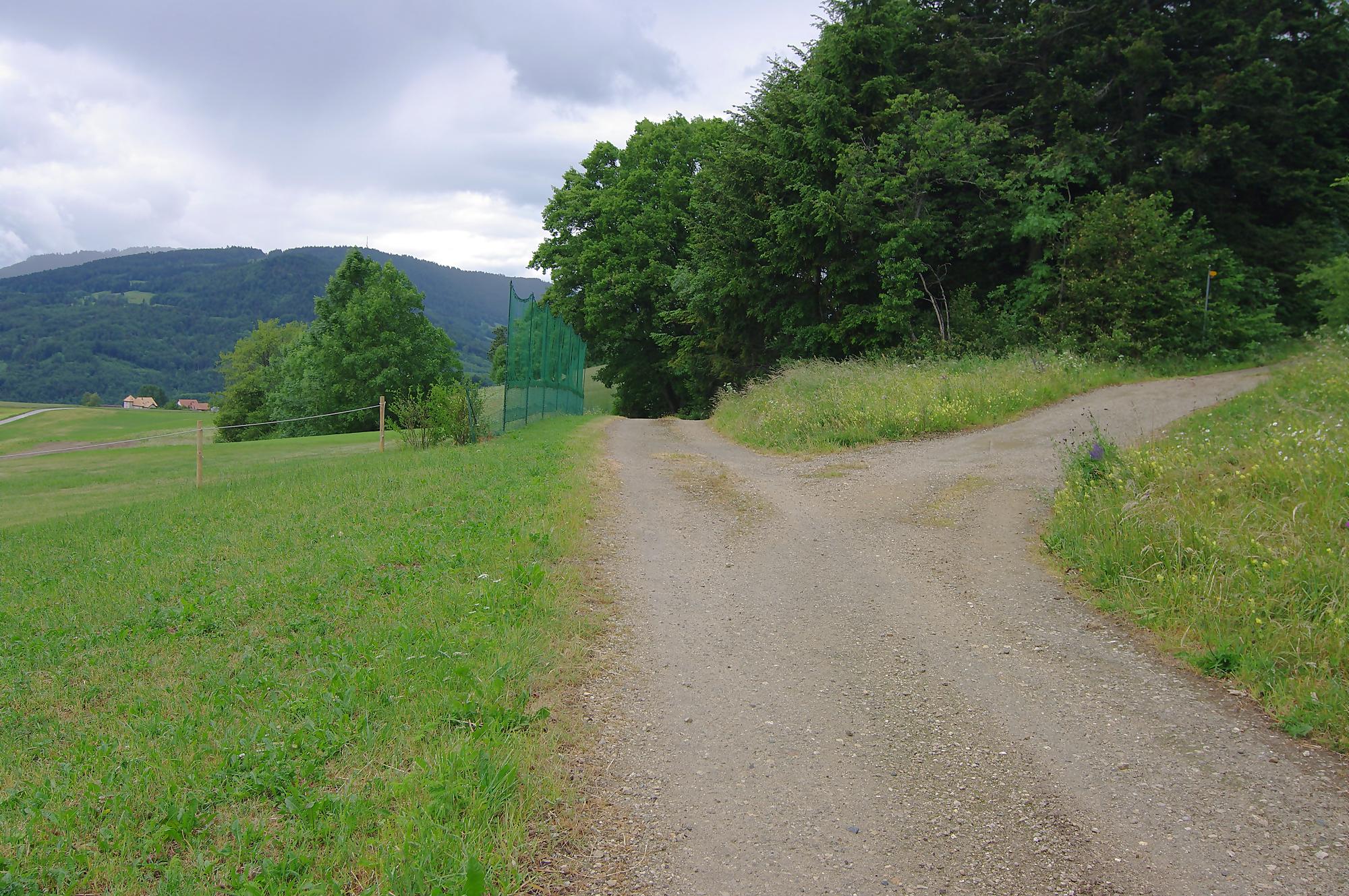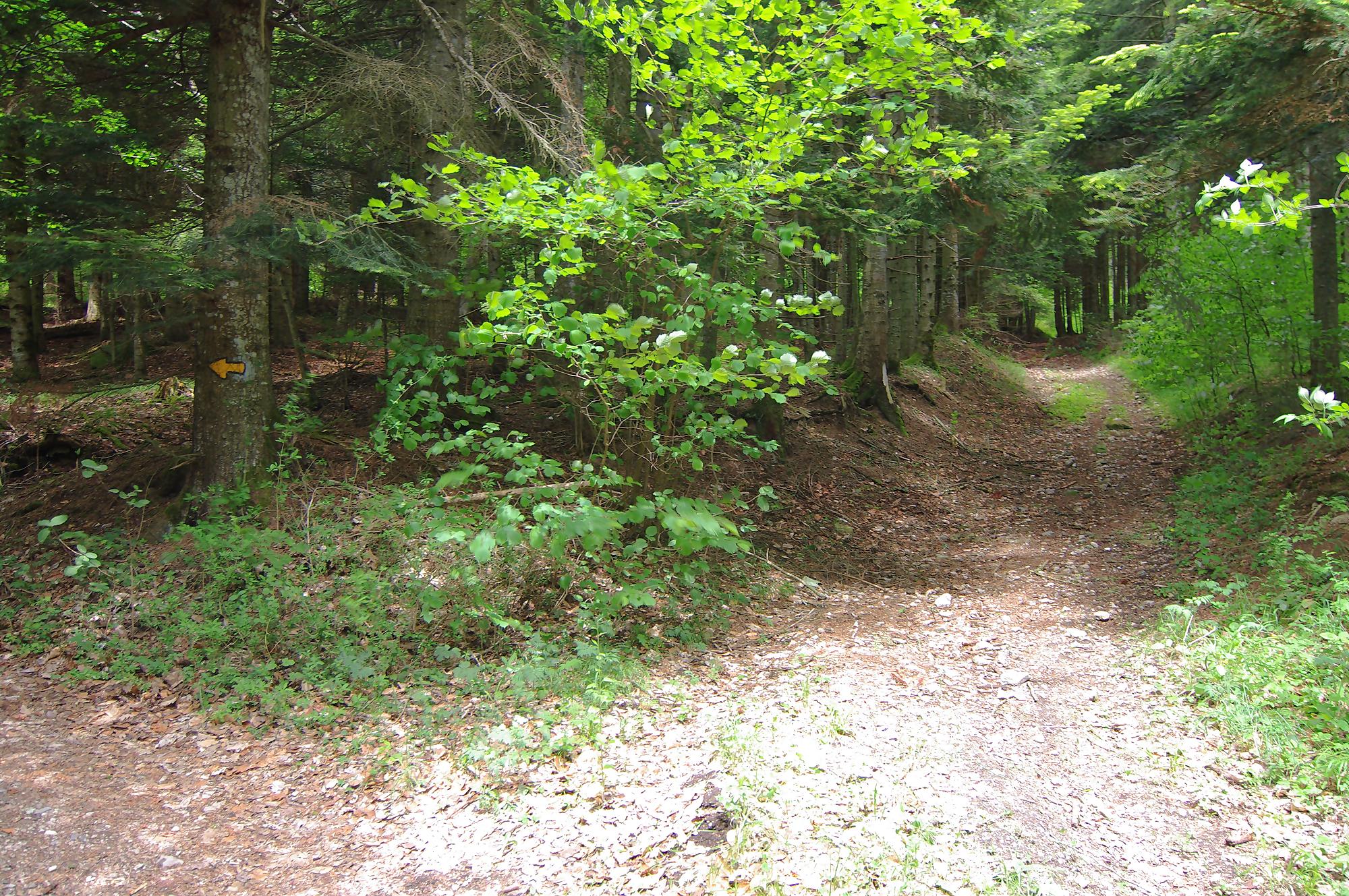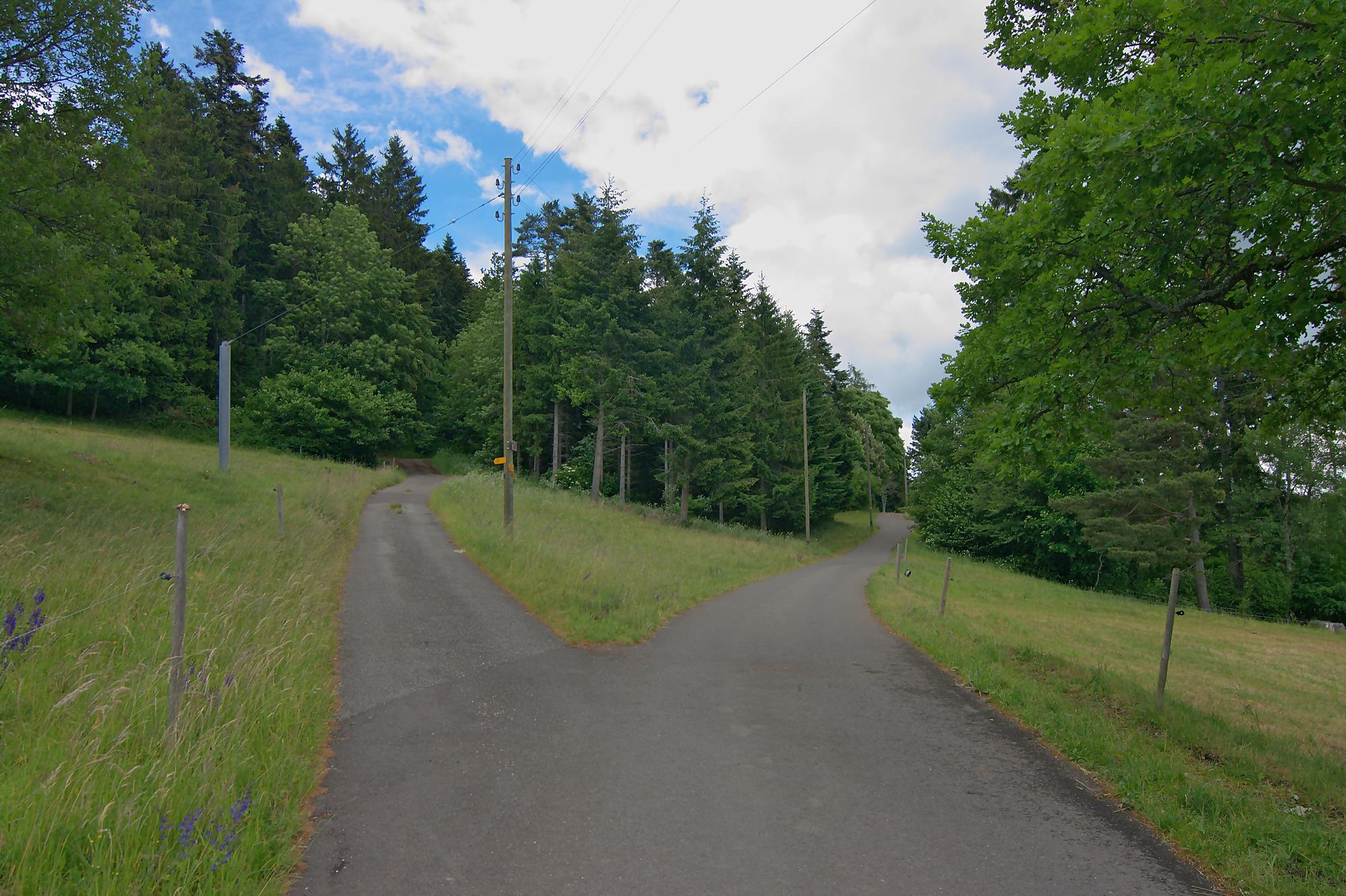 En sortant de la forêt, on passe devant la citerne du Pt1198 et on longe la clairière vers le haut. Le chemin se perd vers le haut et la pluie s’invite, je m’abrite donc sous les arbres le temps de laisser passer cette ondée. Cette dernière finie, je bifurque à gauche, longe la route et découvre que le chemin pédèstre continuait encore un peu dans le champ. J’arrive à la citerne du Pt1278 et suit le sentier qui monte vers La Poyette (1331m). Le sentier monte régulièrement, mais doucement, et traverse la forêt pour rejoindre la ferme de La Poyette (1331m). Ce lieu est chargé d’histoire car des toblerones en bêton, nous rappelent la défense imaginée pour la WW II (seconde guerre mondiale).
