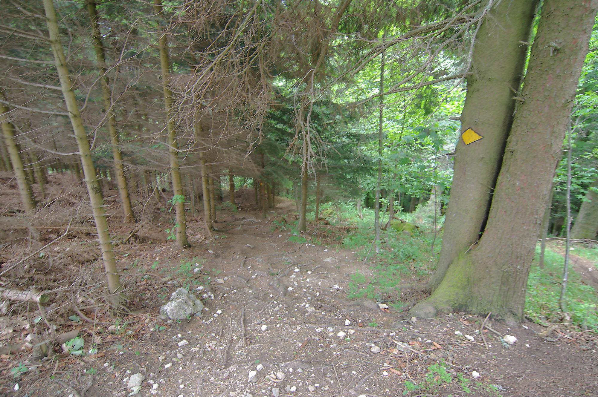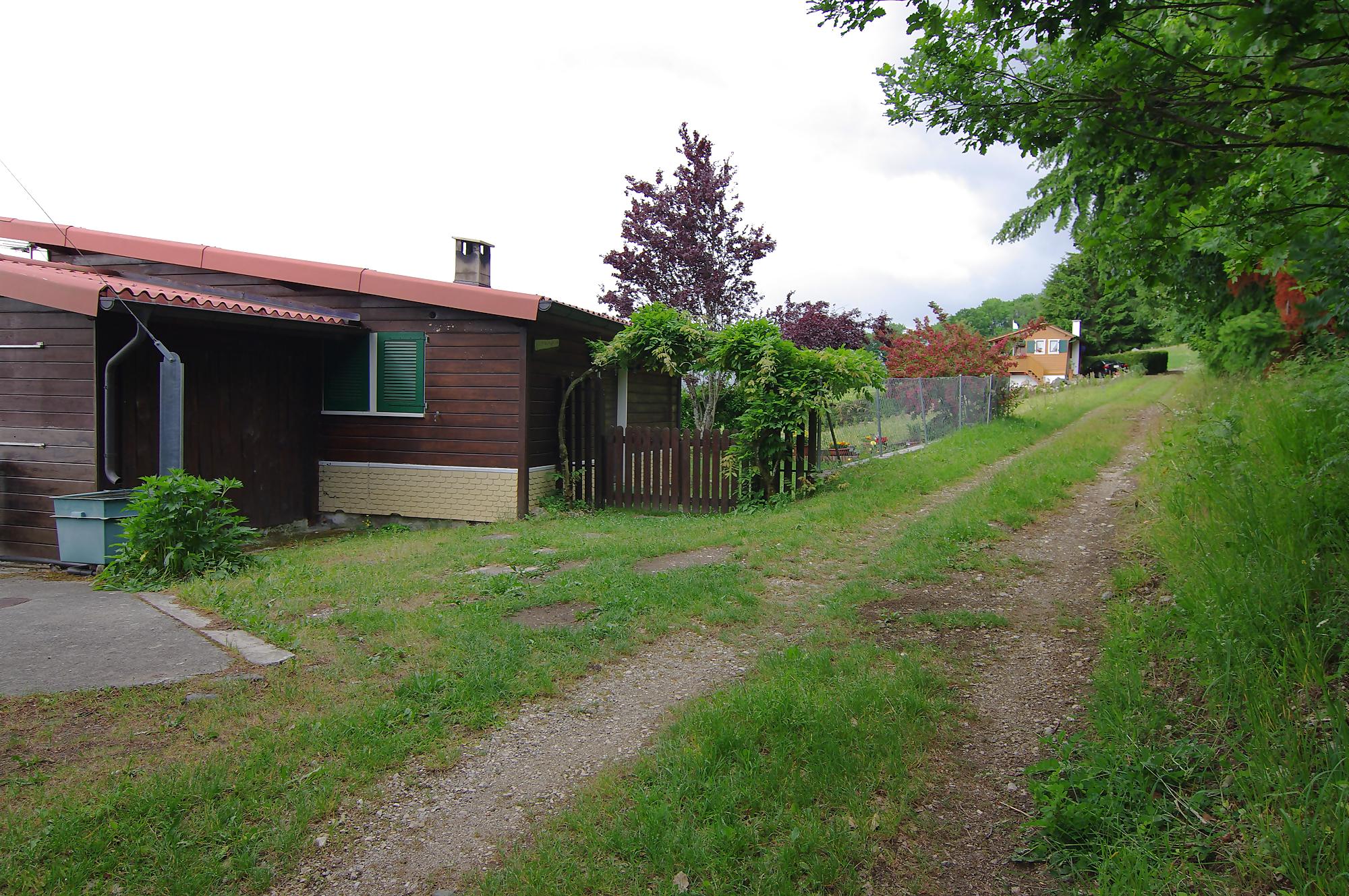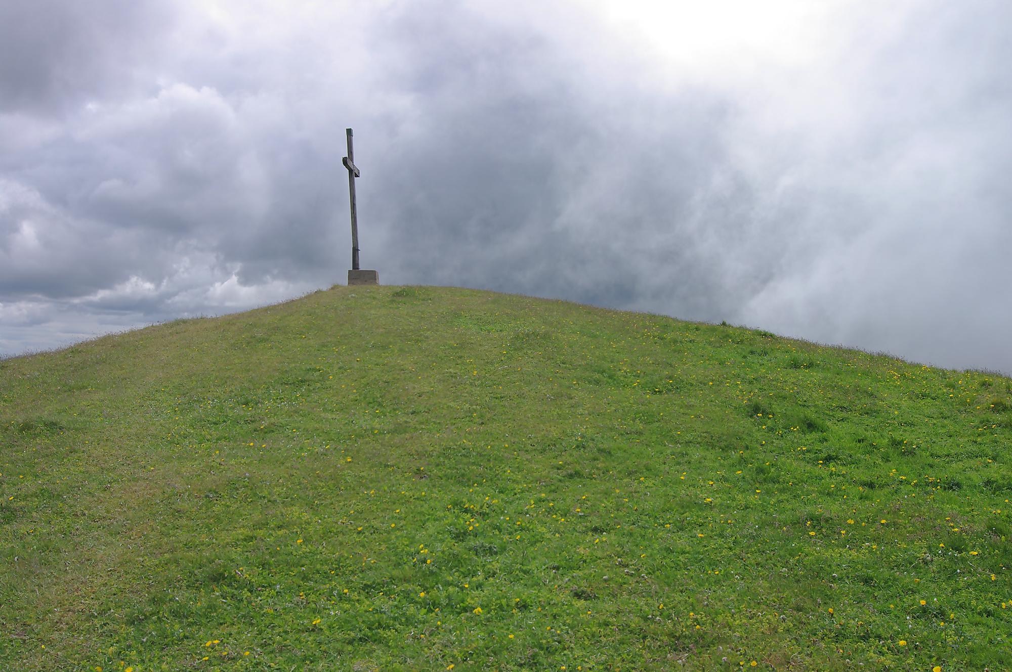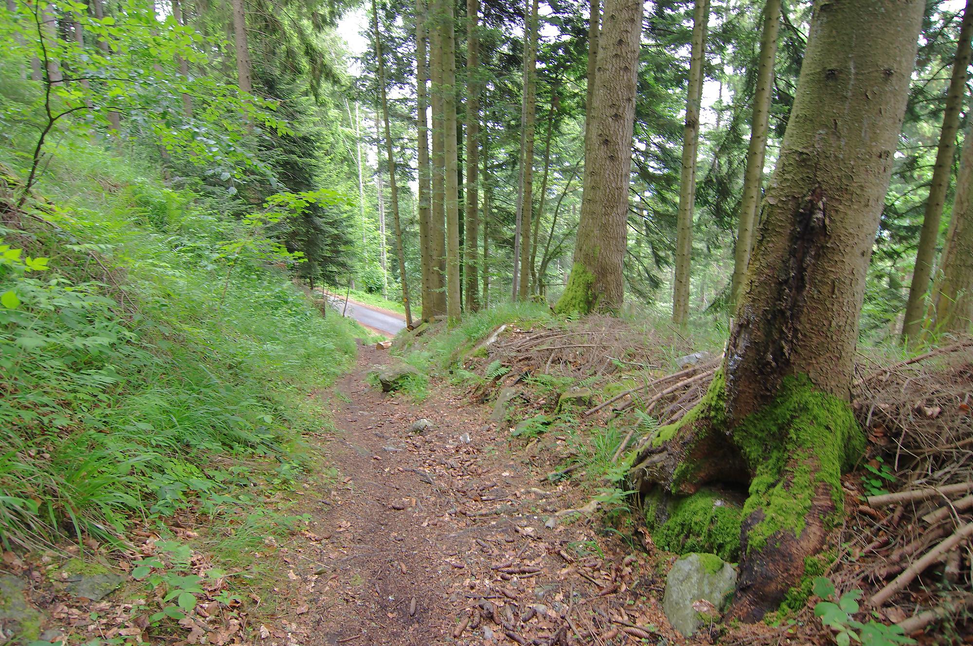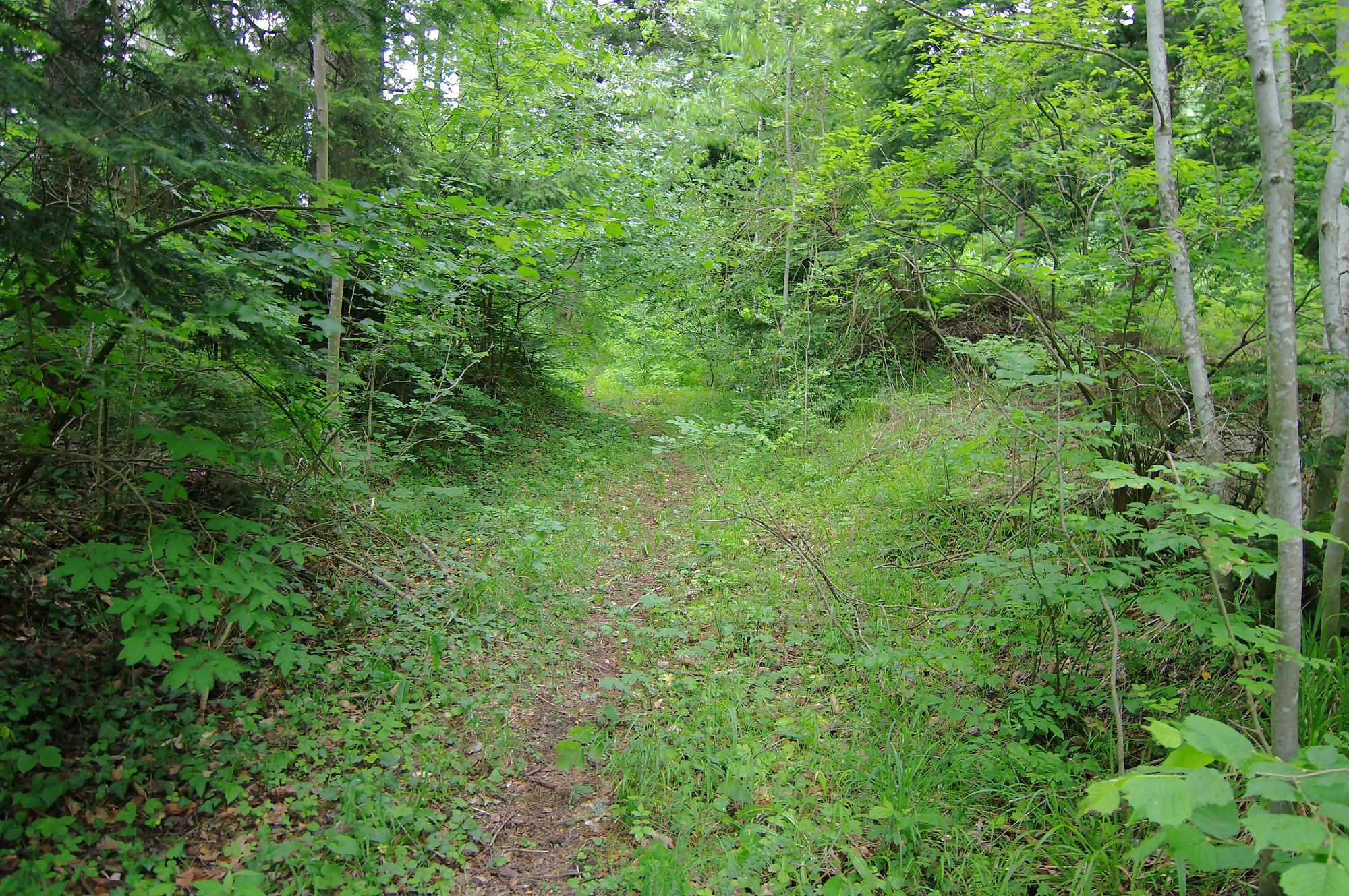 En sortant de la forêt, on passe devant la citerne du Pt1198 et on longe la clairière vers le haut. Le chemin se perd vers le haut et la pluie s’invite, je m’abrite donc sous les arbres le temps de laisser passer cette ondée. Cette dernière finie, je bifurque à gauche, longe la route et découvre que le chemin pédèstre continuait encore un peu dans le champ. J’arrive à la citerne du Pt1278 et suit le sentier qui monte vers La Poyette (1331m). Le sentier monte régulièrement, mais doucement, et traverse la forêt pour rejoindre la ferme de La Poyette (1331m). Ce lieu est chargé d’histoire car des toblerones en bêton, nous rappelent la défense imaginée pour la WW II (seconde guerre mondiale).