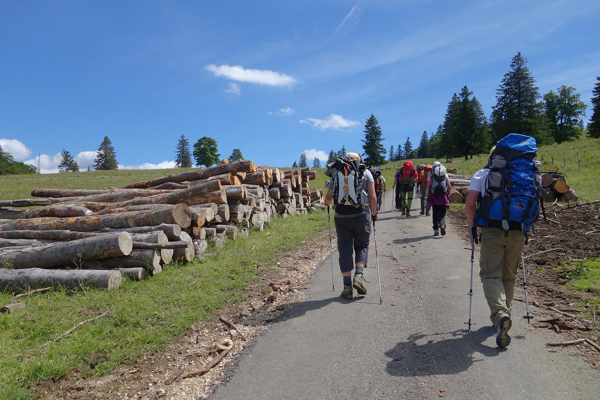 Nous nous enfonçons dans la forêt, pour traverser la Combe Grède, réservée au lendemain. Un chemin en forêt, assez pentu, nous permet de rejoindre les Limes du Bas. La suite est sur la route, en pente régulière au début puis doux après les Limes du Haut.