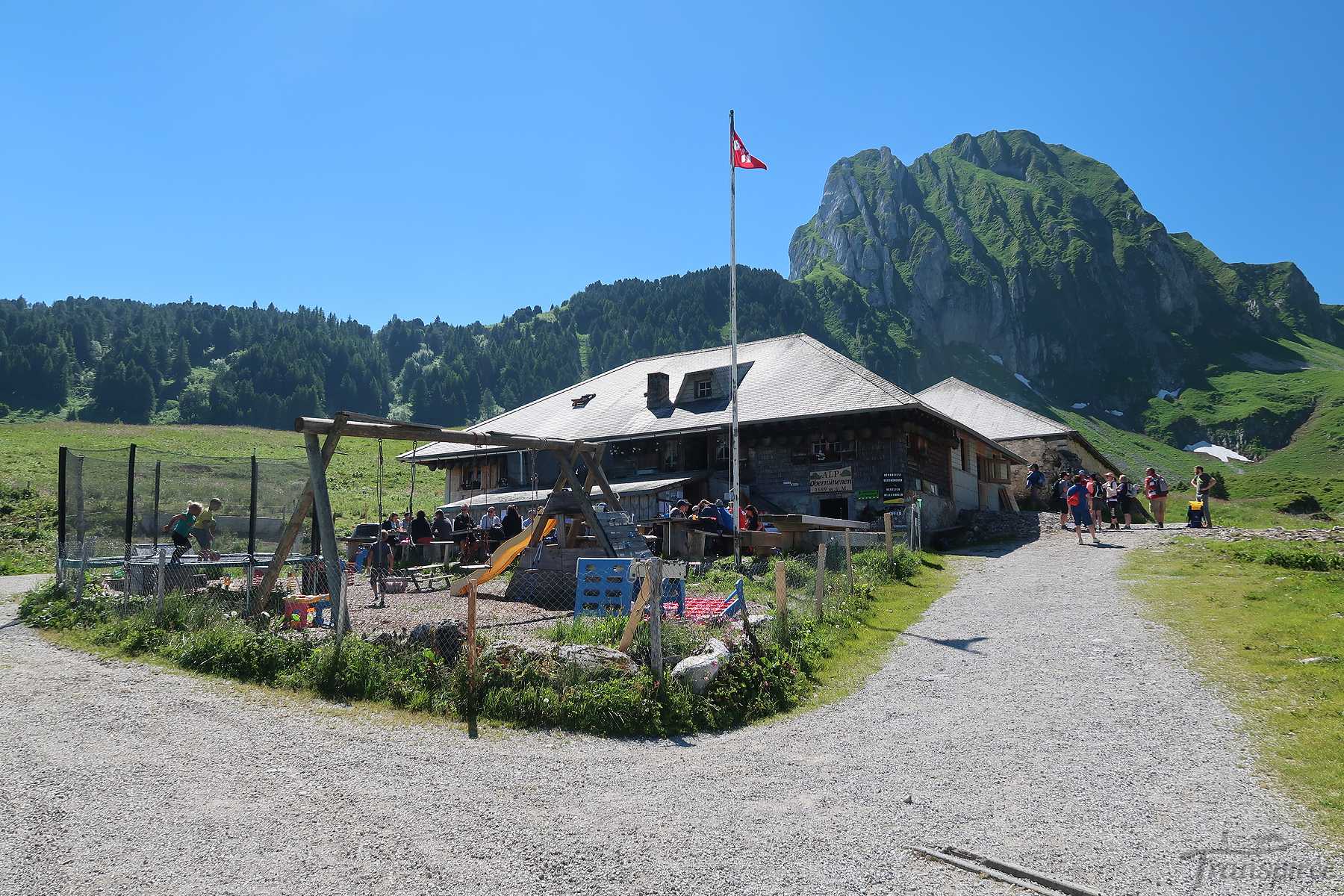 Nous poursuivons par une route de 4×4 agréable pour filer en direction du pâturage de la cabane Obernünene, encadré par les sommets Nüneneflue et Gantrisch. Superbe. Une petite gouille puis nous arrivons à la cabane d’Obernünene. Pour beaucoup c’est le terminus, la terrasse offre des jeux pour les enfants, une vue superbe et sûrement des mets roboratifs.