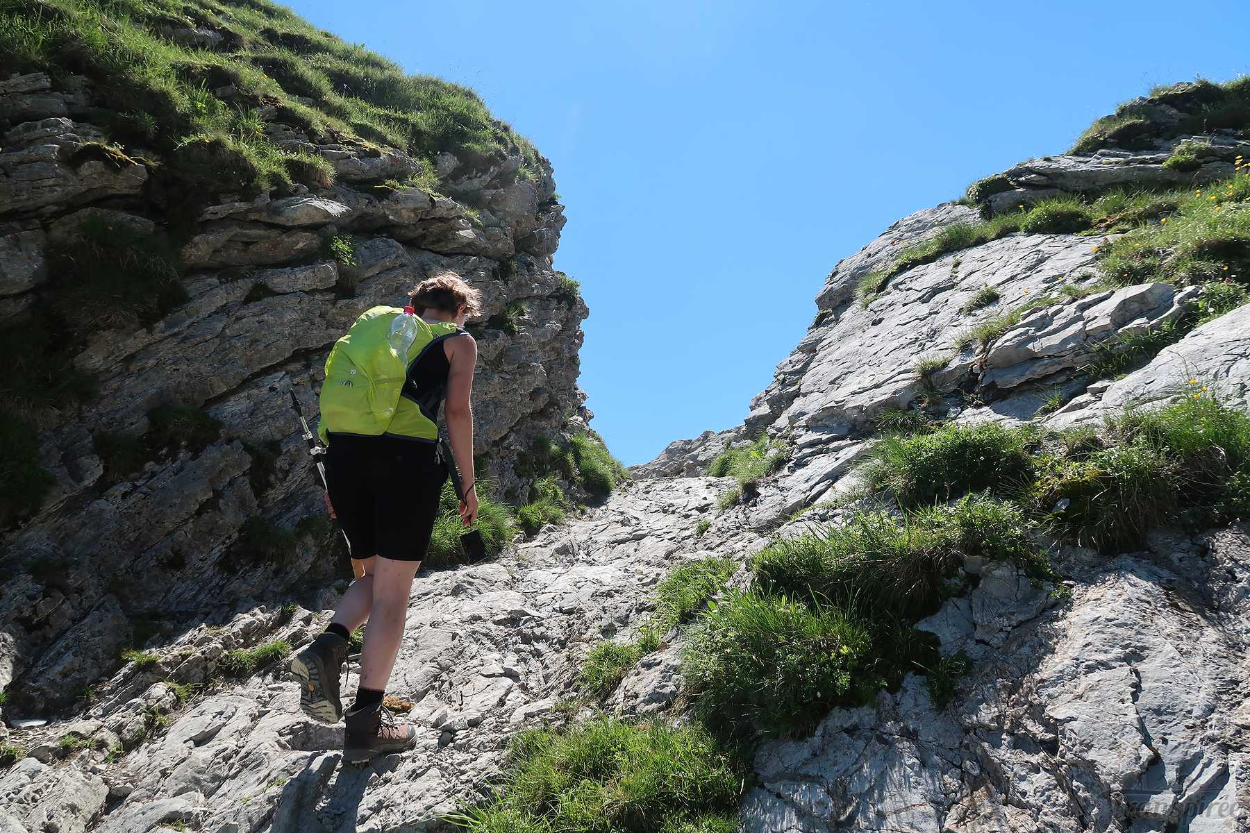 Le sentier se fait un peu plus pentu et par un final de toute beauté (genre entaille profonde dans la roche), nous débouchons au col du Leitterpass.