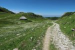 Il est possible de descendre plein N, parmi des blockhaus. Le chemin semble raide et poussiéreux. En solo, j’y descendrai volontiers, en groupe on pense aux autres. Donc retour au col de Morgetepass, amis en variant le parcours. Sous le sommet du Bürgle le chemin n’est pas visible, on le retrouve plus bas. Jolie descente pour retrouver le chemin de la montée. Au Morgetepass, on retrouve le stand. La fermière n’est plus là, mais a laissé une glacière et la caisse pour payer. L’occasion de s’approvisionner en produit ultra locaux !