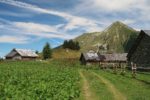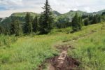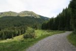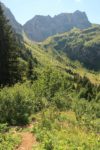 Je ne fais pas le tour entier du lac des Plagnes, coupant à travers champ par une courte section raide. Je retrouve la route d’alpage pour les chalets de Lens. C’est tranquille avec un peu de monde et quelques voitures qui montent. La vue s’ouvre parmi les trouées sur le Mont de Grange. Superbe. La route est tranquille avec bien des épilobes à feuilles étroites. J’arrive dans le bas des chalets de Lens et toujours par la route arrive aux chalets de Lens du haut. Joli cadre avec cet envoûtant Mont de Grange. De là il serait possible de directement filer au refuge des Tinderets, mais je poursuis.