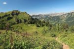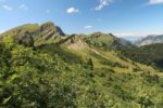 Il existe un sentier, mais je poursuis par la route que je trouve bien agréable. J’arrive à un col, Pt1663. La vue s’ouvre sur le domaine skiable des Portes du Soleil des Lindarets. Joli cadre.