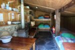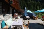 Je rejoins les chalets du refuge des Tinderets. Les dortoirs sont ouverts et j’en profite pour les visiter. Puis je m’installe sur la terrasse et consomme un tarte… aux myrtilles. Myrtilles sauvages, mais acheté au supermarché !