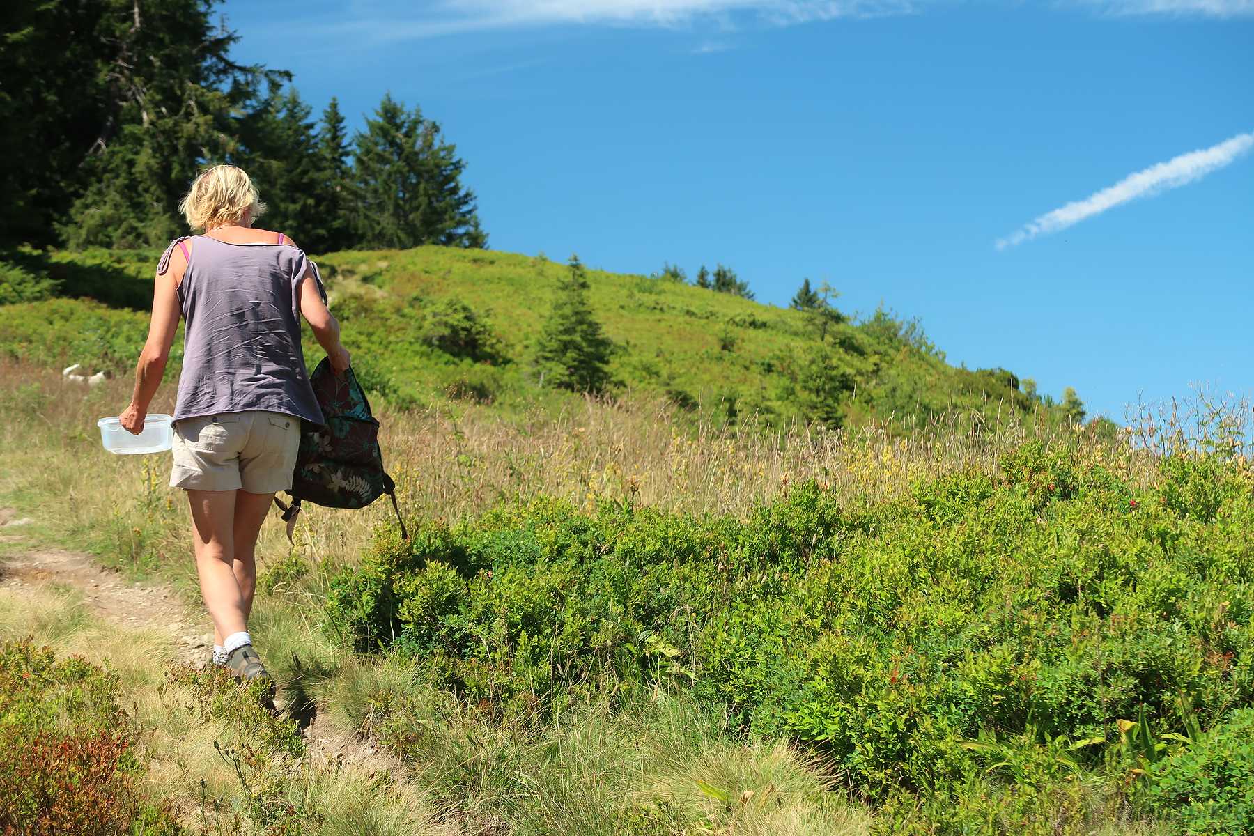 Je poursuis par le sentier nommé Arête des Fours. De l’arête il n’y en a que le nom car on est souvent en contrebas. Ce lieu est rempli de myrtilliers et bien des gens ramassent le précieux fruit avec des peignes. Je me contente de me régaler au passage.