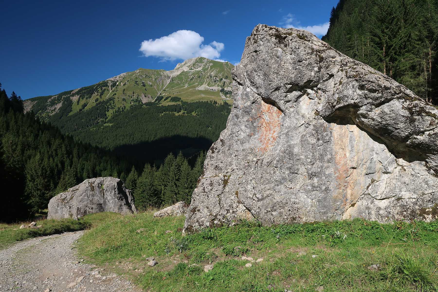 Je poursuis par un sentier agréable, tiens un secteur avec bien de la reine des prés. Après une section en forêt la vue s’ouvre sur la combe d’Ardens. Je la rejoins. C’est joli avec ses gros blocs rocheux.