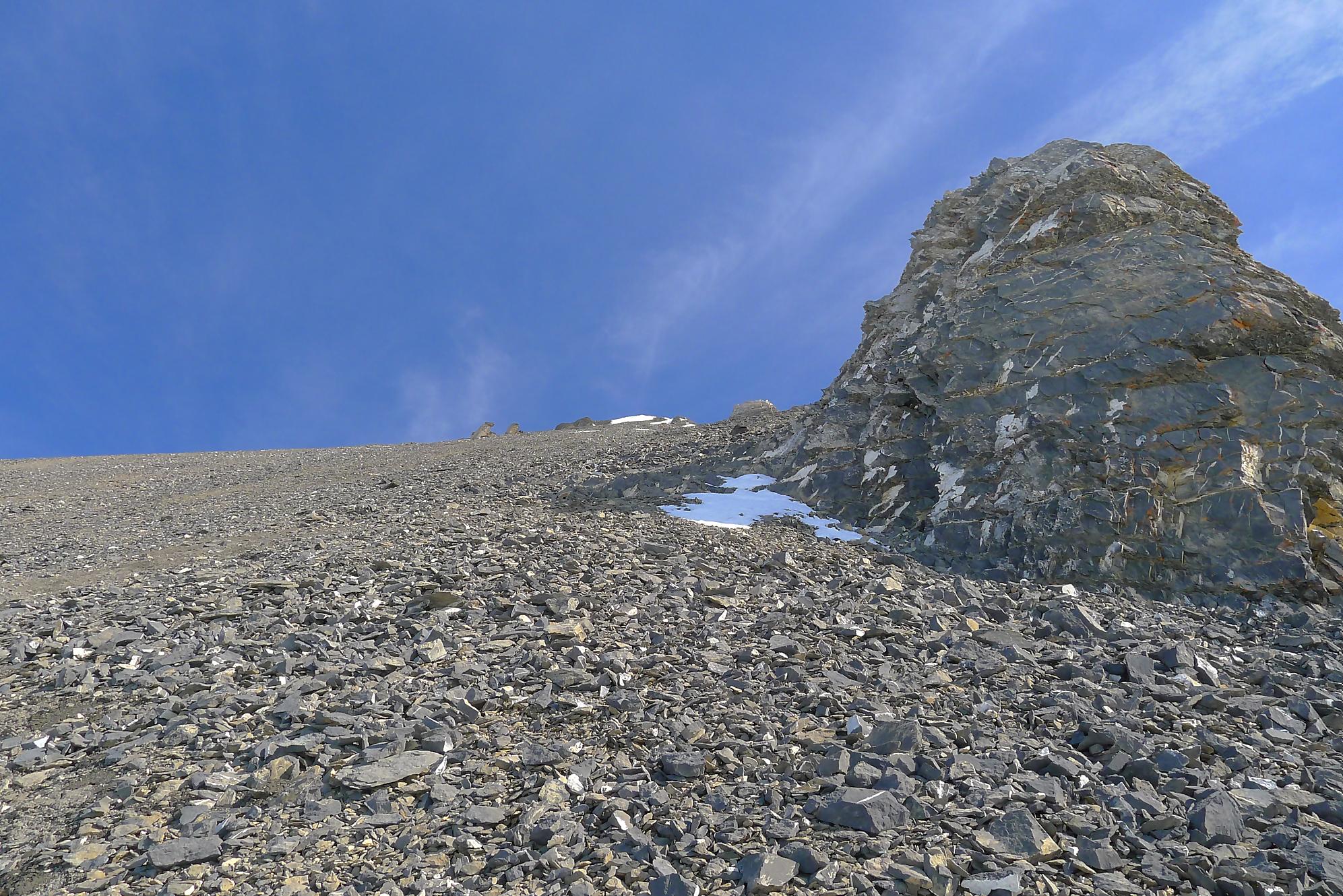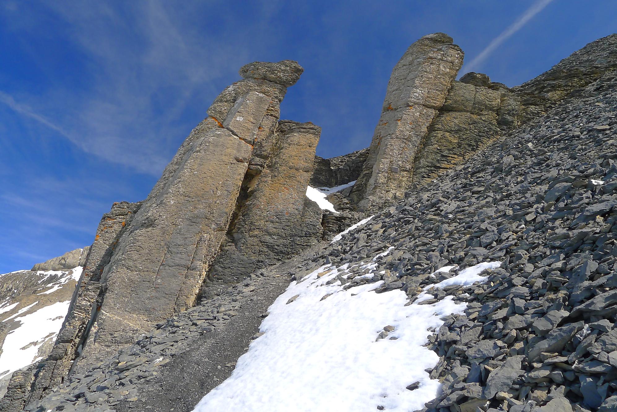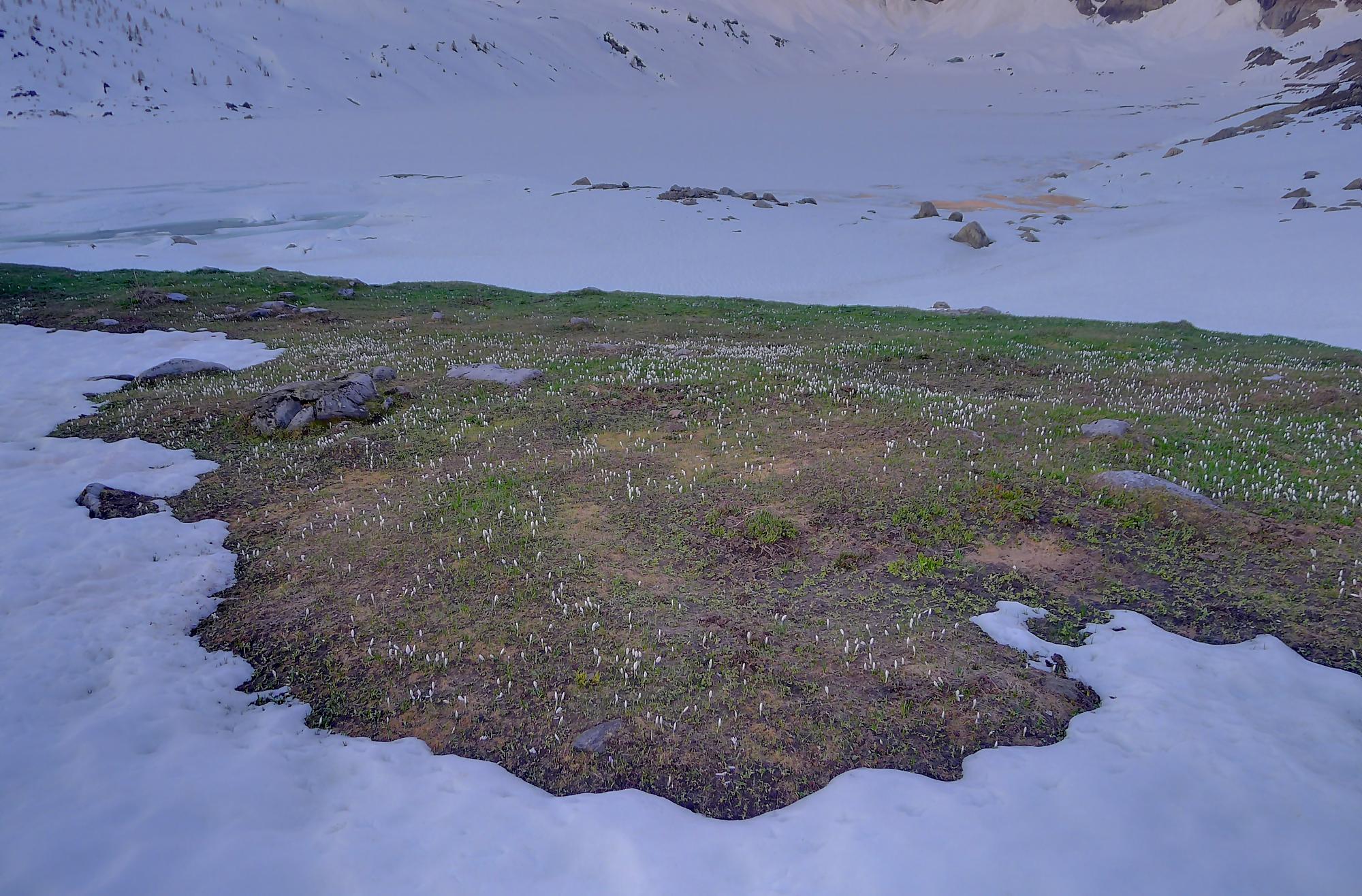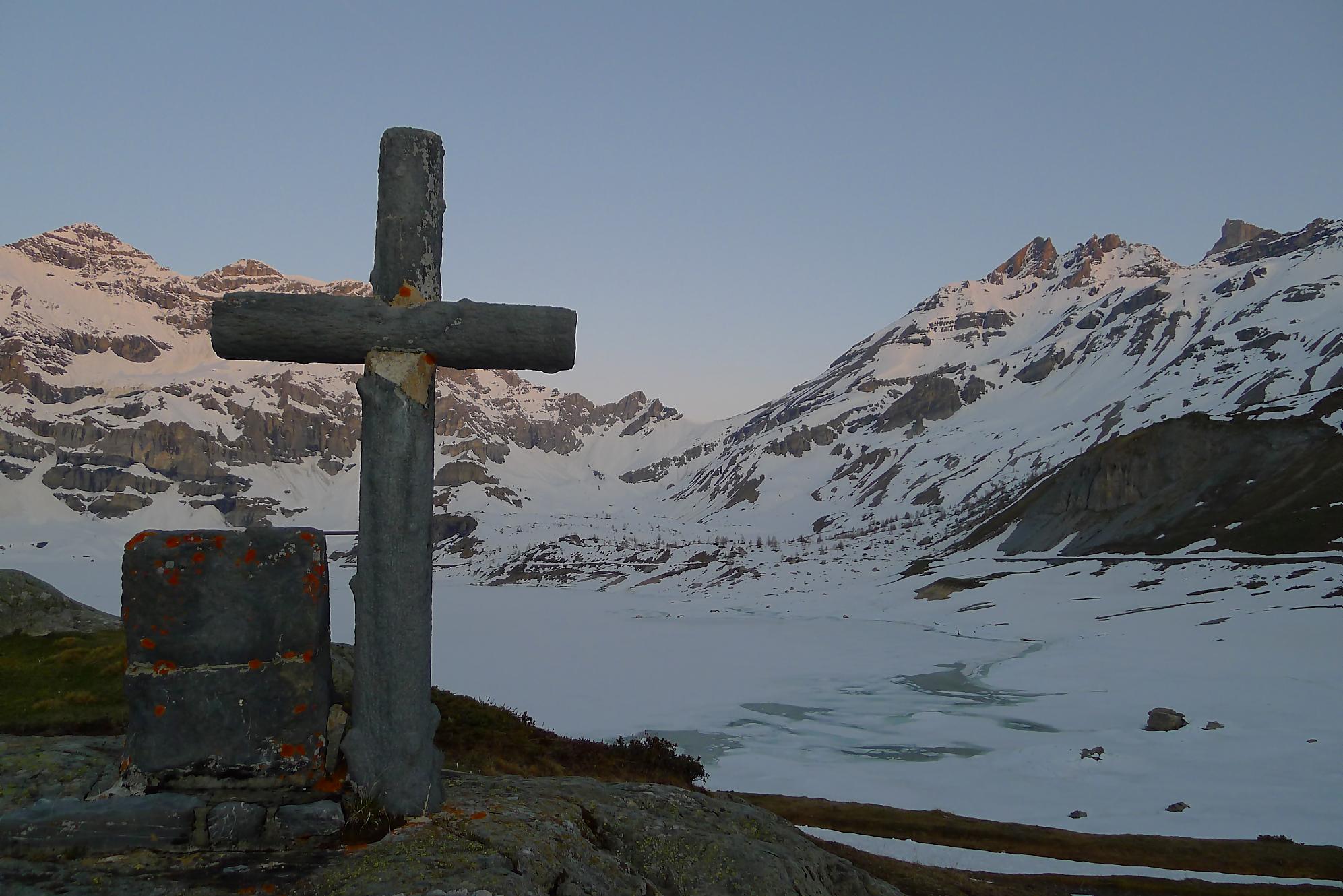 Au Col de Susanfe, j’ai la grosse surprise de voir qu’il n’y a plus (excepté quelques névés) de neige pour la suite. Je mets les skis sur le sac et file à pied via le chemin d’été. En résumé, porter les skis et marcher avec les chaussures de ski n’est pas ce que je préfère ! En milieu de parcours, une crampe a pointé le bout de son nez (forcément crochu). Je l’ai renvoyé dans ses 20m via des pastilles de magnésium, mais 1h plus tard elle revient se présenter (sans invitation d’ailleurs), mais j’avais épuisé la potion magique ! C’est elle qui m’a renvoyé dans mes 20m. Je fus quitte pour composer avec, m’accordant des répits.