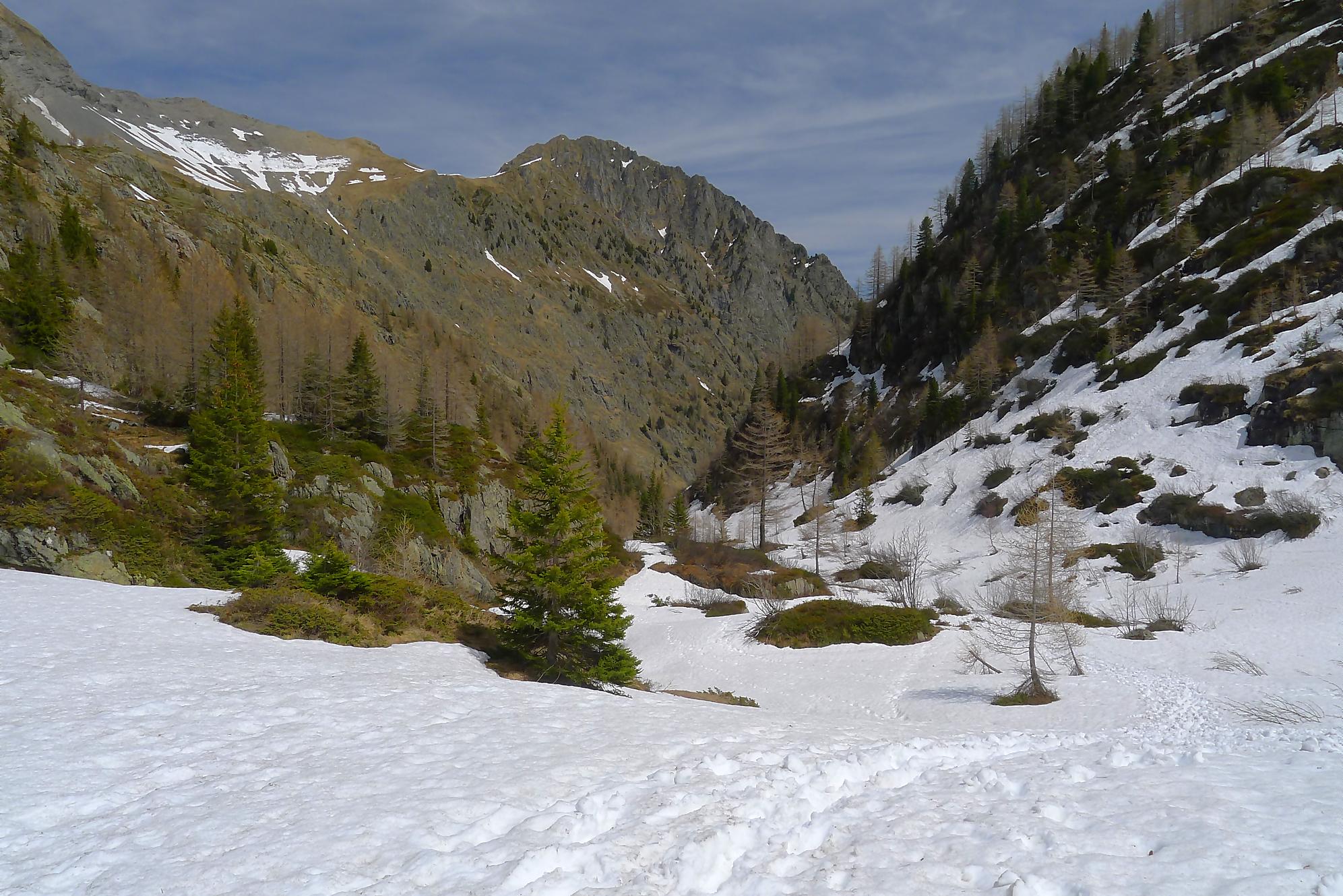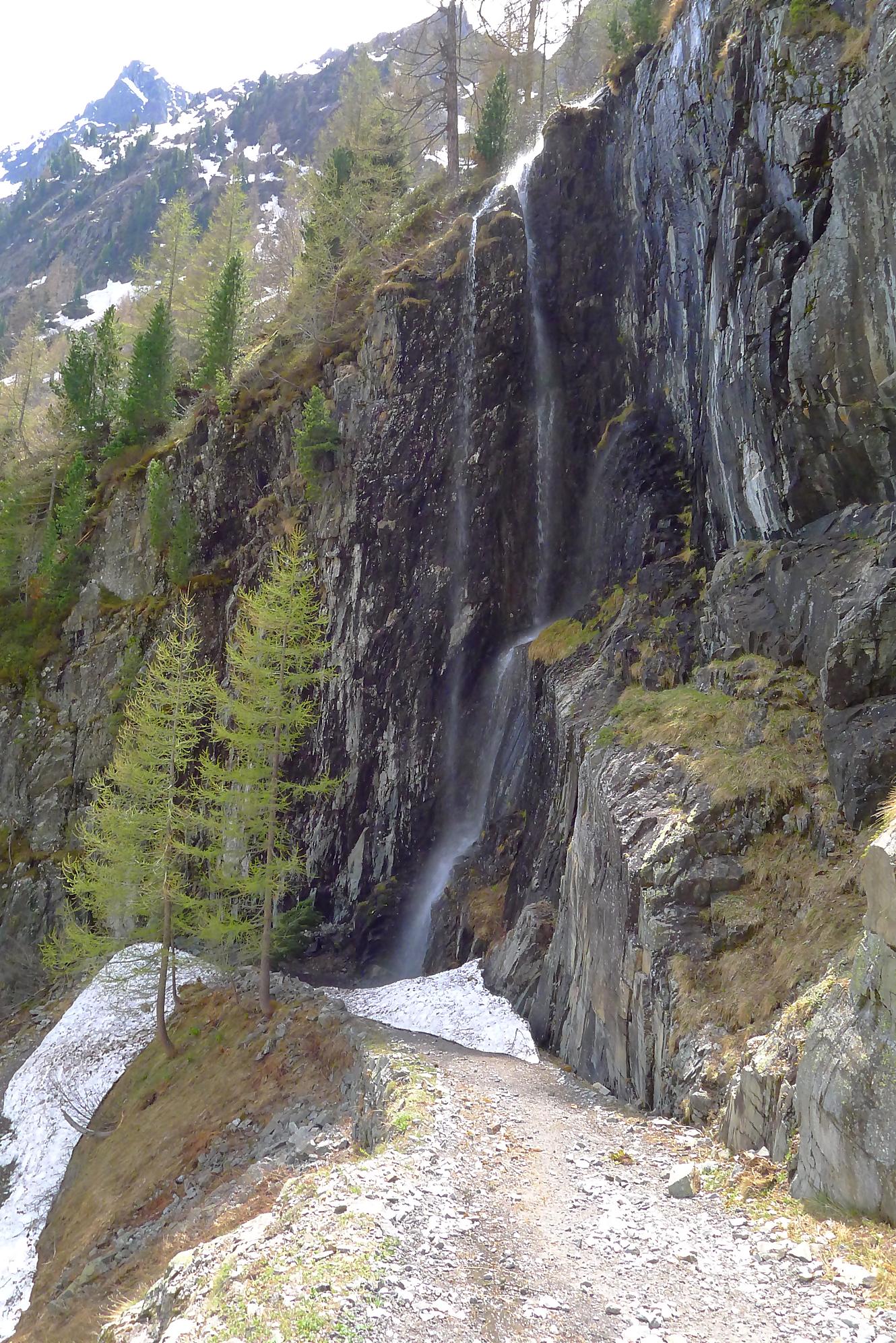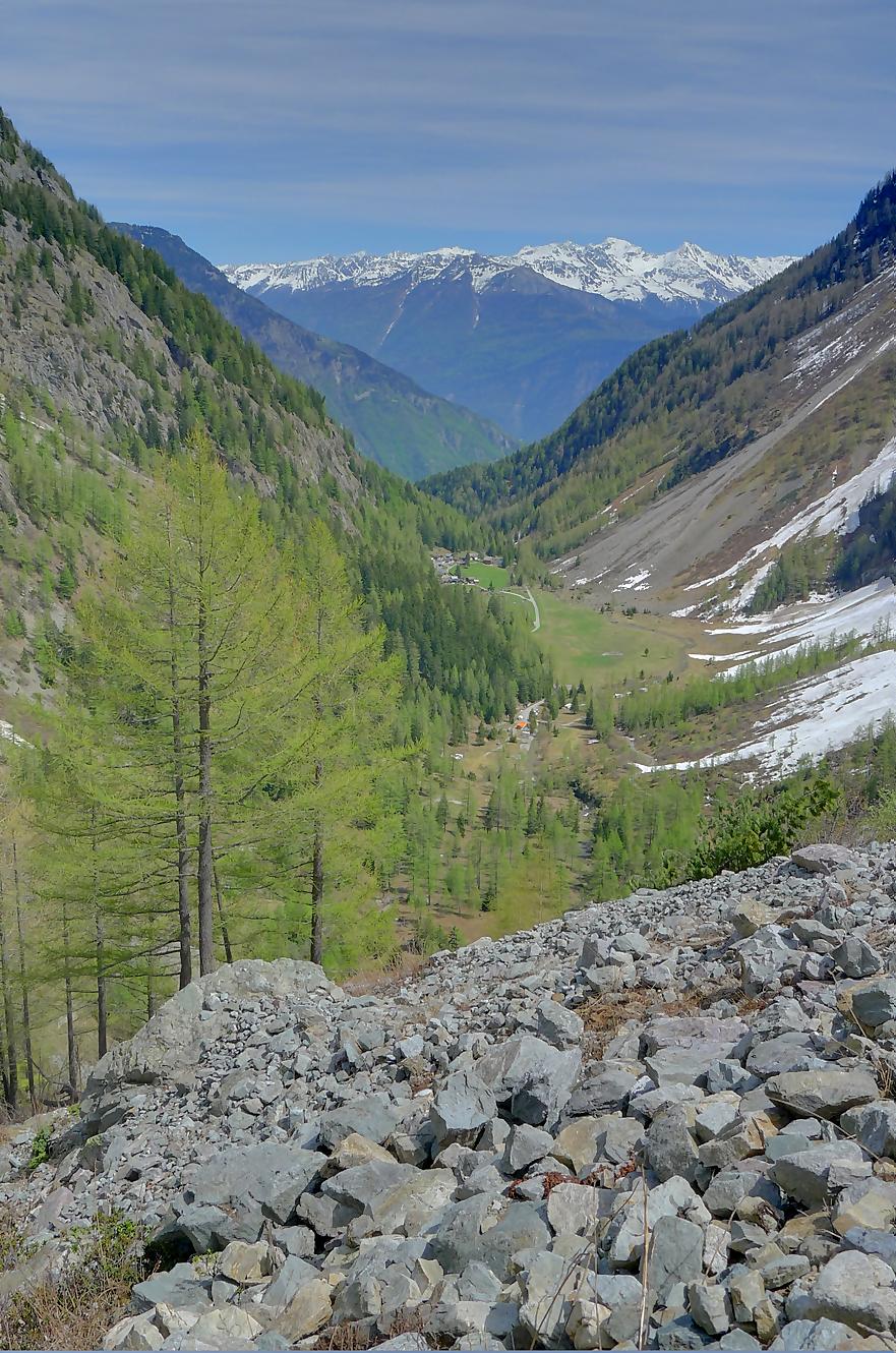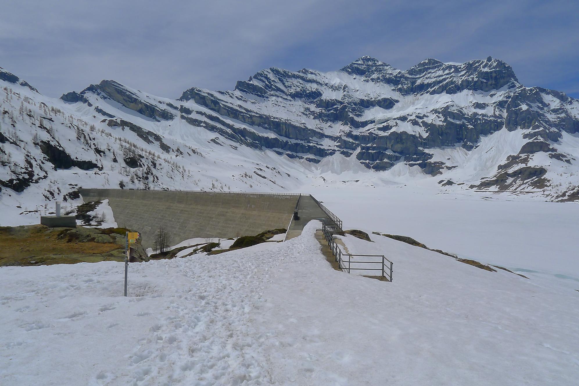 Il me restait ensuite à traverser le plateau de Plan Château, de pousser puis marcher le long du barrage de Salanfe (ce faut plat est le défaut de cette course). Je retrouve le refuge de Salanfe, récupère quelques affaires, puis me lance dans les pentes douces du vallon de La Salanfe. Au col du Pt1775, c’est la fin du ski, il faut désormais porter les skis et descendre la longue route pour Van d’en Haut (c’est quand même plus marrant quand on peut la descendre à ski !).