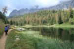 Par la suite, je sors de la forêt pour une prairie et j’atteins le lac Miroir. Le lieu est tout simplement charmant. Le lac est lové, entre forêt et montagne. Je reste un bon moment ici, pour profiter des lieux et notamment attendre un rayon de soleil. La météo est bien nuageuse aujourd’hui.