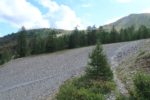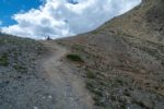 Je sors de ce secteur et débouche dans les pistes de ski. Monde minéral pour un temps. Je remonte, une voiture aussi. Ensuite la végétation revient, bien que pauvre. Quelques lacets, je croise un jeune homme qui marche pied nus, défi pour lui.