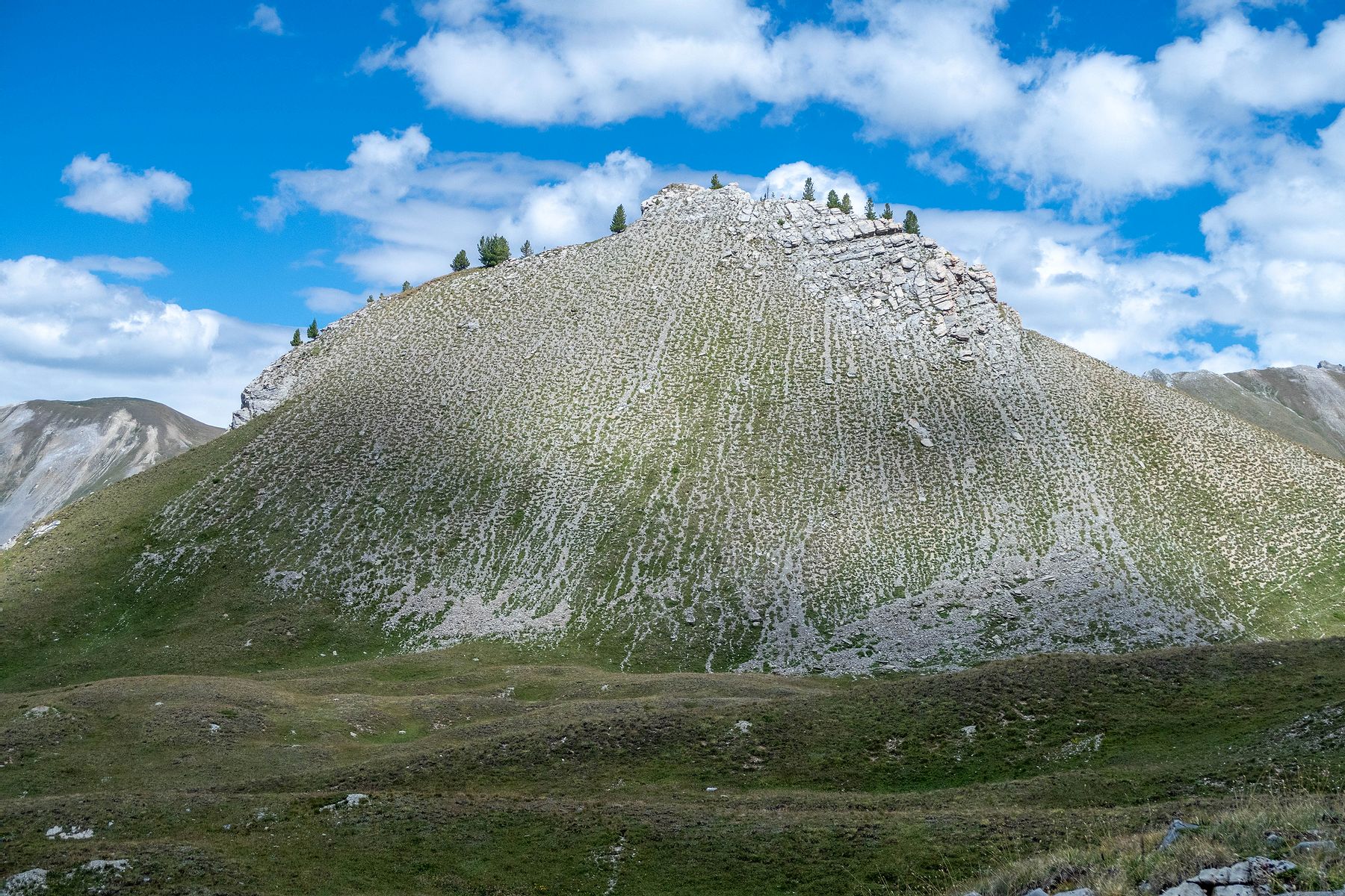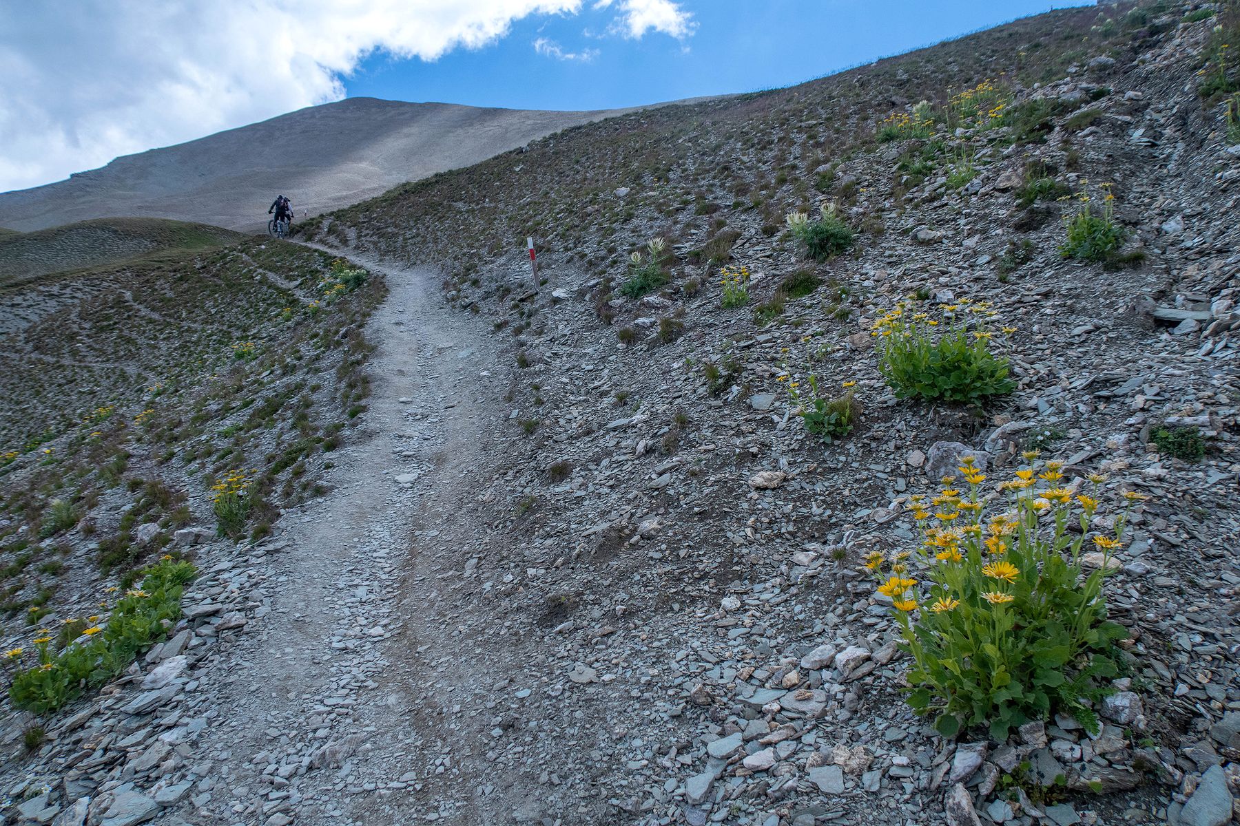 Avant le col de Giradin, il y a un raccourci sur la droite, visualisé à la montée. Il n’est pas mentionné sur la carte, mais le sentier existe bel et bien. Le bâton aide bien, un passage raide, mais courte.