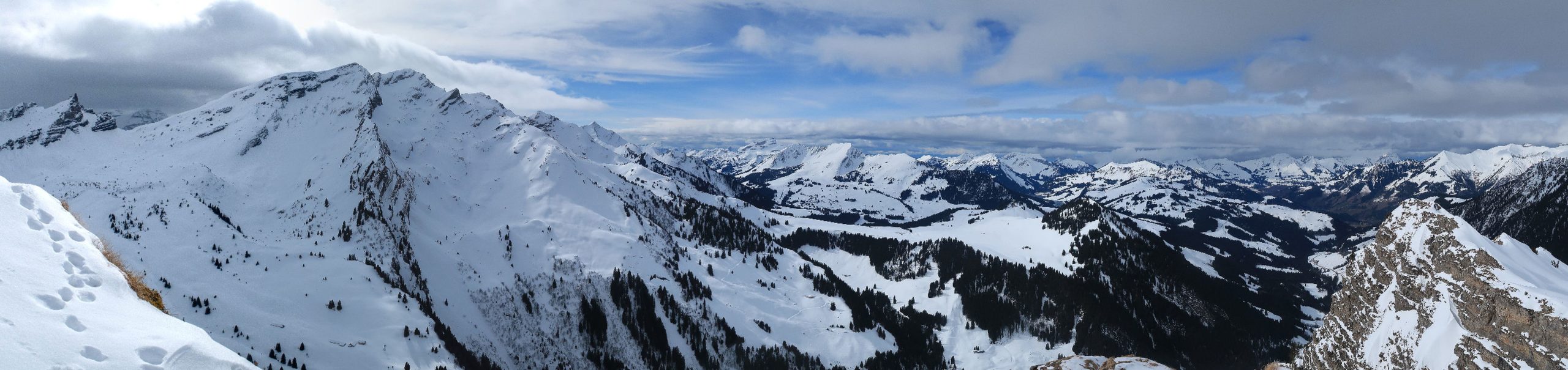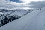 La Tête à Josué est un sommet modeste, la randonnée pas trop, mais bien variée. En cette journée, la neige lourde complique la descente, mais cela fait partie du jeu. Belle vue au sommet.