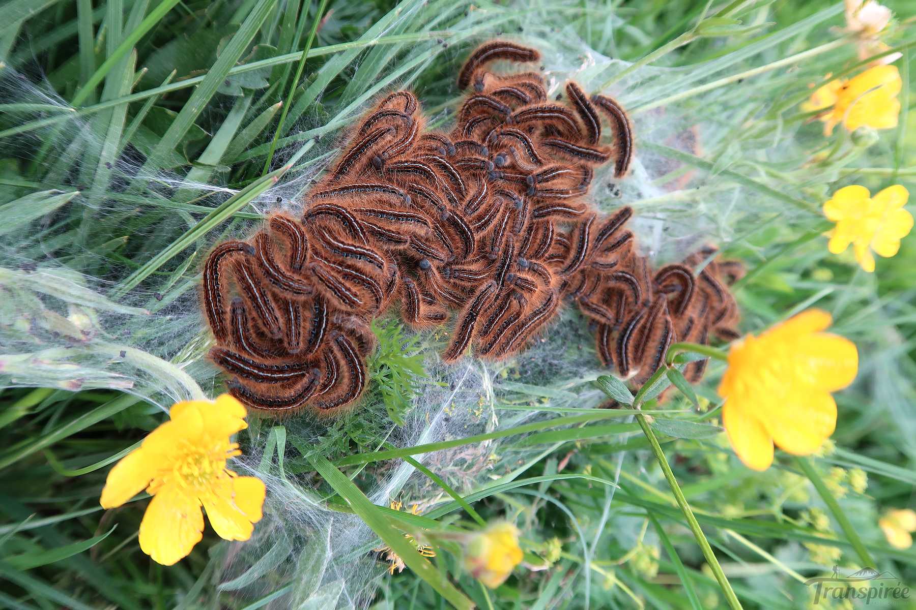 Nous descendons dans le versant E et croisons un petit névé. Le sentier est tranquille et permet de contempler quelques rhododendrons et des chenilles agglomérées (Livrées des Prés), commune en montagne. Un dernier névé et nous voilà au col du Stüblenipass. Les enfants de la ferme ont crées des petites voitures en bois et le vendent en libre service.
