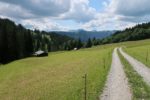 La route monte un peu et nous arrivons à Gschwend. Il y a un monte charge (non mentionné sur la carte, à ce jour). On continue tout droit et non il faut faire demi-tour et rentrer dans un champ (aucun panneau ne l’indique). Un sentier nous fait arriver devant deux fermes. Là, il faut les contourner et filer sur la gauche pour retrouver un sentier qui s’enfonce en forêt.