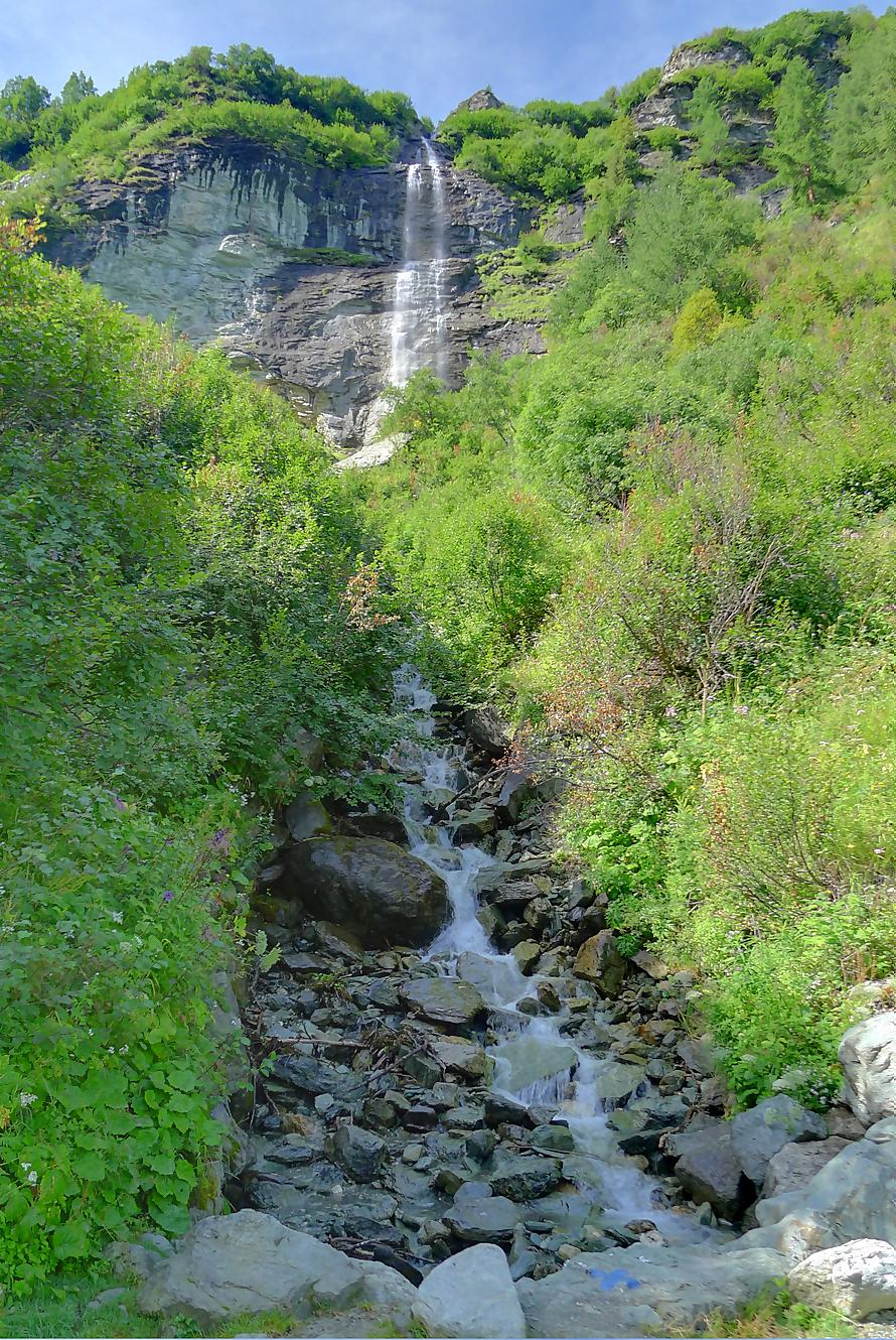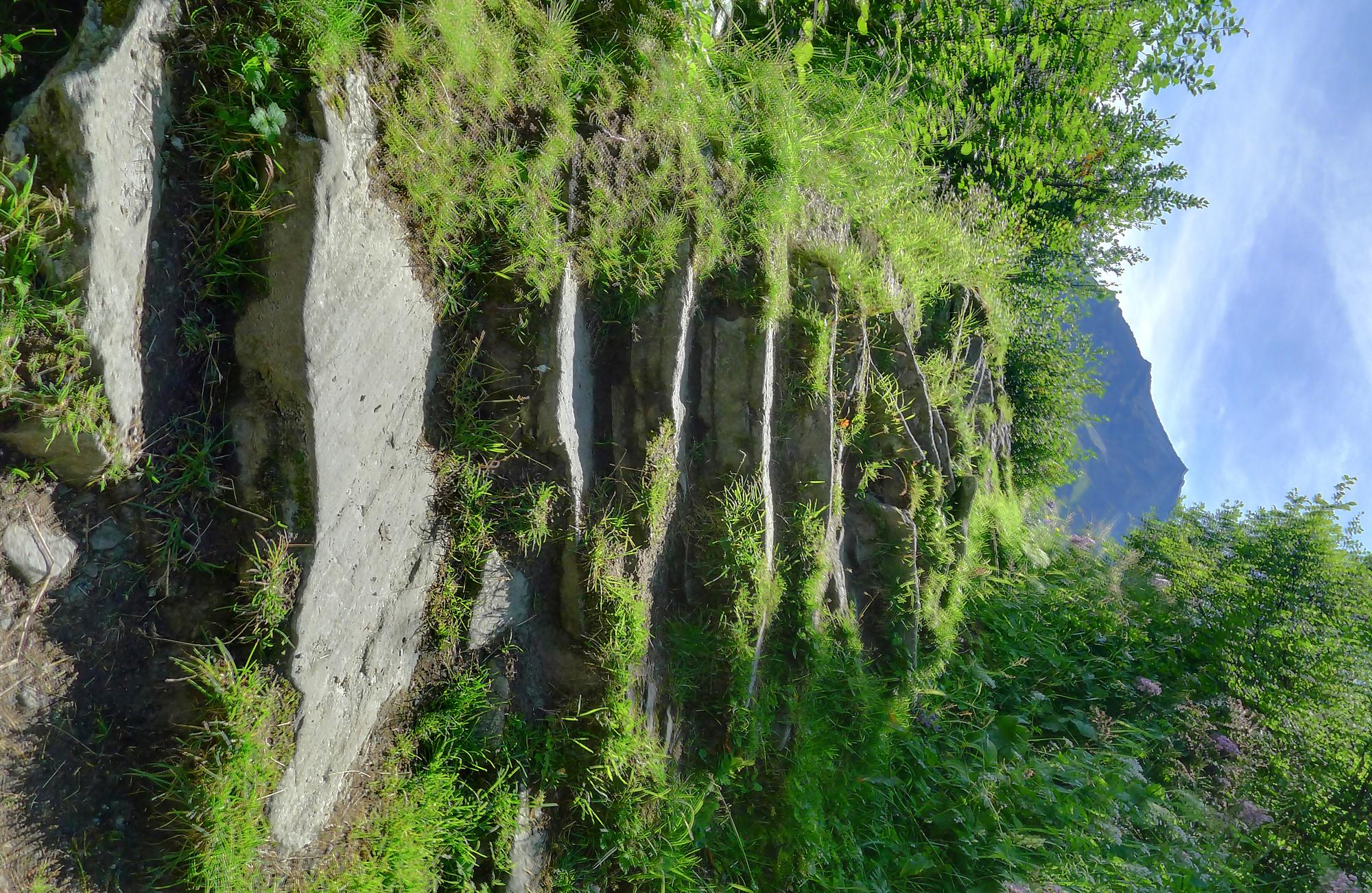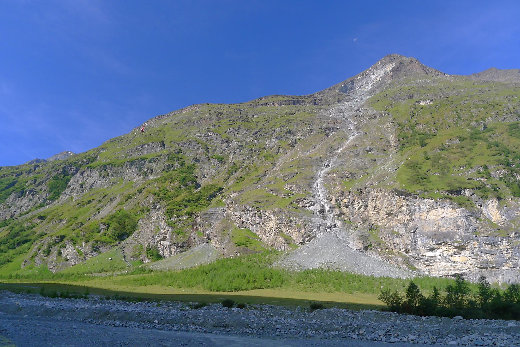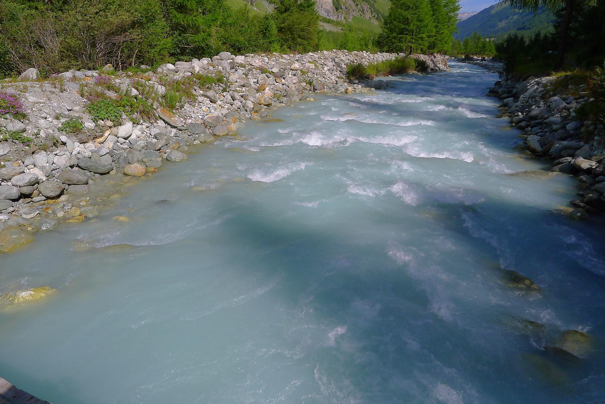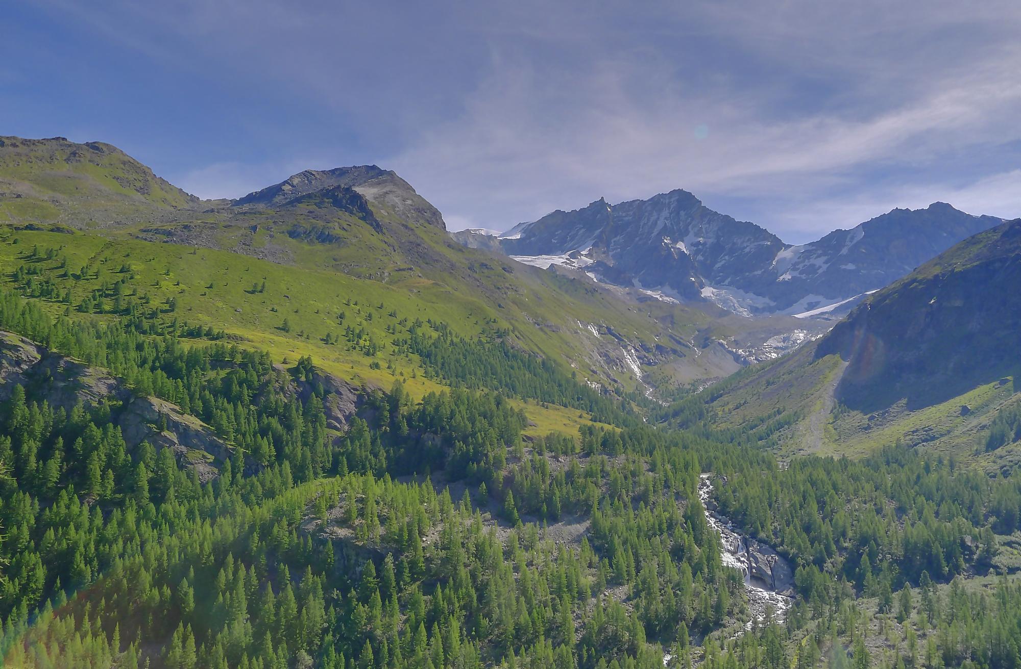 Je me gare après Zinal, Barme sur la carte, juste devant le panneau interdiction de circuler. Je déconseille d’aller après, car lors de mon arrivée un policier en voiture venait distribuer des prunes à 40, non pas degrés d’alcool comme le propose les distilleries locales, mais en CHF (je ne connais pas le tarif exact) ! Je pars à 10h et longe la rivière La Navisence dont la couleur de l’eau “lait de glacier” est bien jolie, section de mise en jambe. Au pont du Pt1731, on change de rive, il faut monter à droite (perpendiculaire à la rivière) sur 100m (aucune indication et le chemin se perd ici) pour retrouver le chemin de la cabane du Petit Mountet. C’est une route forestière, qu’il est possible de suivre jusqu’à cette cabane, mais vu les détours qu’elle fait, je conseille plutôt la version chemin pédestre (il y a deux possibilités, j’y viens).