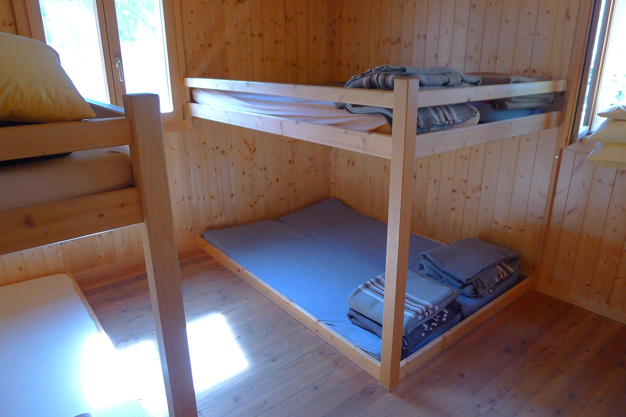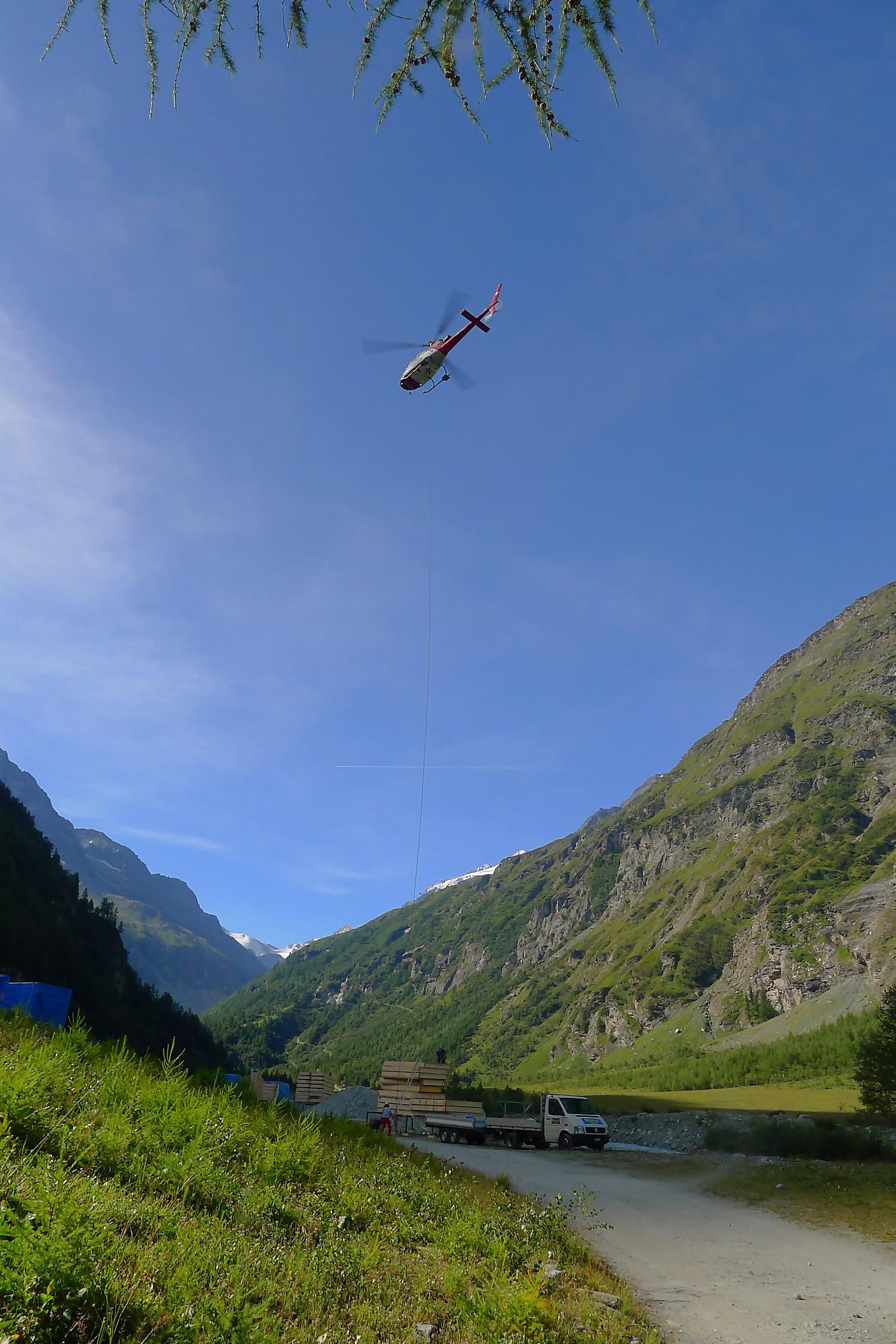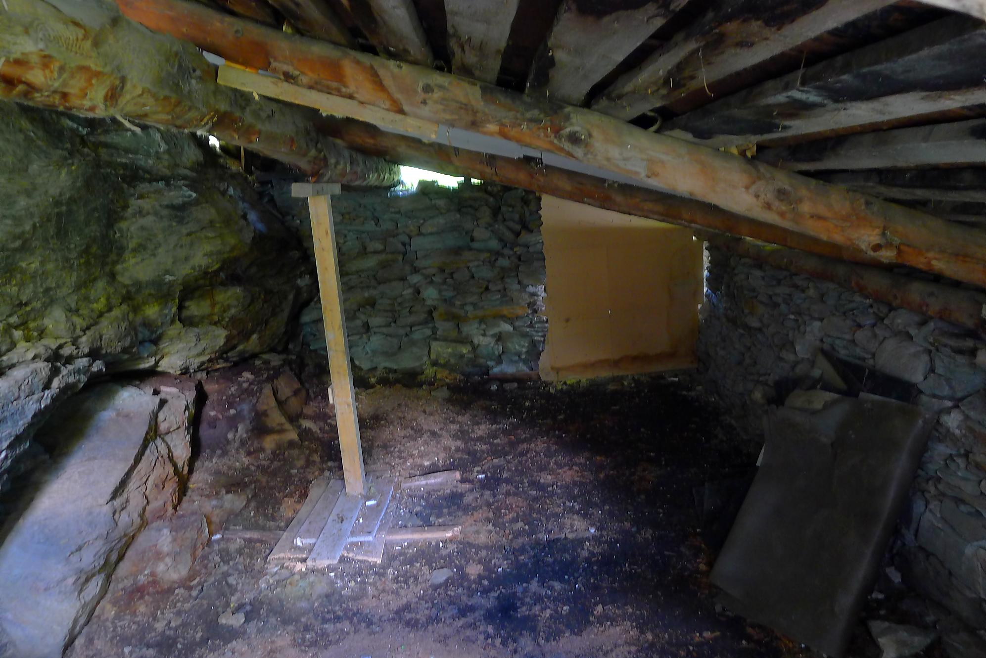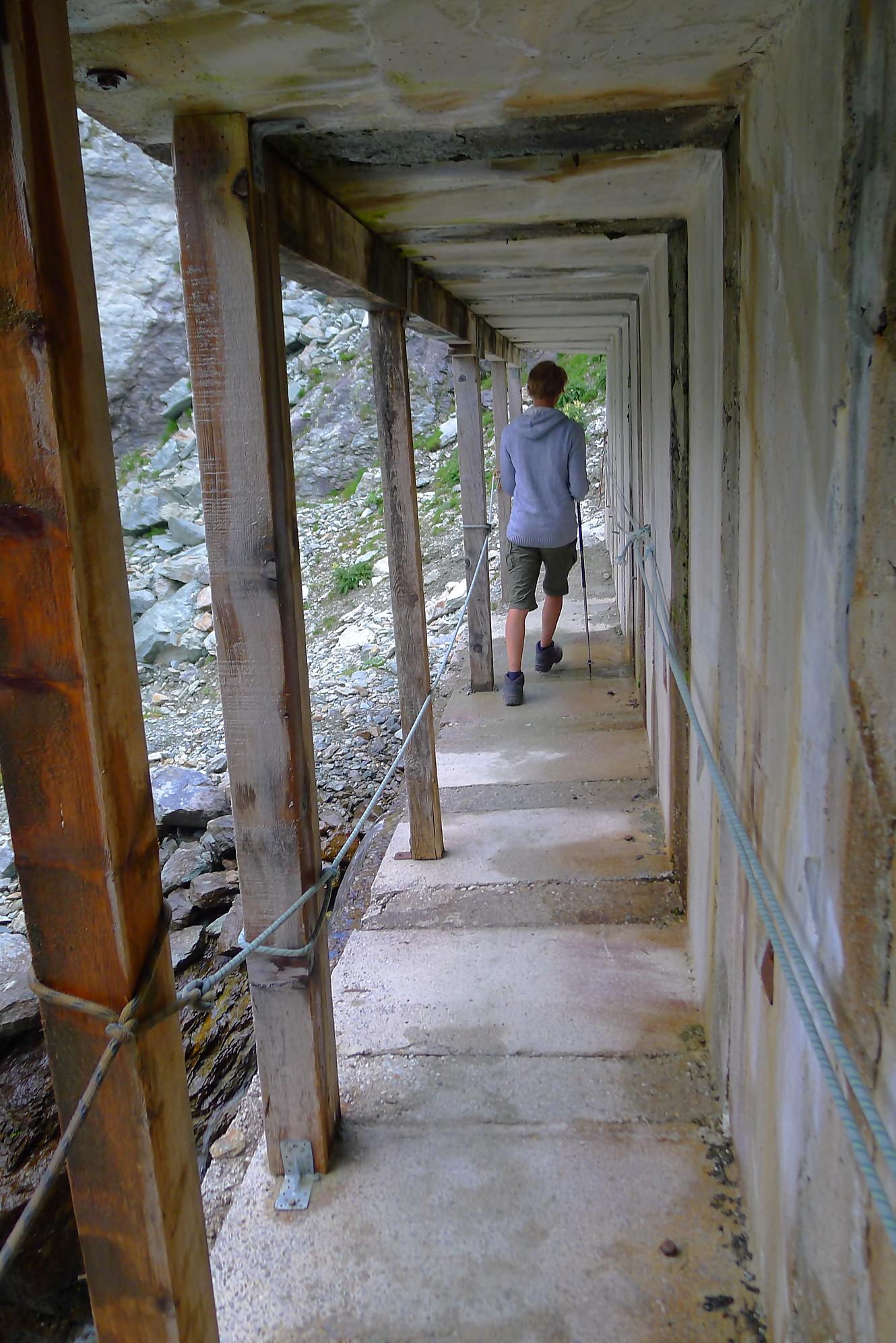 Peu après sur la droite, un panneau indique la direction des Anciennes Mines de Cuivres de La Lé, 15 min. J’avais vu l’indication sur la carte, mais elle n’est pas au programme du jour. Pour une visite, il faut s’inscrire à l’office du tourisme de Zinal. Un dépliant est disponible à la cabane du Petit Mountet. Après le lieu dit Le Vichiesso, une bifurcation propose deux chemins pour la cabane du Petit Mountet, 40 min pour la version courte en forêt, 1h pour une version dans les hauteurs, mais qui fait monter pour redescendre. Sachant que la journée sera longue je prends l’option 40 min.