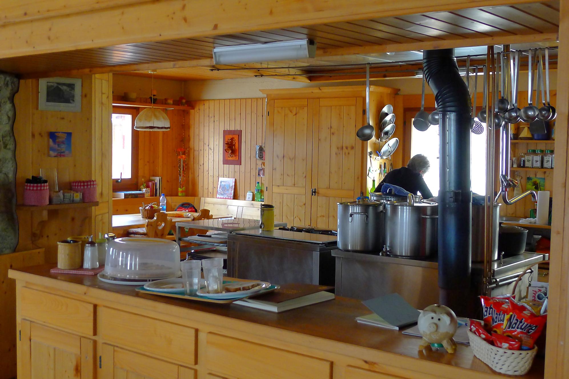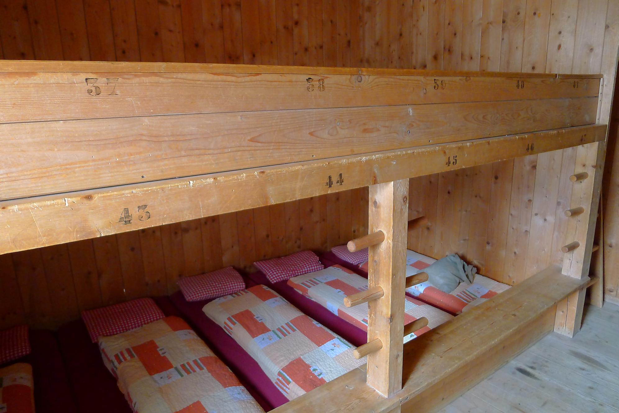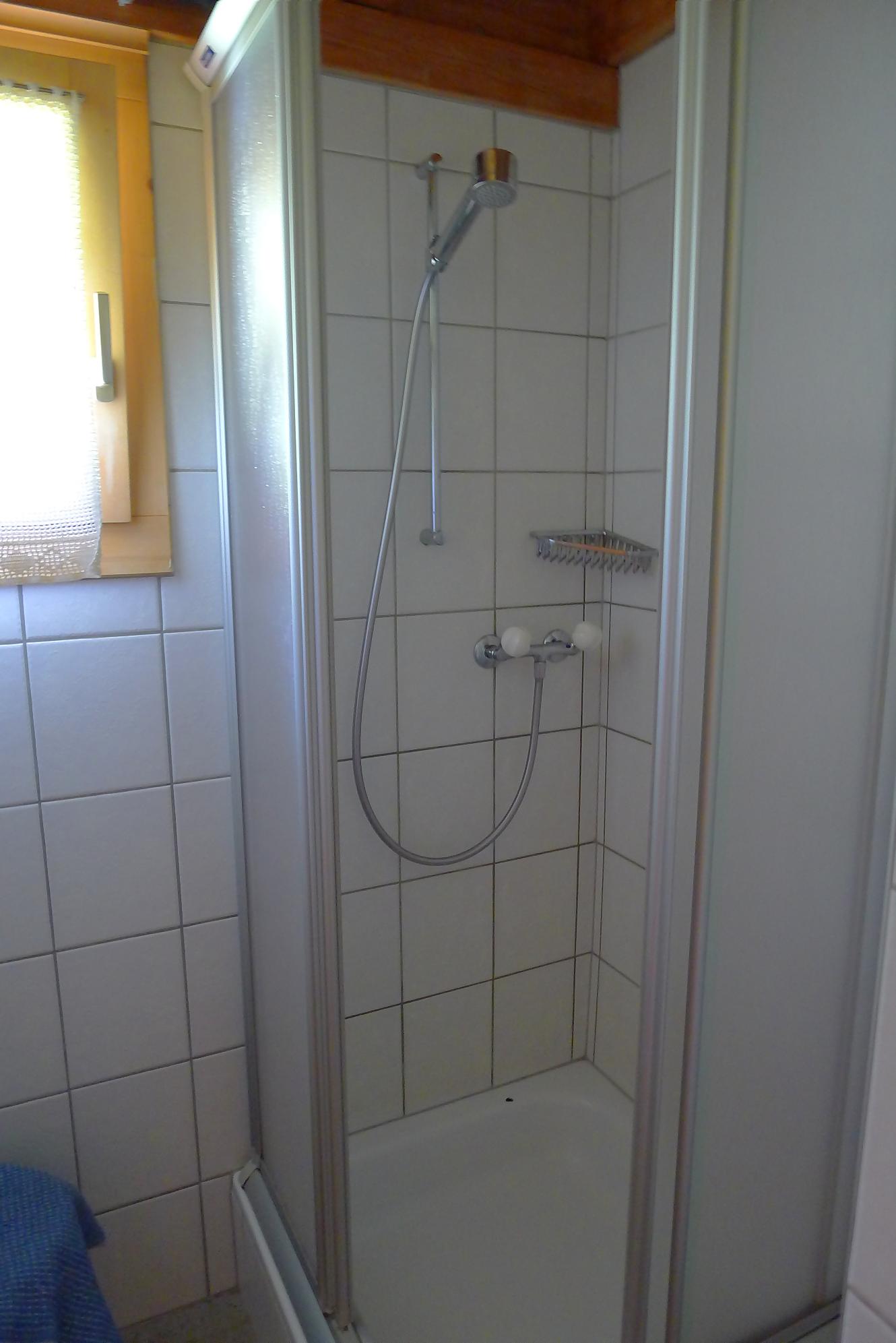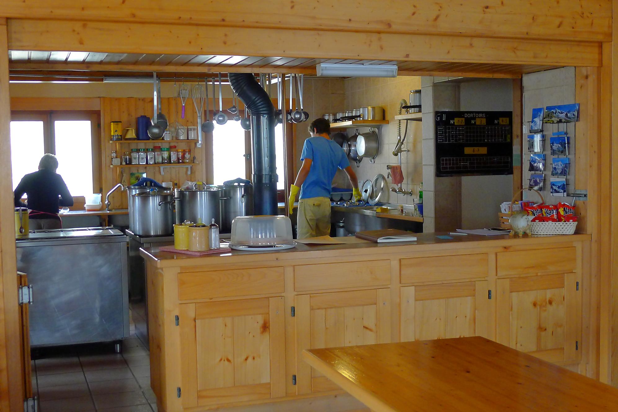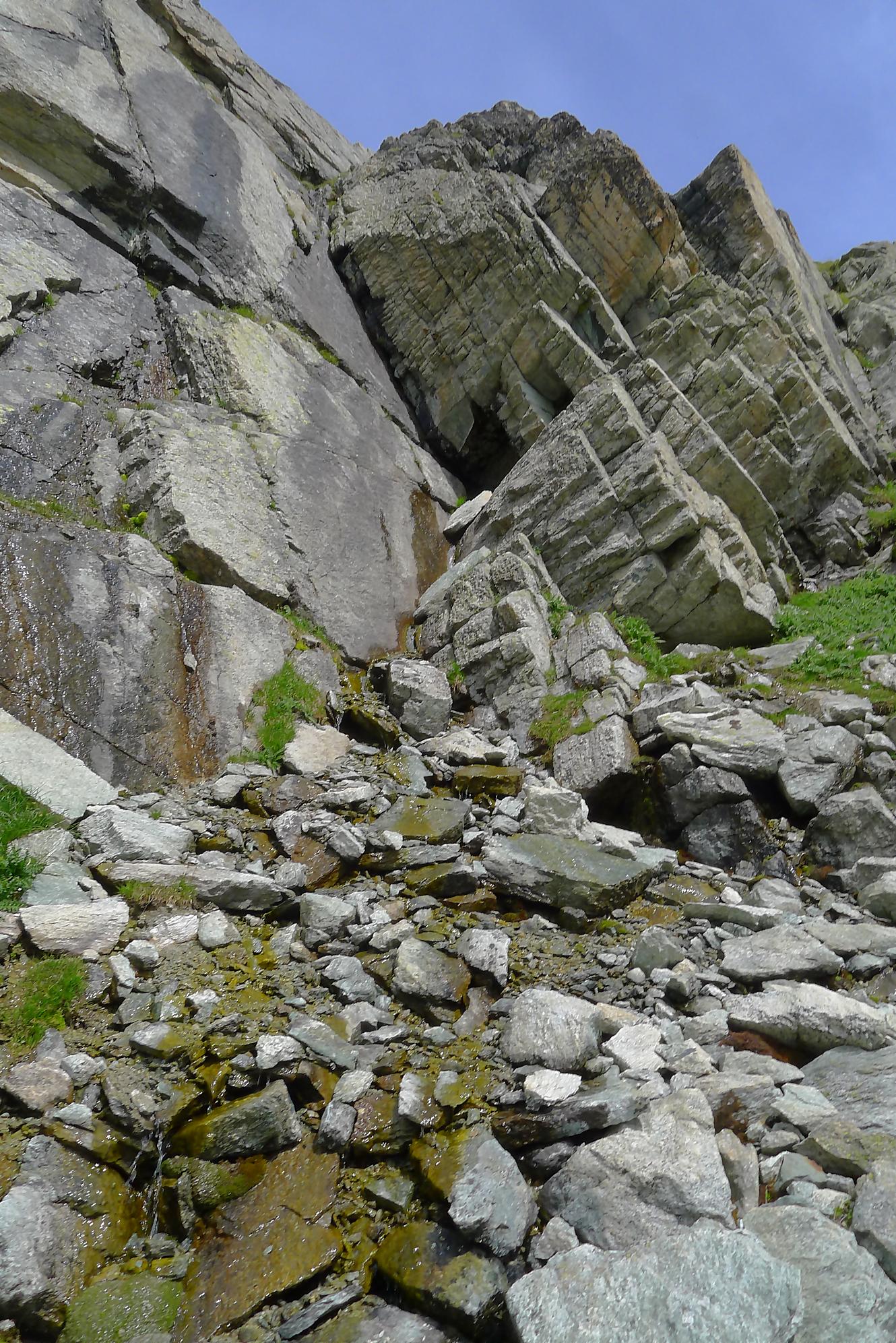 Ce chemin est bien sympathique et en pente régulière. Il y a plusieurs chaines que je ne peux que dédier aux touristes hollandais (mais utiles par temps humides). Vers le milieu du chemin on sort de la forêt et découvrons le massif du Besso. Une partie dans les rochers puis la dernière montée sur le reste d’une moraine, section courte, mais pentue. J’y dépasse plusieurs personnes qui ne semblaient pas apprécier à sa juste mesure l’effort. J’arrive à la cabane du Petit Mountet (2142m), à 11h20. En partant une autre personne exprimait sa grande lassitude. Cette cabane est donc pour touristes ! Je fais une petite pause et en profite pour visiter cette cabane qui a une douche !