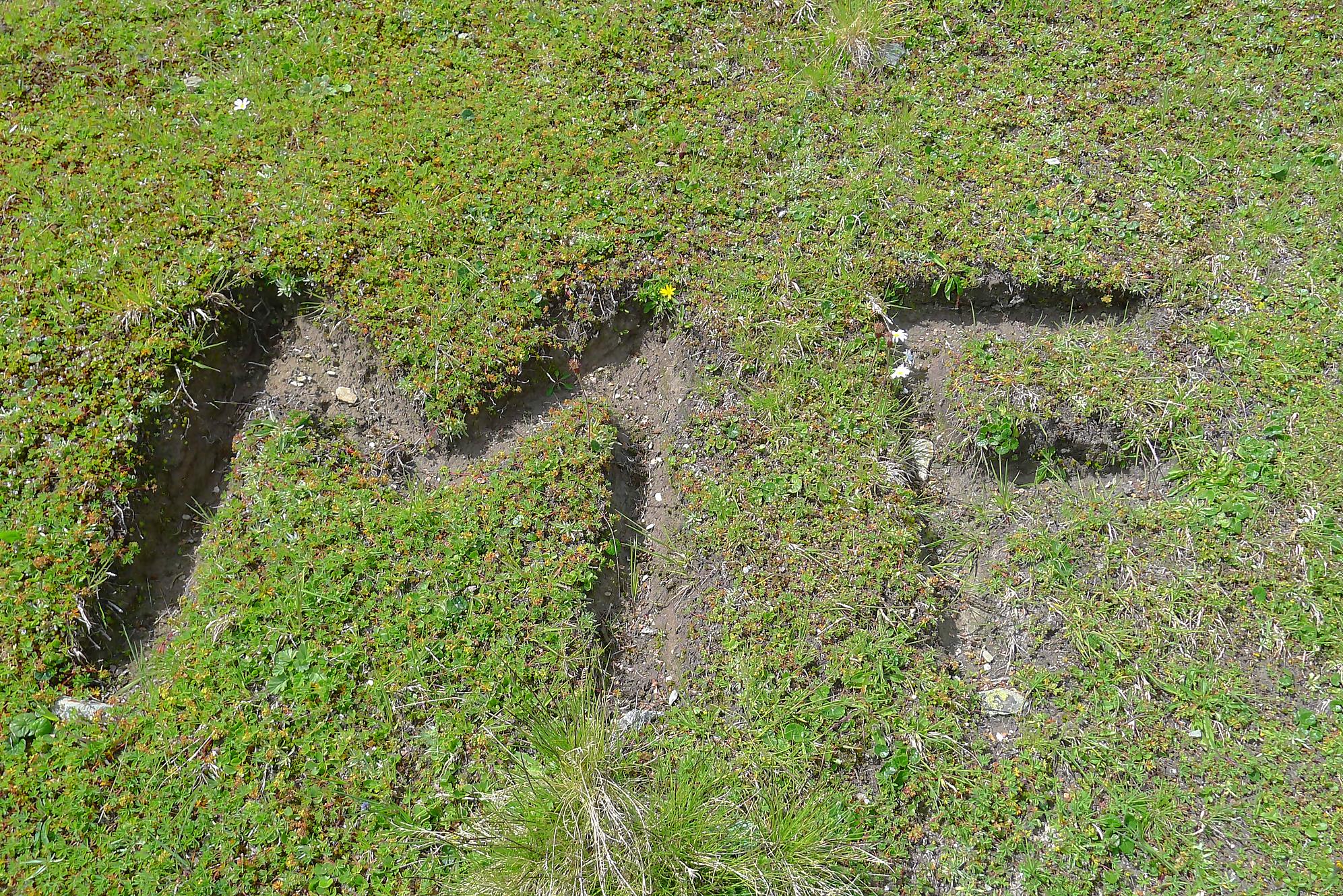 On finit par arriver au Plan des Lettres, à côté du Pt2561, un endroit magnifique. C’est un plateau avec un étang et ses nombreuses fleurs linaigrettes. Je me suis mis en pédale douce, pour profiter de ce lieu. A la fin de ce plateau, il y a bien des lettres (vu le nom, c’est presque normal !) gravées dans la terre herbeuse. Sûrement encore une action des martiens ou des illuminatis !